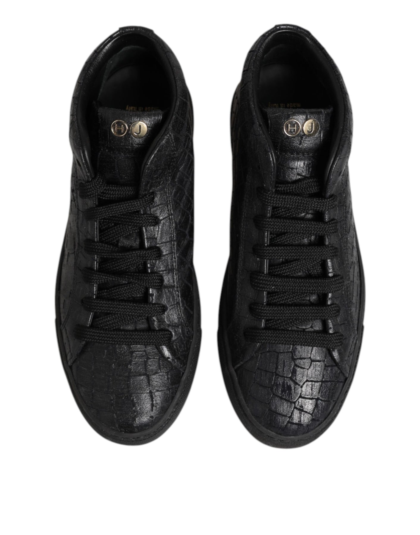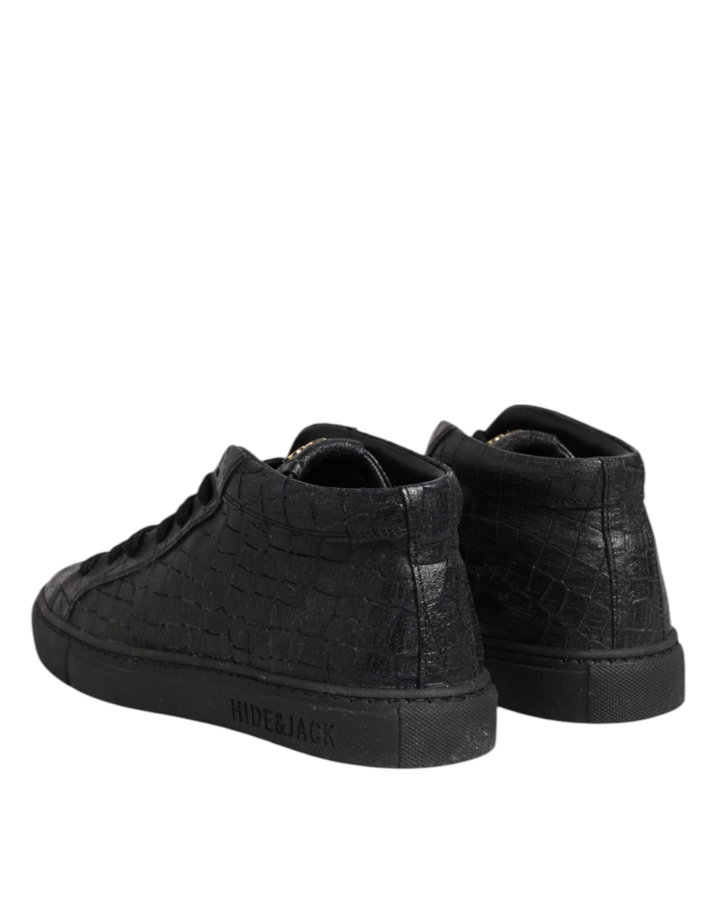 HIDE & JACK Black Leather Lace Up Mid Top Sneakers Shoes