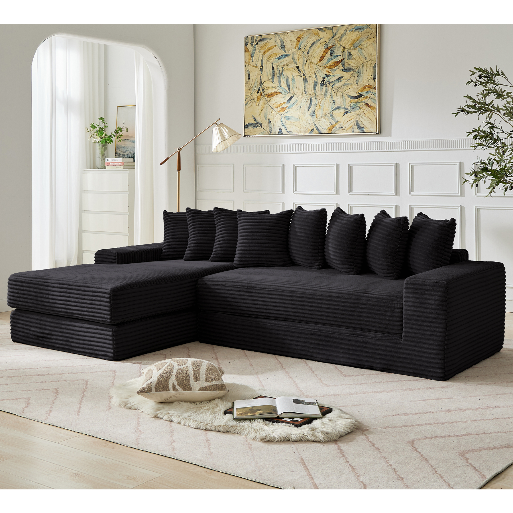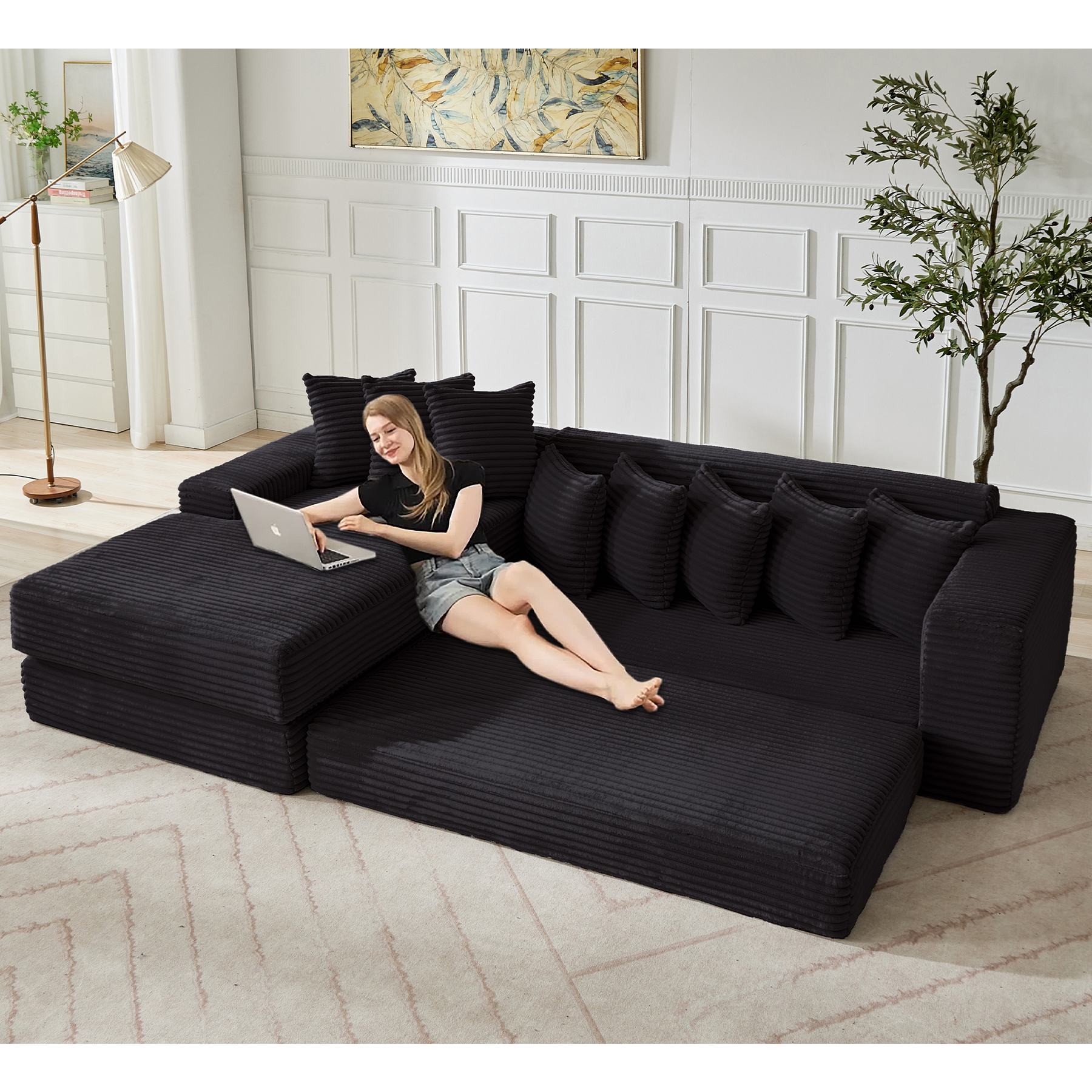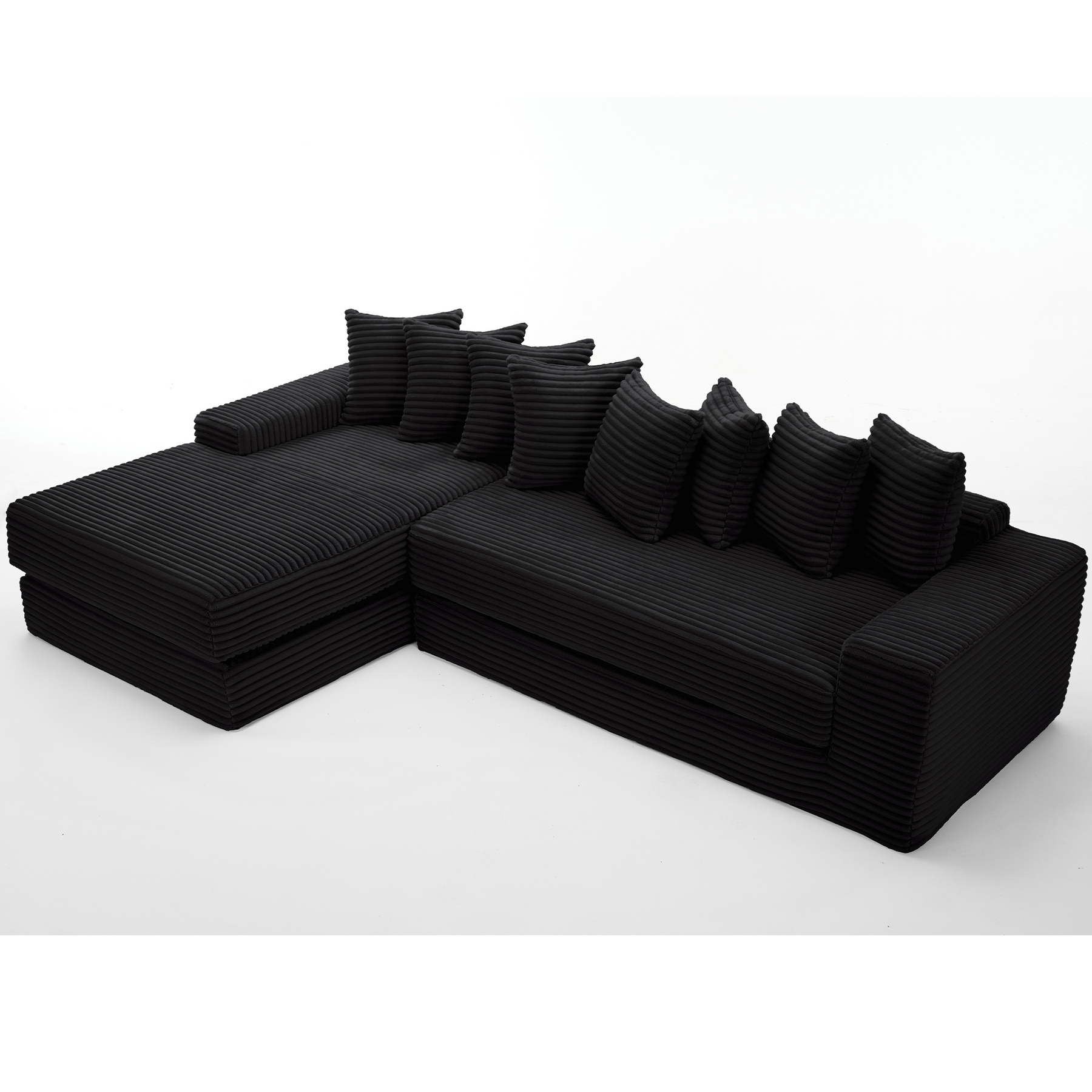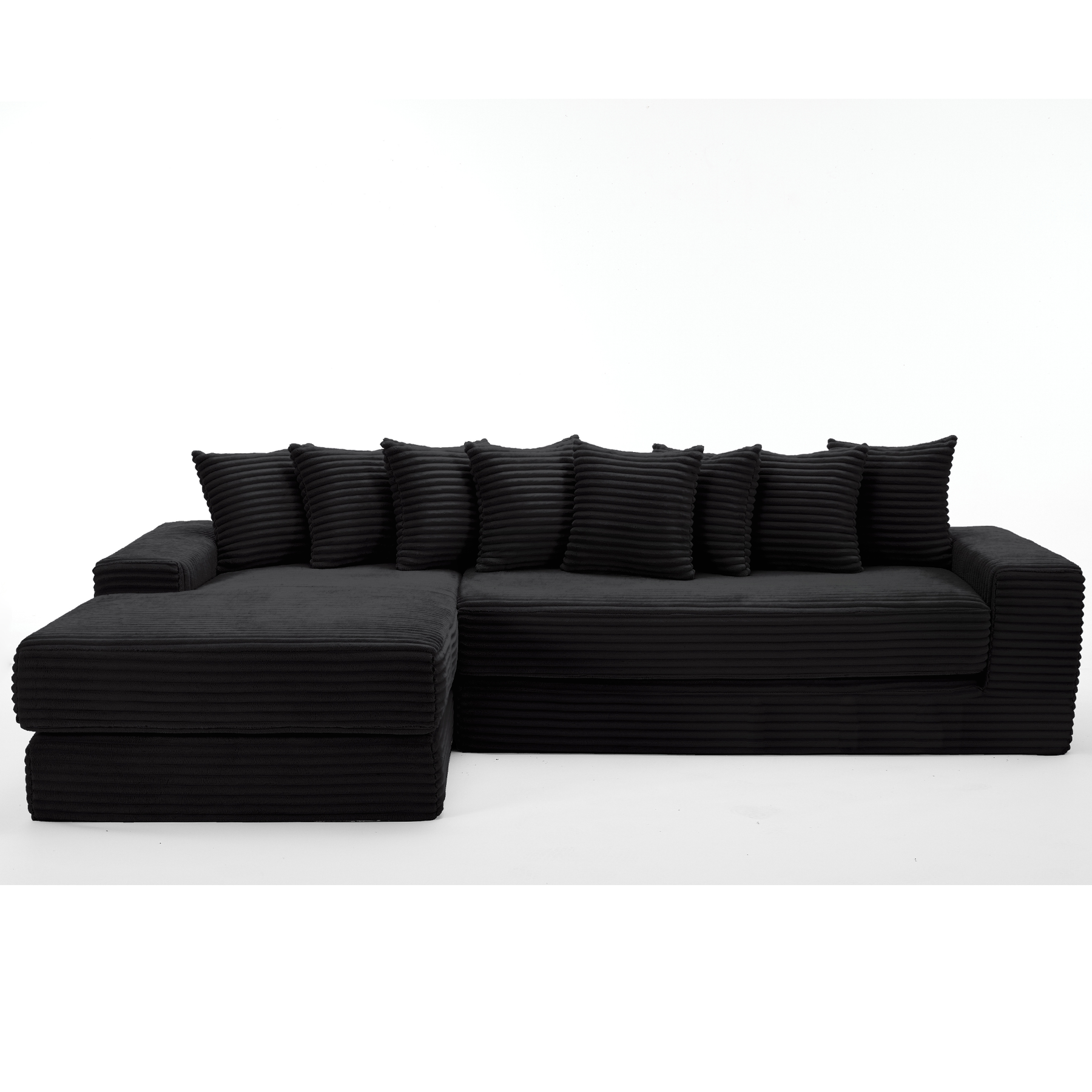 [NEW ARRIVED] [VIDEO PROVIDED] Oversize Cloud Sectional Couch, L-Shape Sofa, Convertible Floor Sleeper Sofa Bed, No Assembly ,Eight pillows,3-in-1,Side Pocket,(Left Facing Sofa),3 Seat,Corduroy,Black