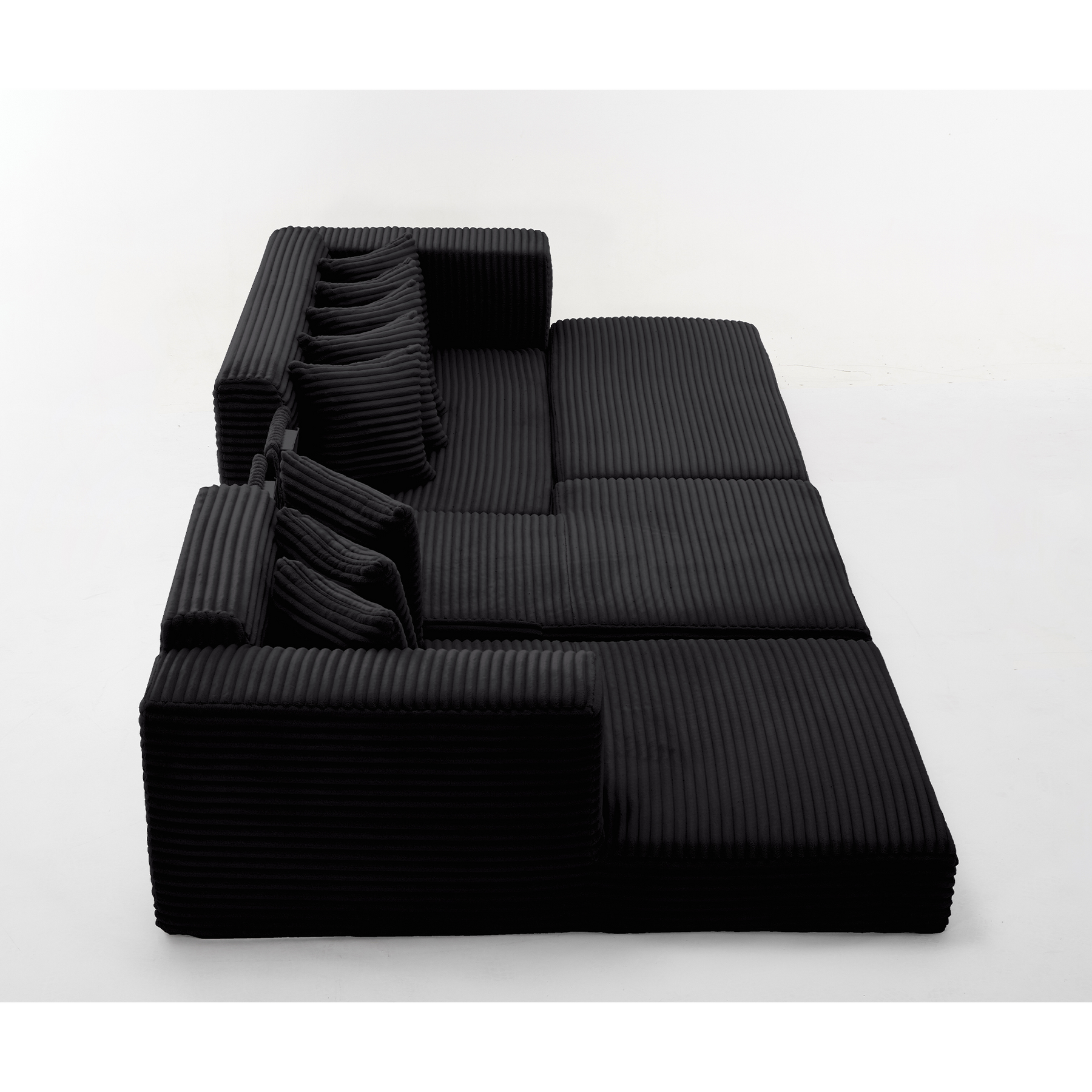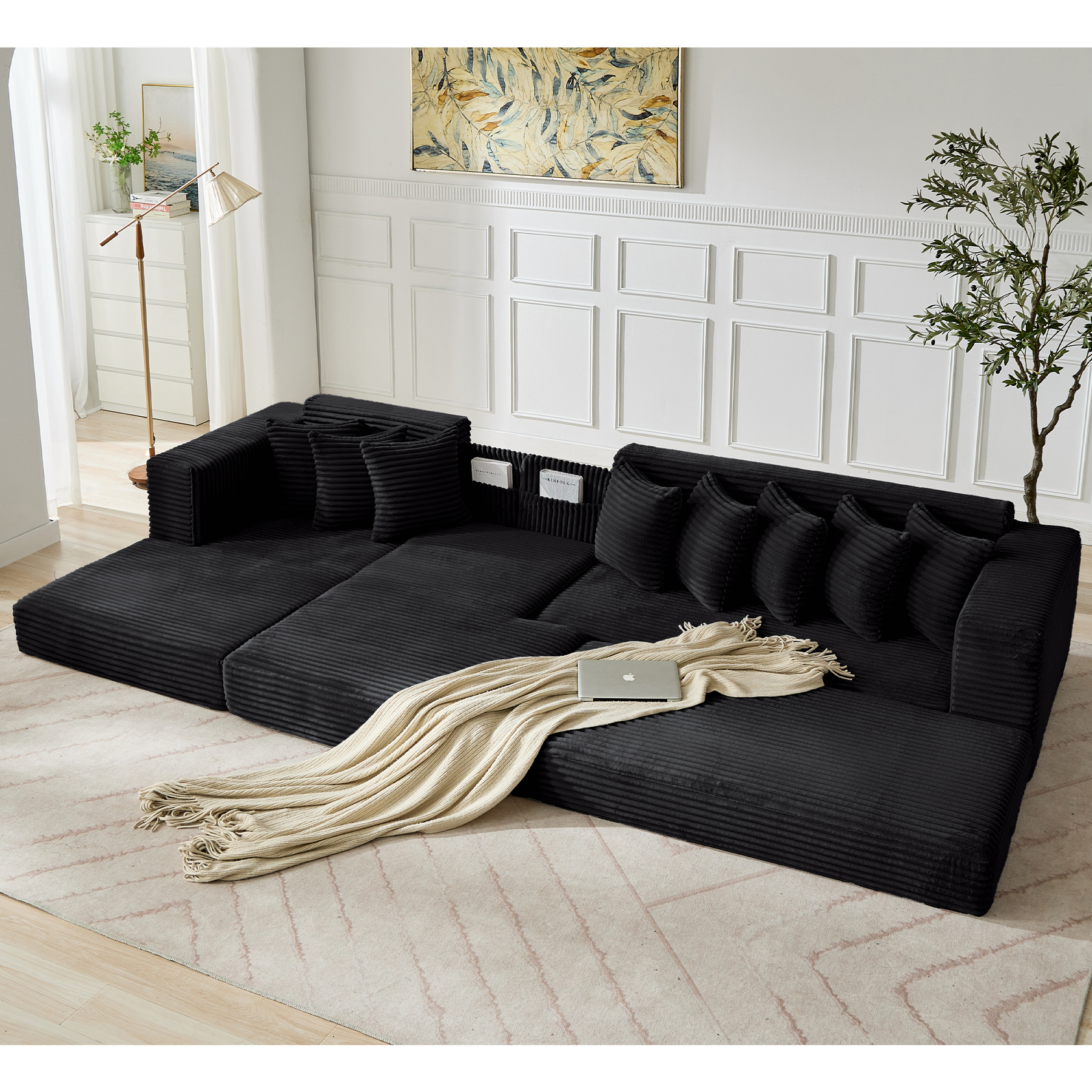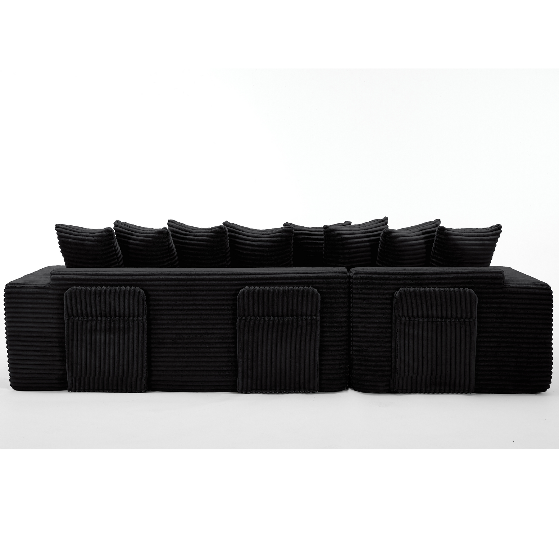 [NEW ARRIVED] [VIDEO PROVIDED] Oversize Cloud Sectional Couch, L-Shape Sofa, Convertible Floor Sleeper Sofa Bed, No Assembly ,Eight pillows,3-in-1,Side Pocket,(Left Facing Sofa),3 Seat,Corduroy,Black