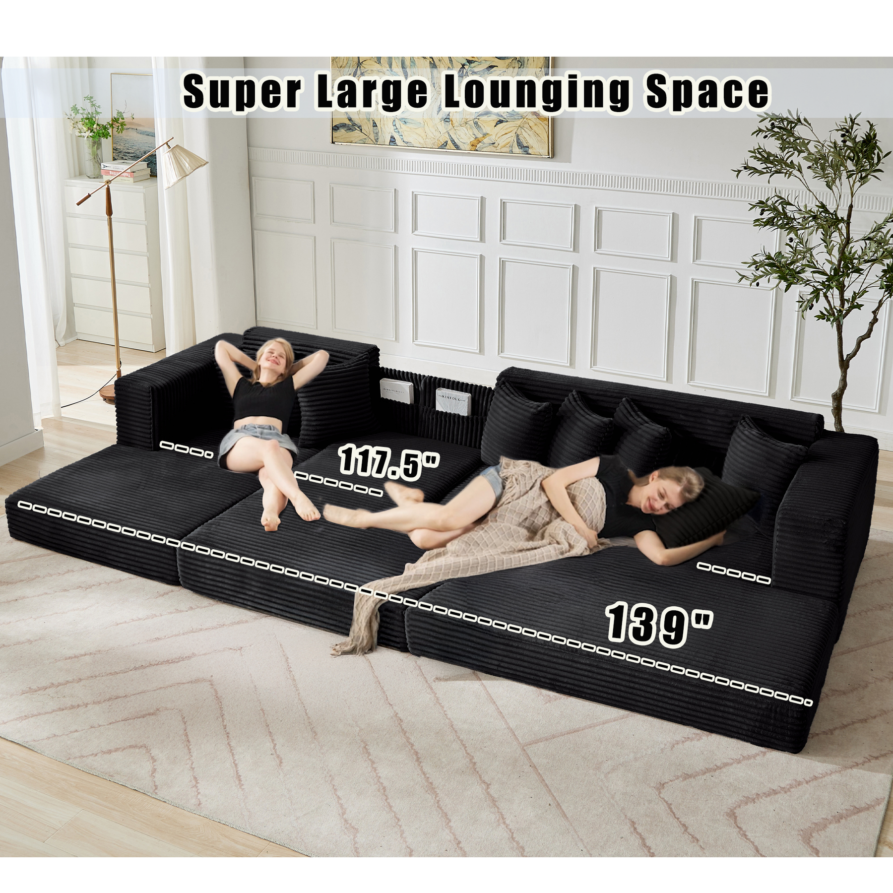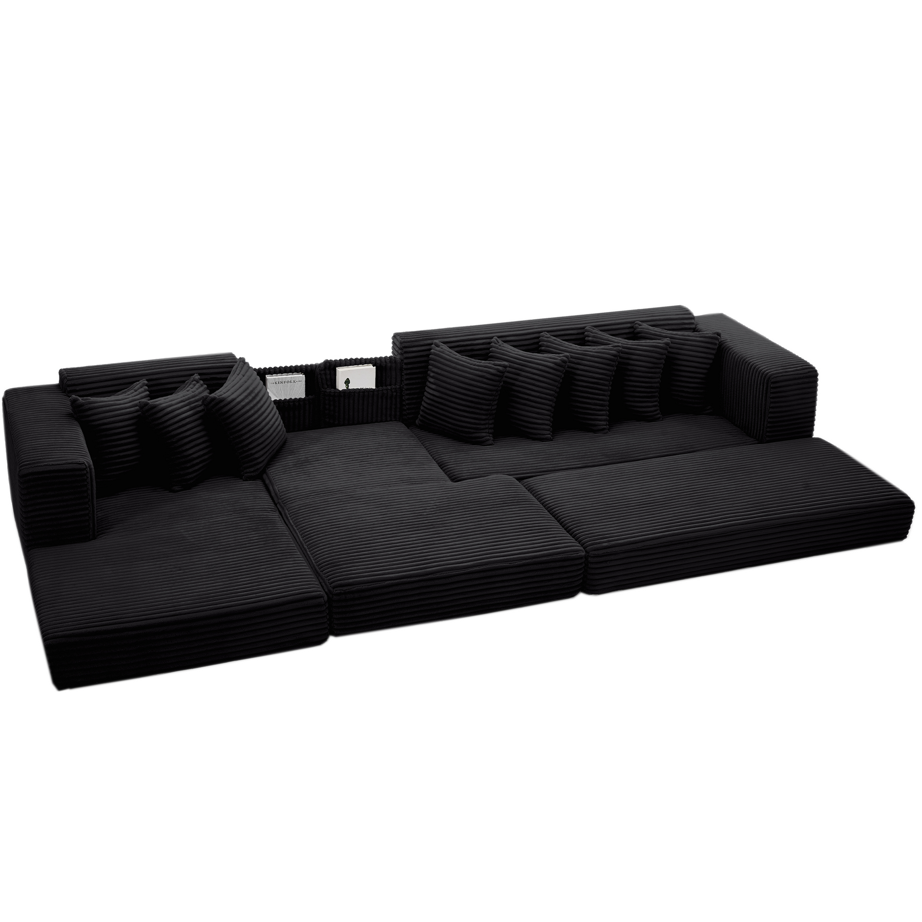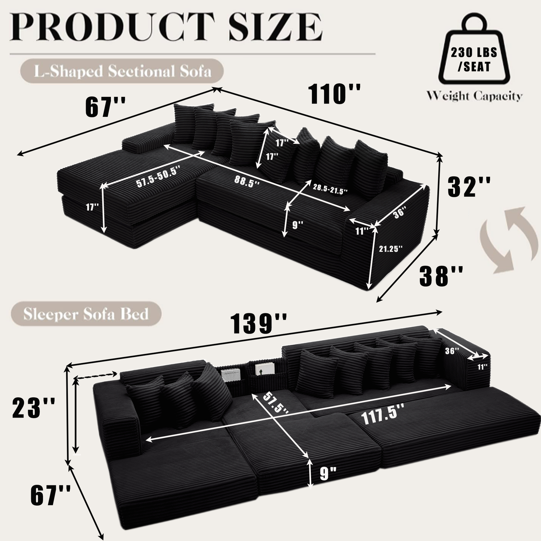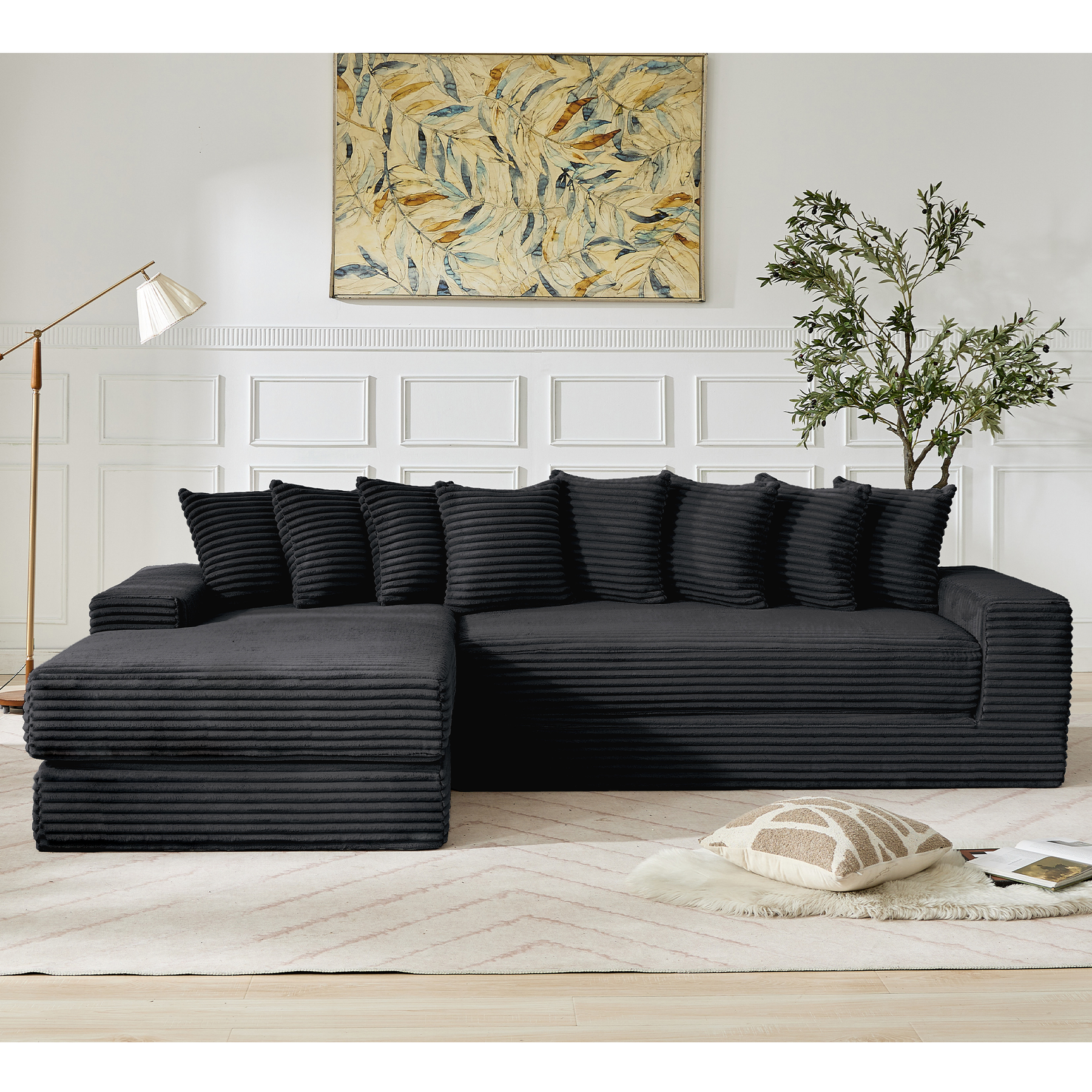 [NEW ARRIVED] [VIDEO PROVIDED] Oversize Cloud Sectional Couch, L-Shape Sofa, Convertible Floor Sleeper Sofa Bed, No Assembly ,Eight pillows,3-in-1,Side Pocket,(Left Facing Sofa),3 Seat,Corduroy,Black