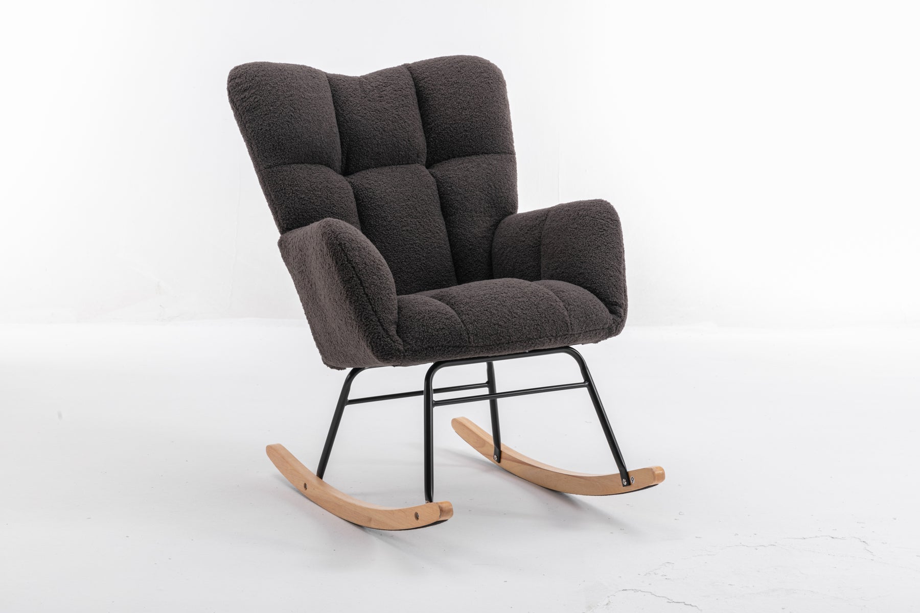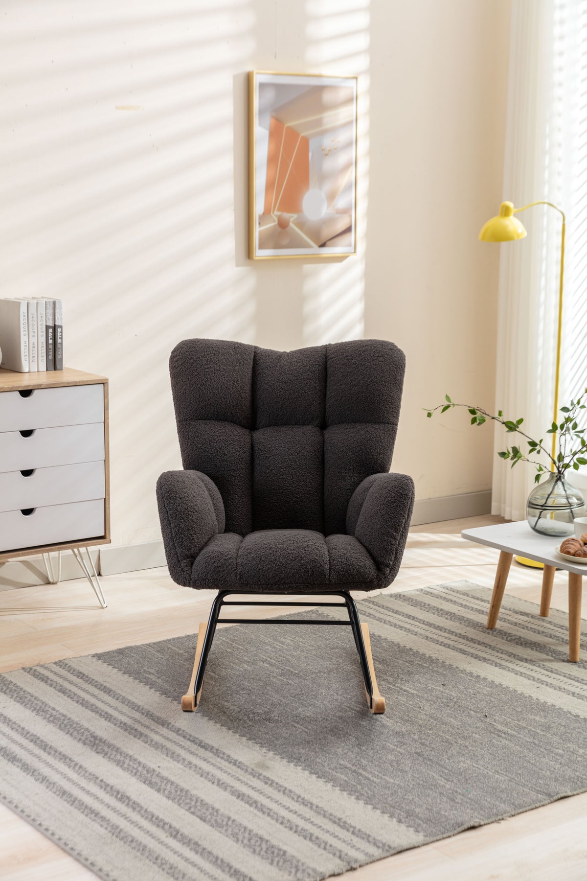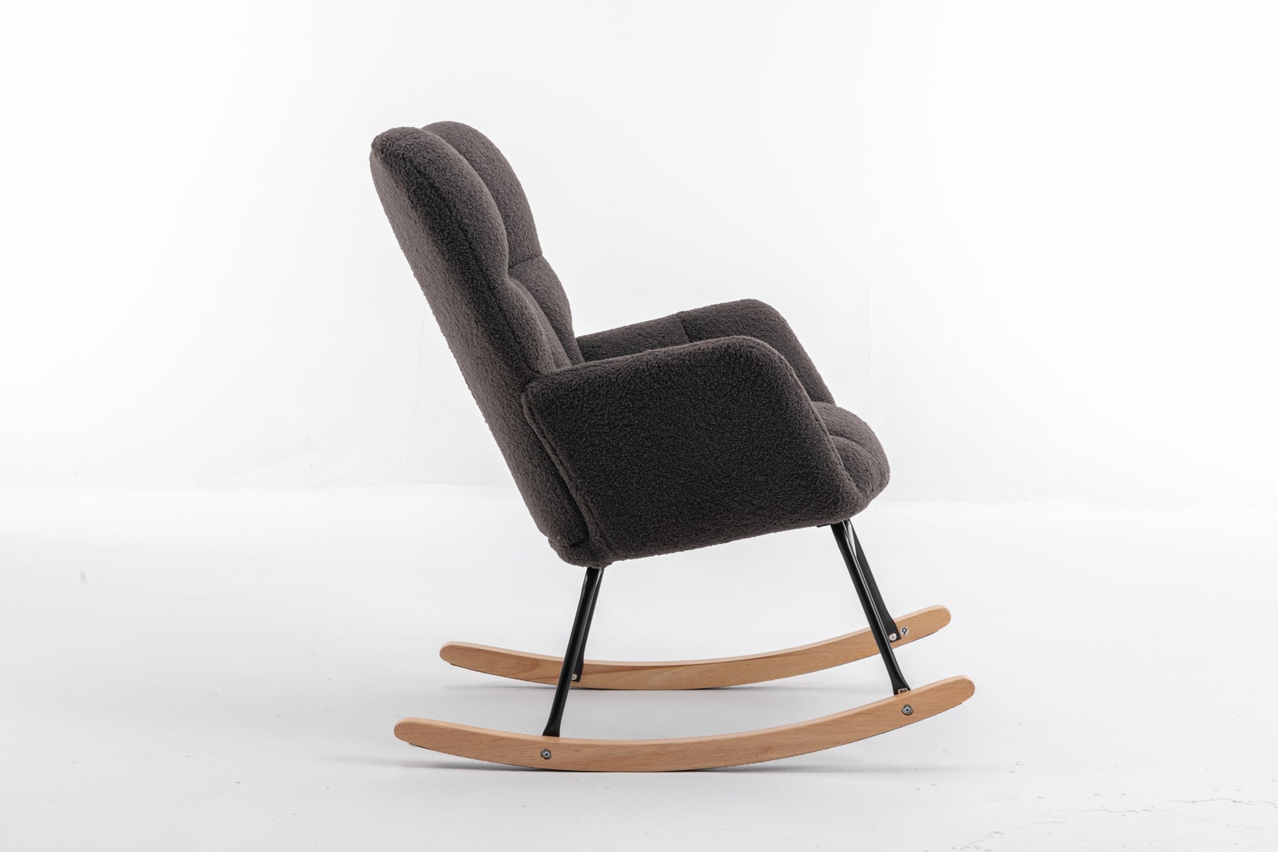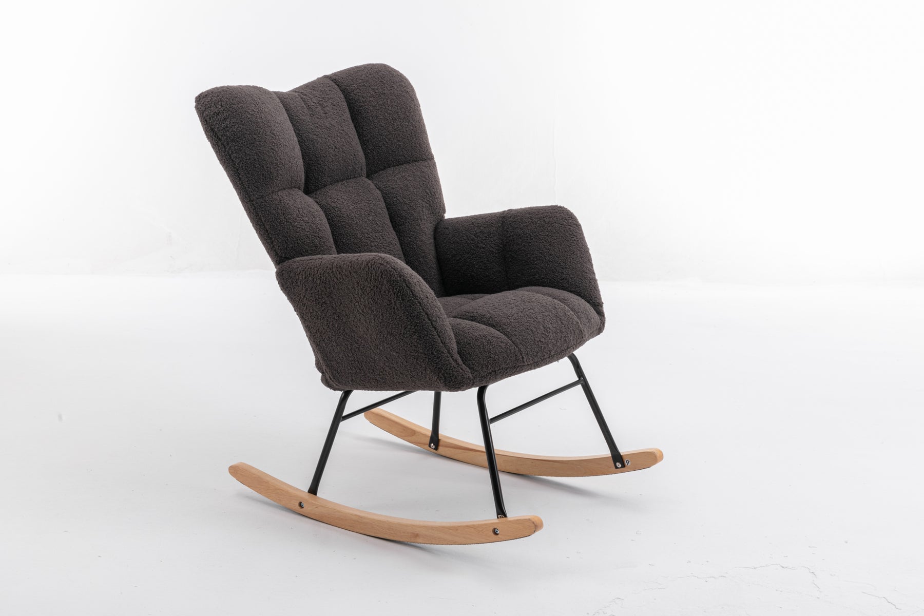050-Teddy Fabric Rocking Gilder Nursery Chair For Living Room Indoor,Dark Gray