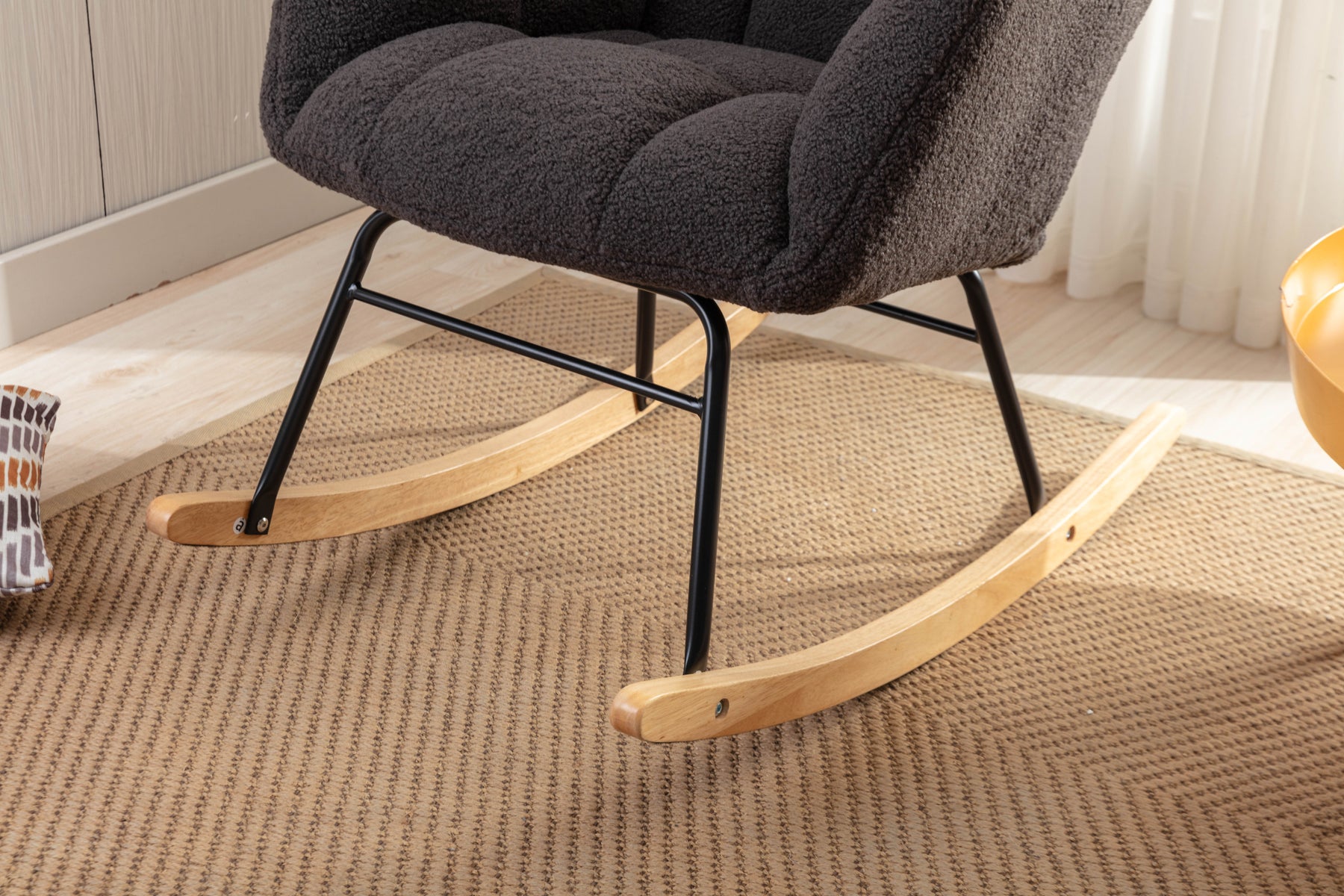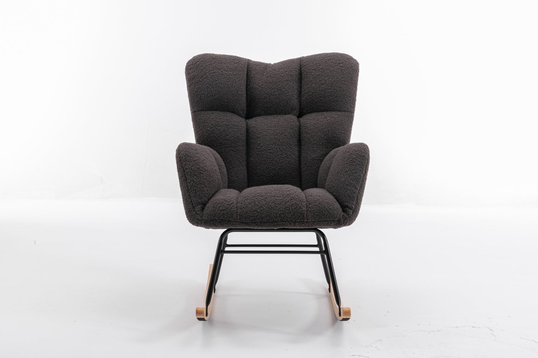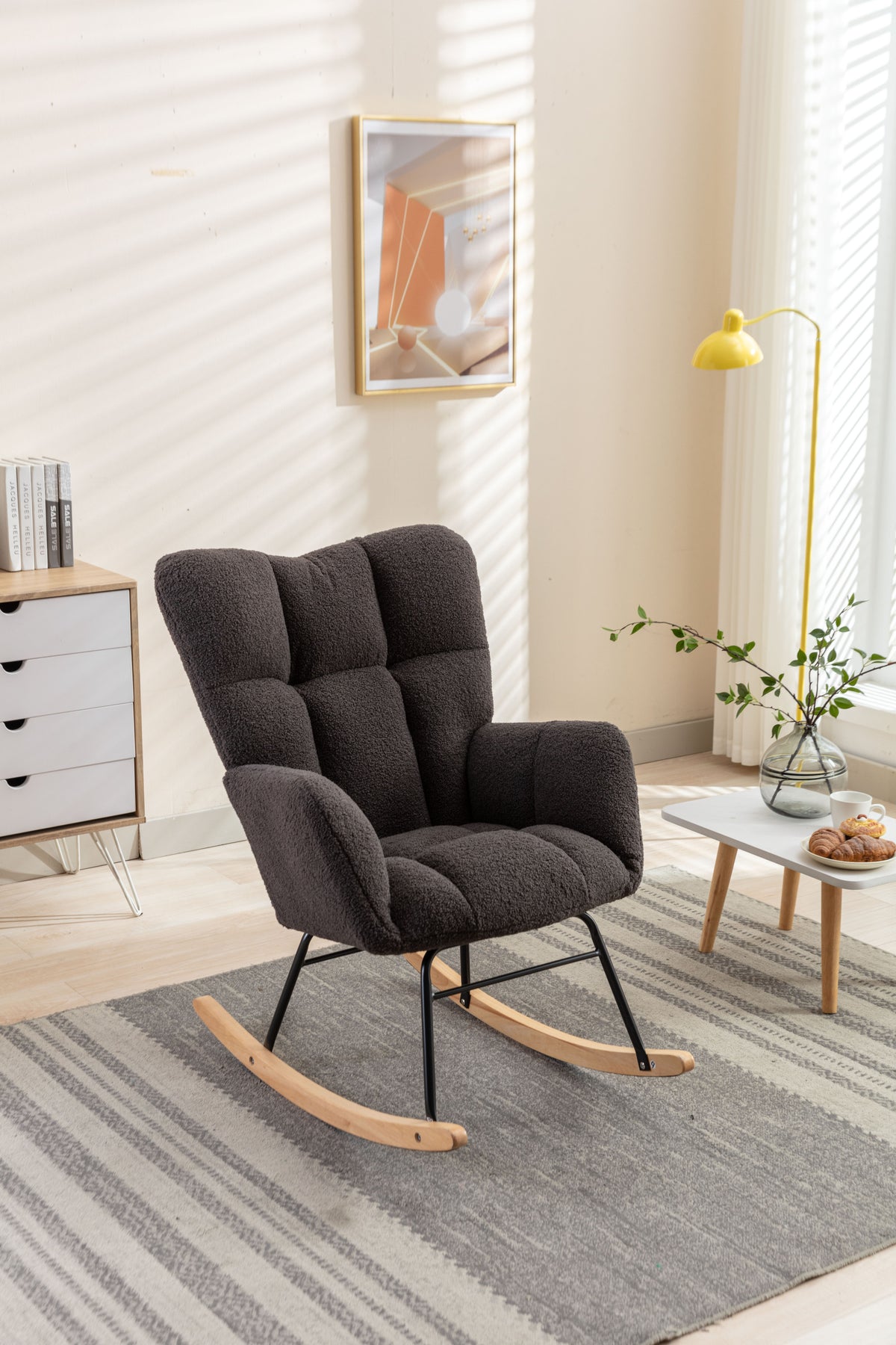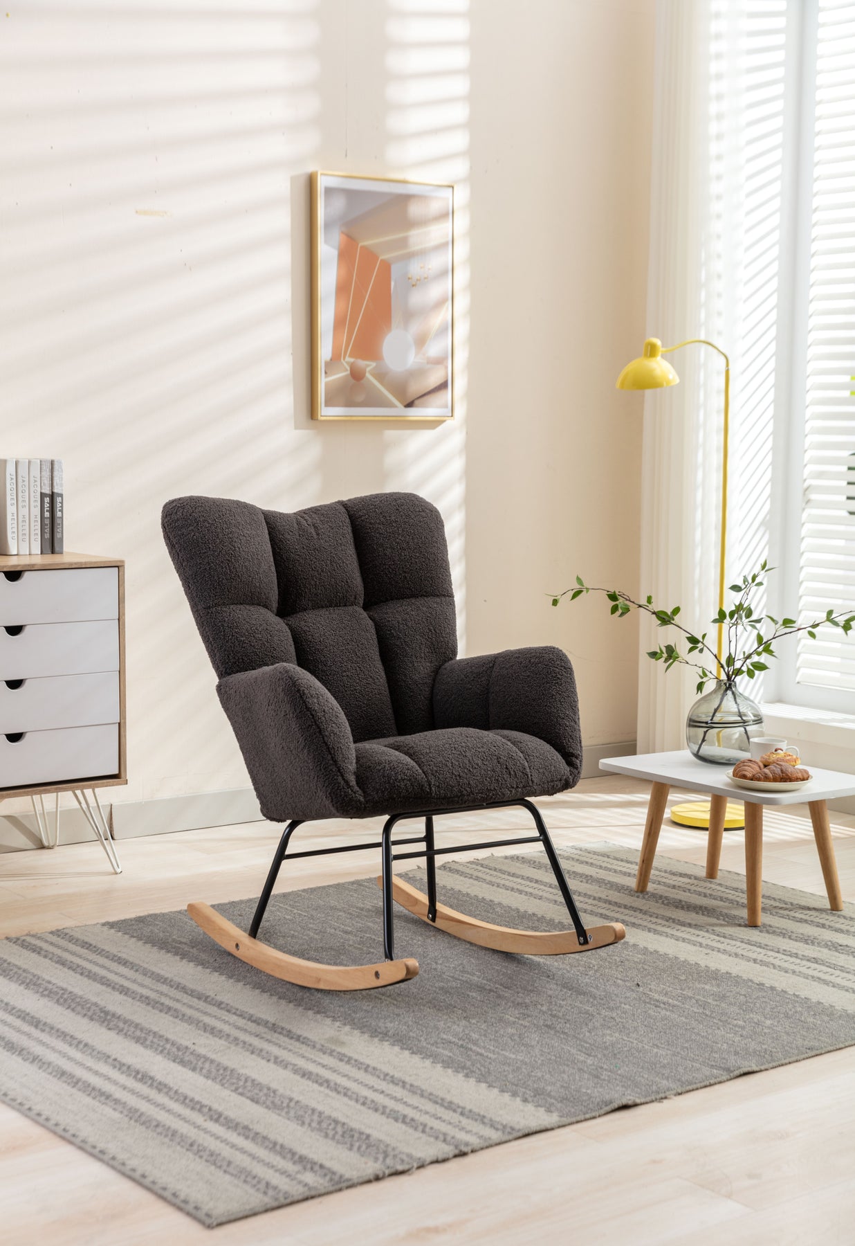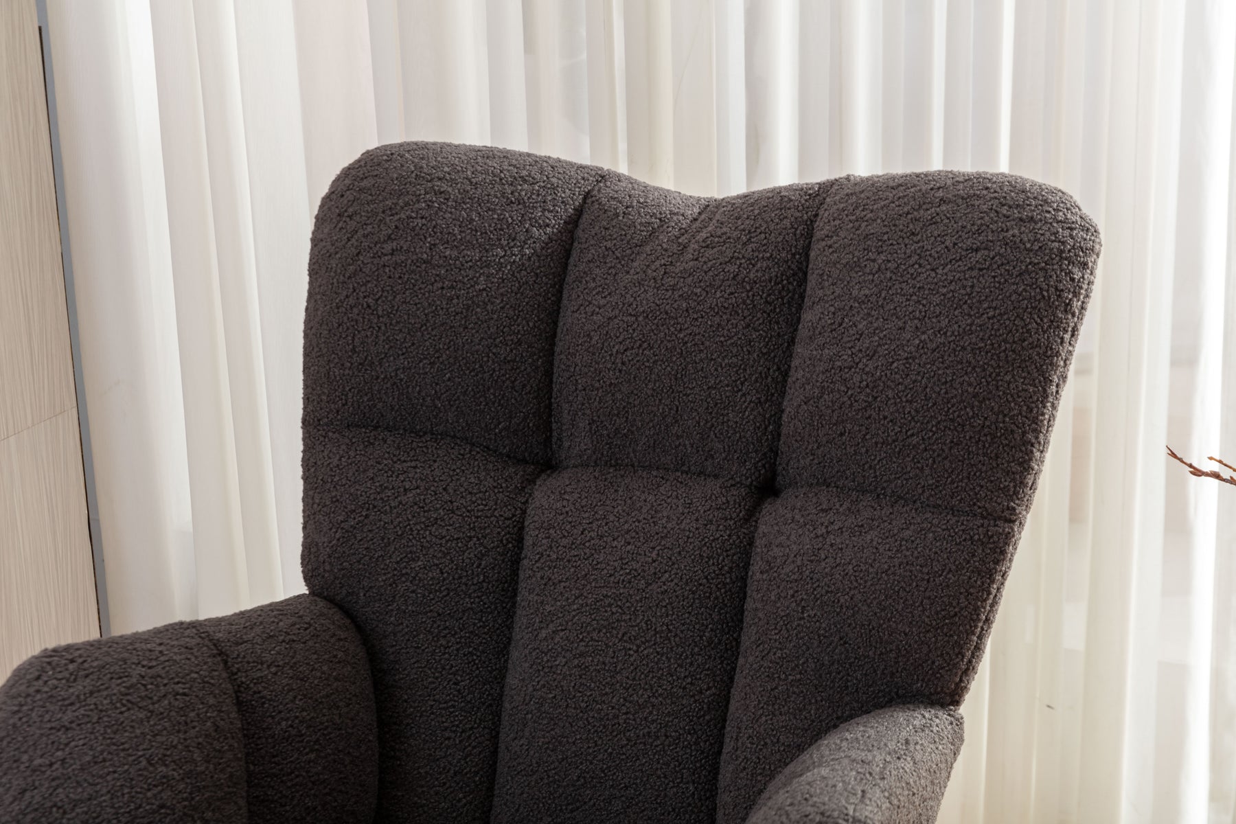 050-Teddy Fabric Rocking Gilder Nursery Chair For Living Room Indoor,Dark Gray