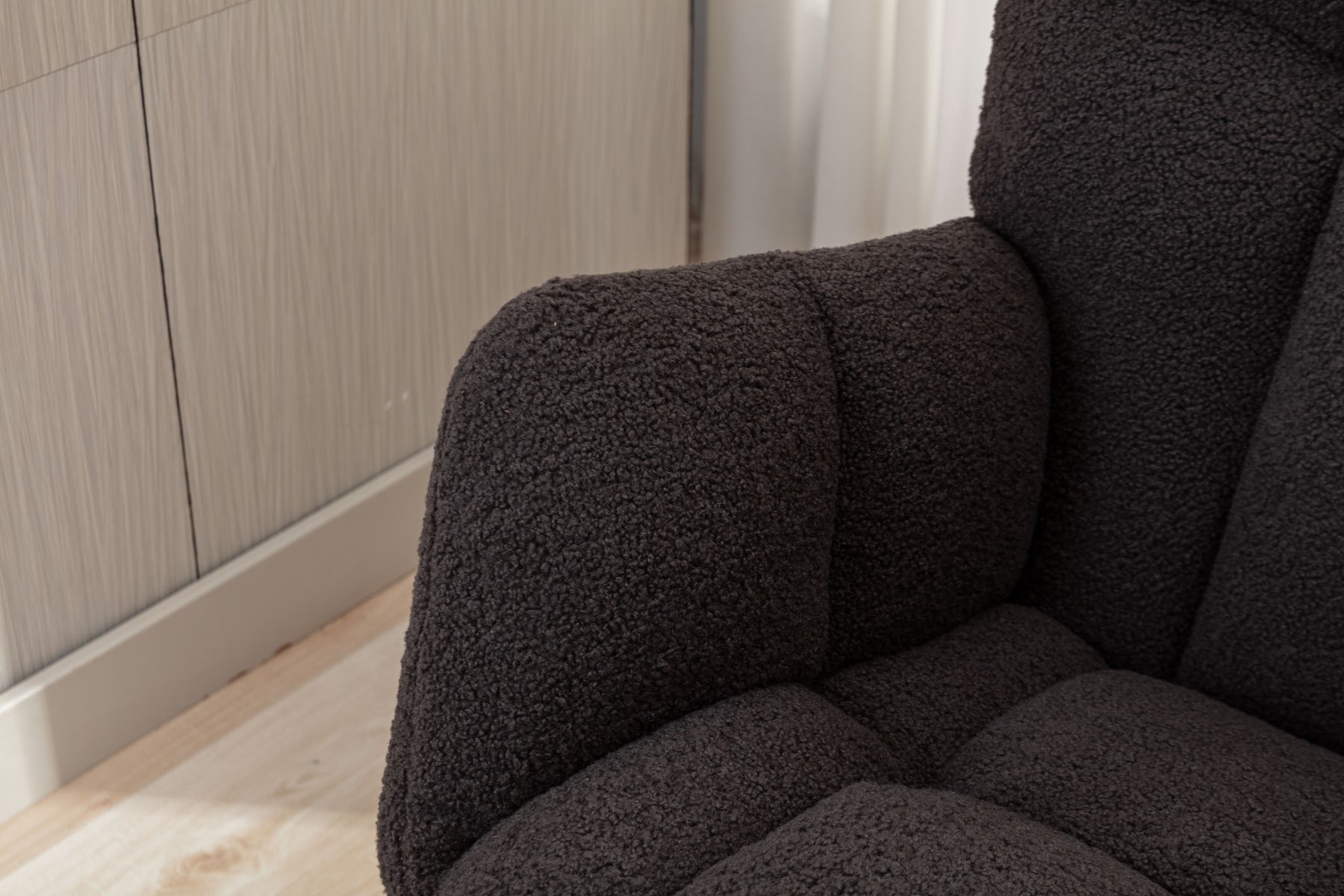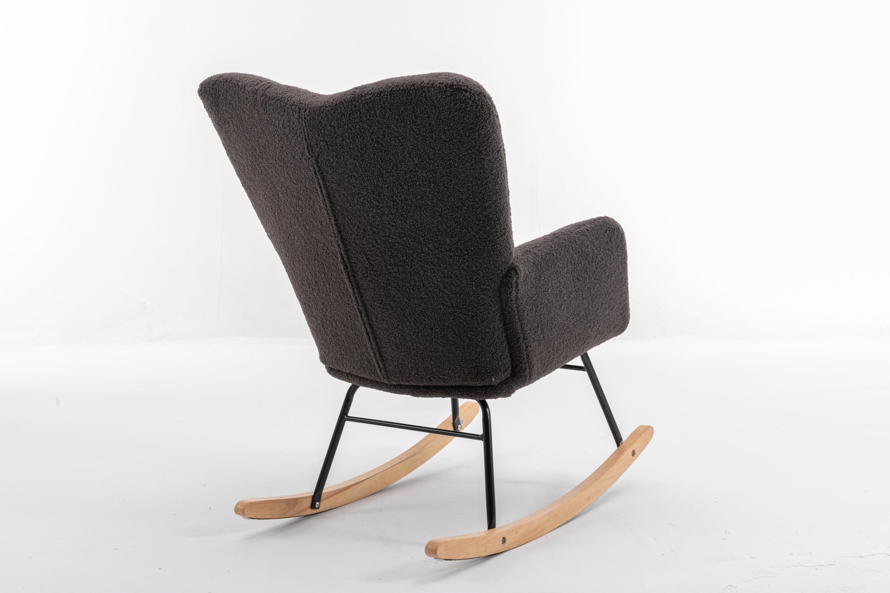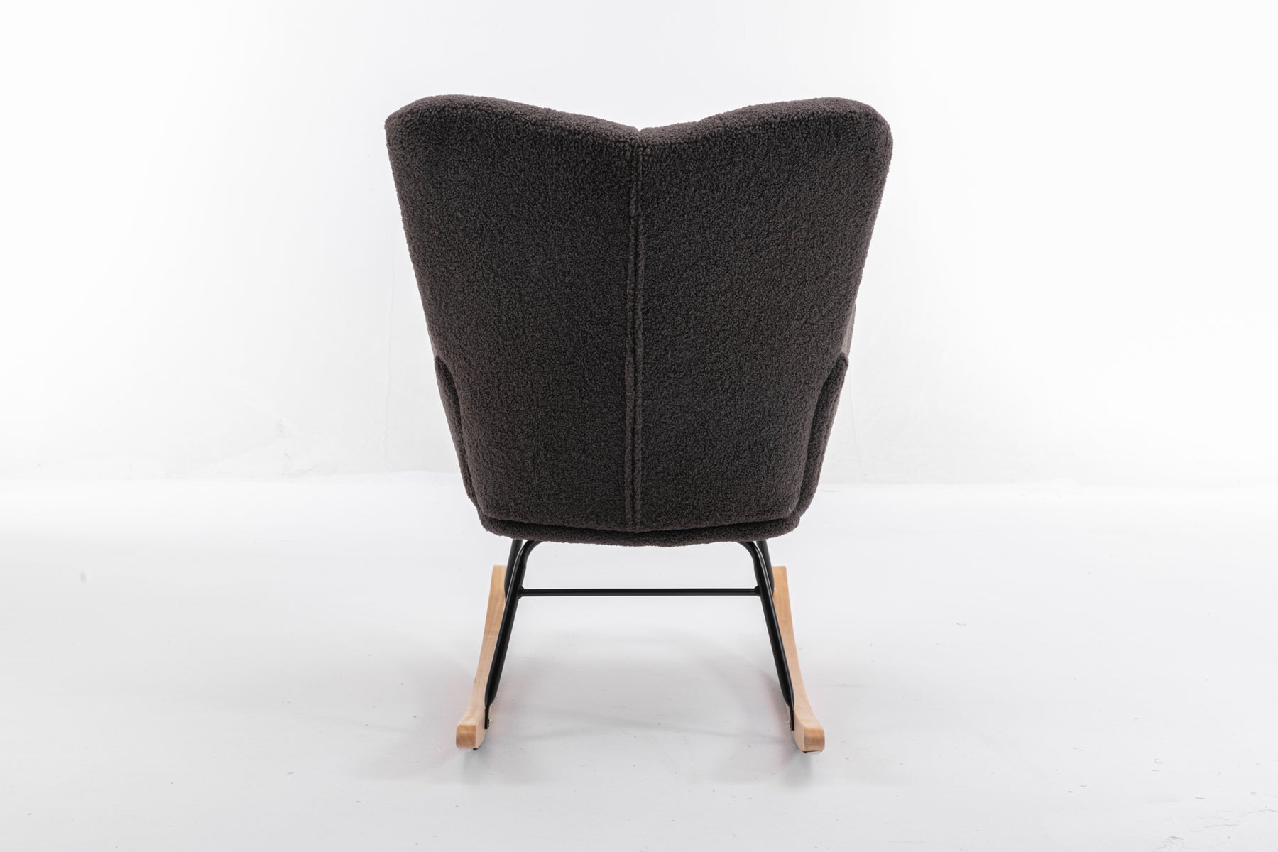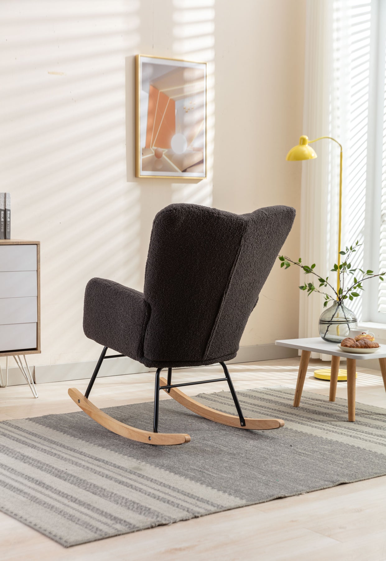 050-Teddy Fabric Rocking Gilder Nursery Chair For Living Room Indoor,Dark Gray
