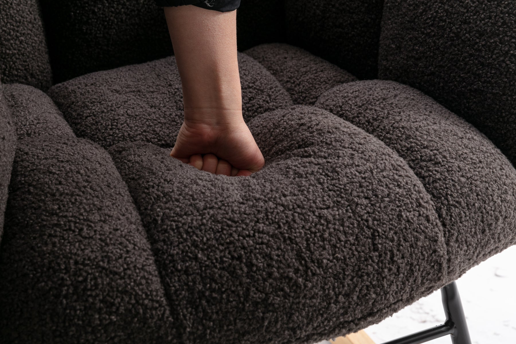 • Product BOM:Soft Teddy Material+Foam Filling+Wooden Frame+Black Paint Metal Base+Wooden Rocking Legs+Upholstered+Floor Protection And Isolation Layer;
