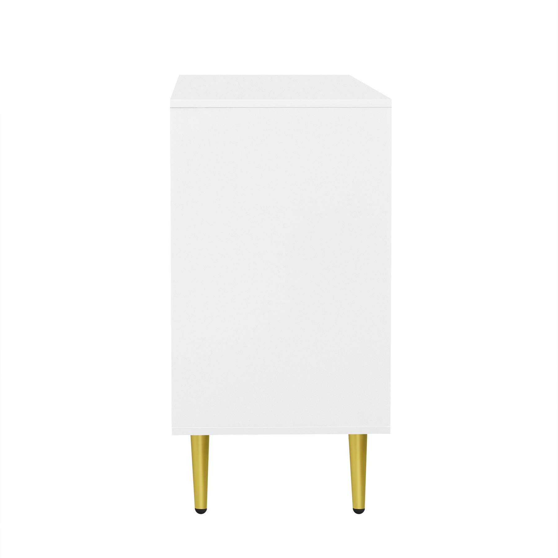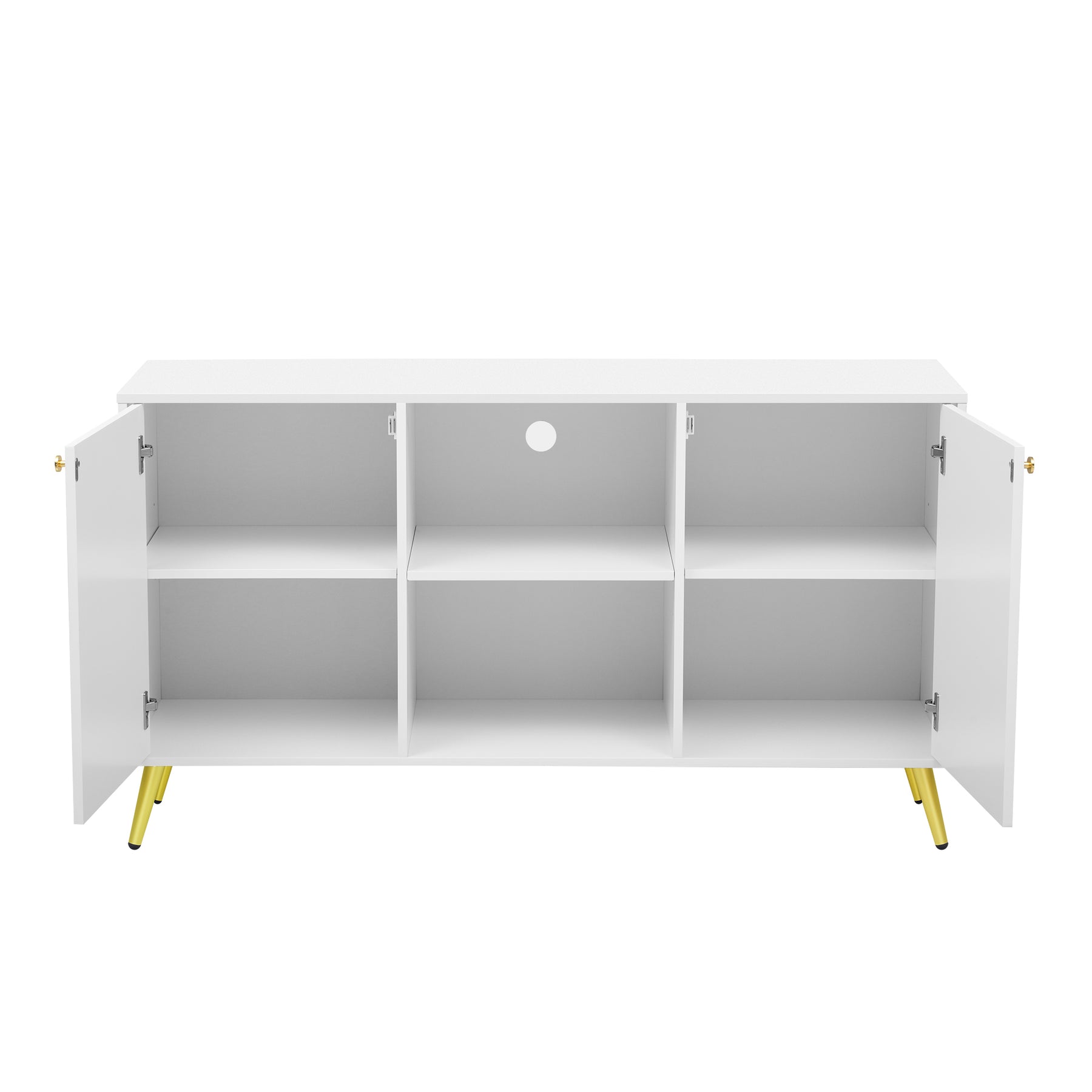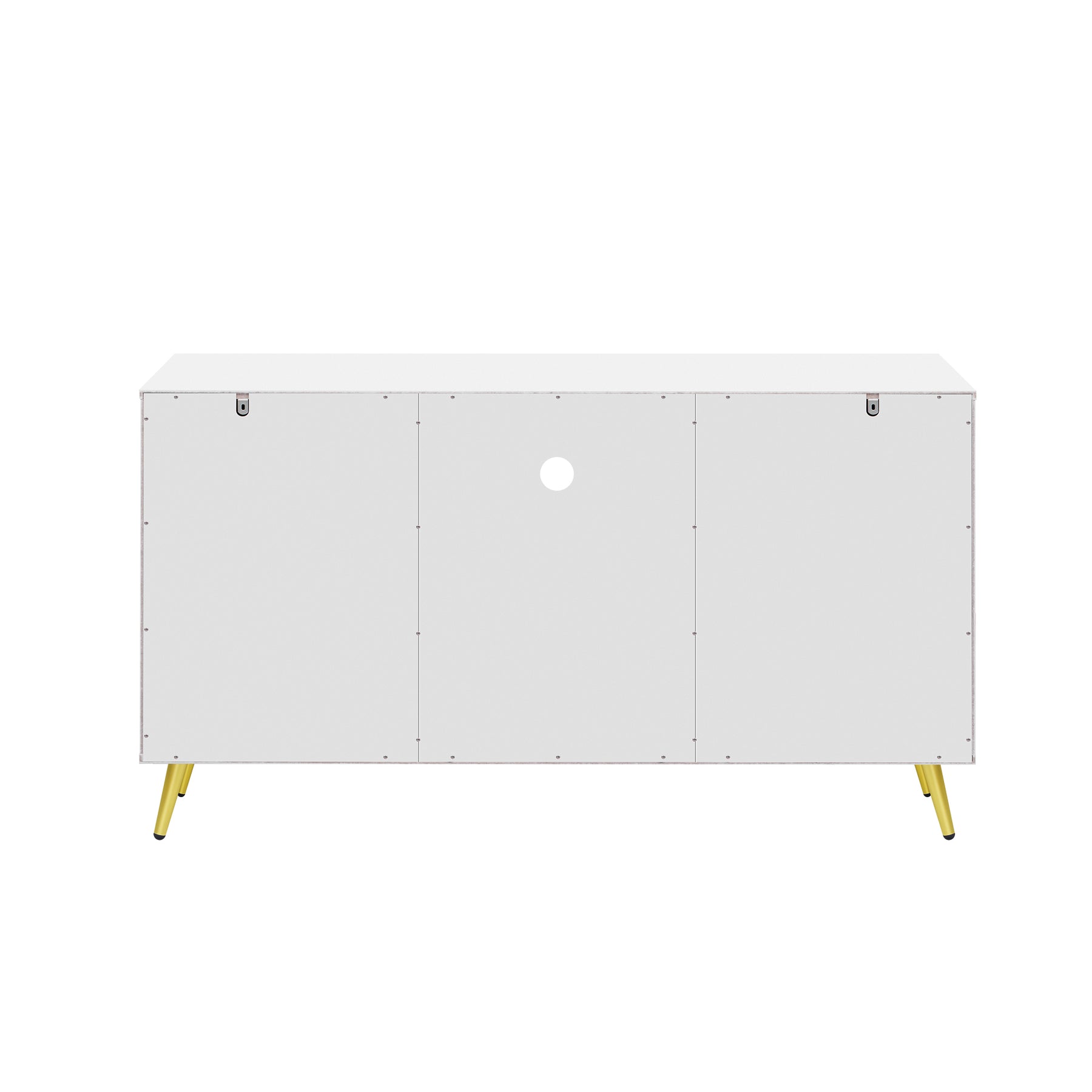 • Crafted from sturdy and durable golden metal, the legs of this TV stand ensure stable support for your television and media equipment. The metallic finish imbues the design with a luxurious texture, elevating the sophistication of your home decor. The unique middle partition design can be used as a display area for decoration and as a layered storage solution, improving space utilization and combining practicality and aesthetics.