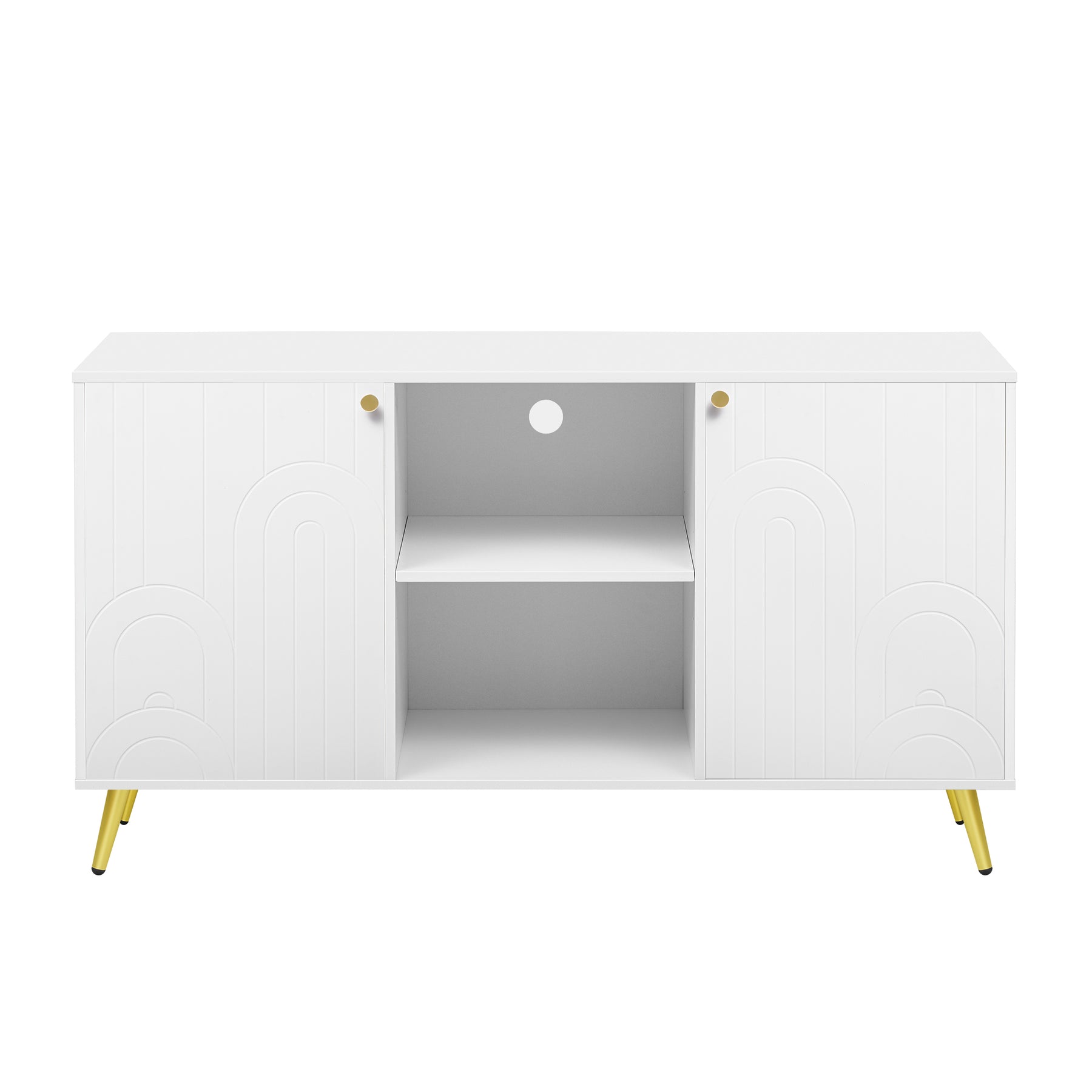U-Can Modern TV Stand for TVs up to 55 Inches, Entertainment Center Media Console,Adjustable Shelf, Metal Legs, Handles and Anti-tip Device for Living room