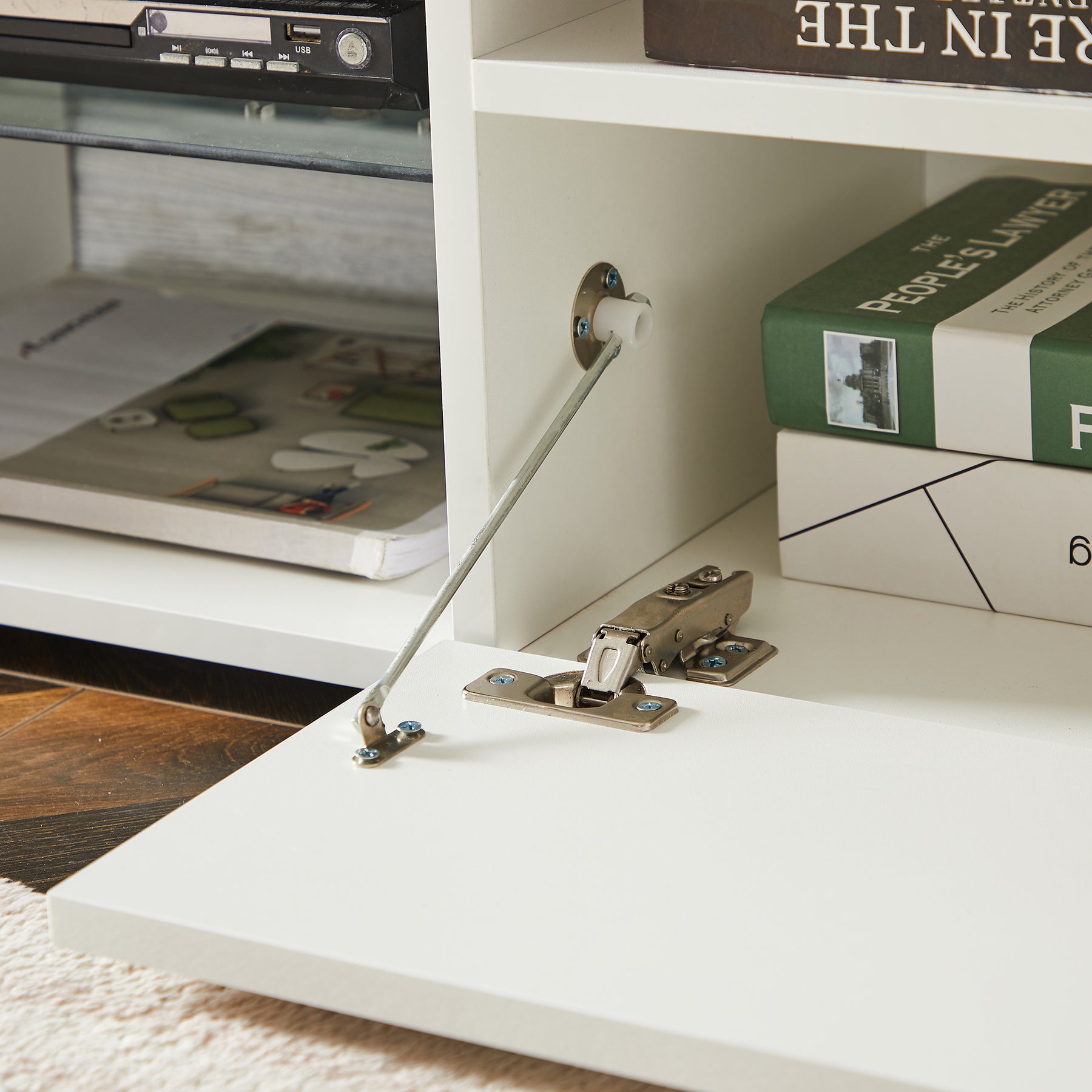 • Made of P2 grade particleboard, this TV stand is scratch proof and waterproof, and easy to maintain. The modern and minimalist structure also provides great stability, with up to 110 pounds .