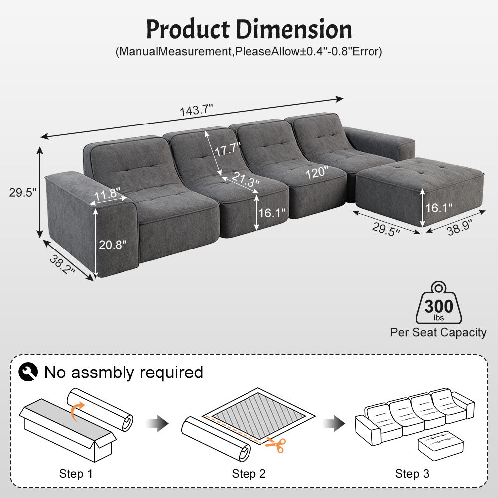 • 【Modular Sectional Sofa Set】Modular sectional sofa, equipped with a movable ottoman for free matching as a sofa set, 3-seater sofa,4-seater sofa,chaise lounge, accent chair etc. perfectly integrating modern simplicity and creative home style, significantly enhancing spatial style and design sense.