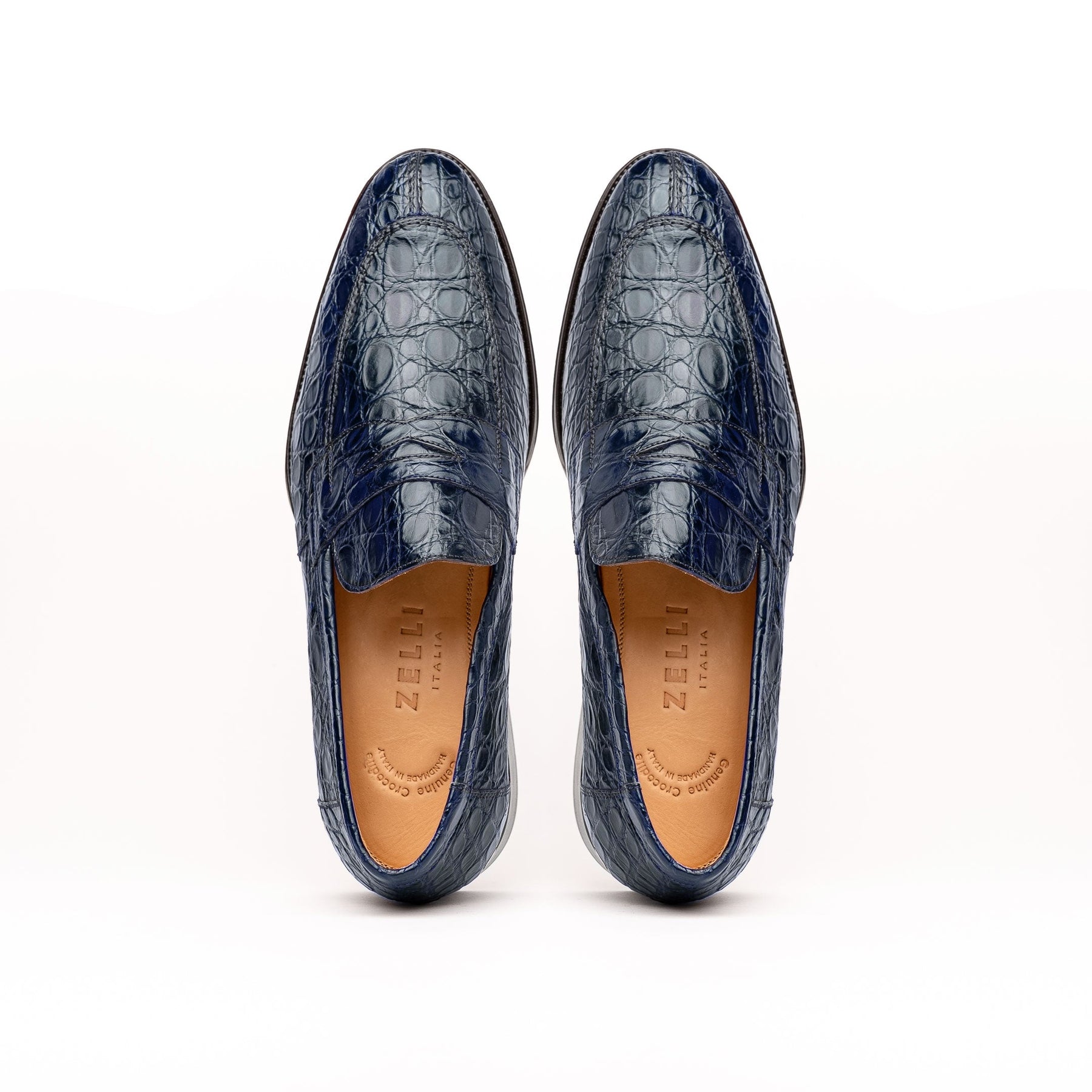 11-201-NVY ROMA Crocodile Penny Loafer, Navy