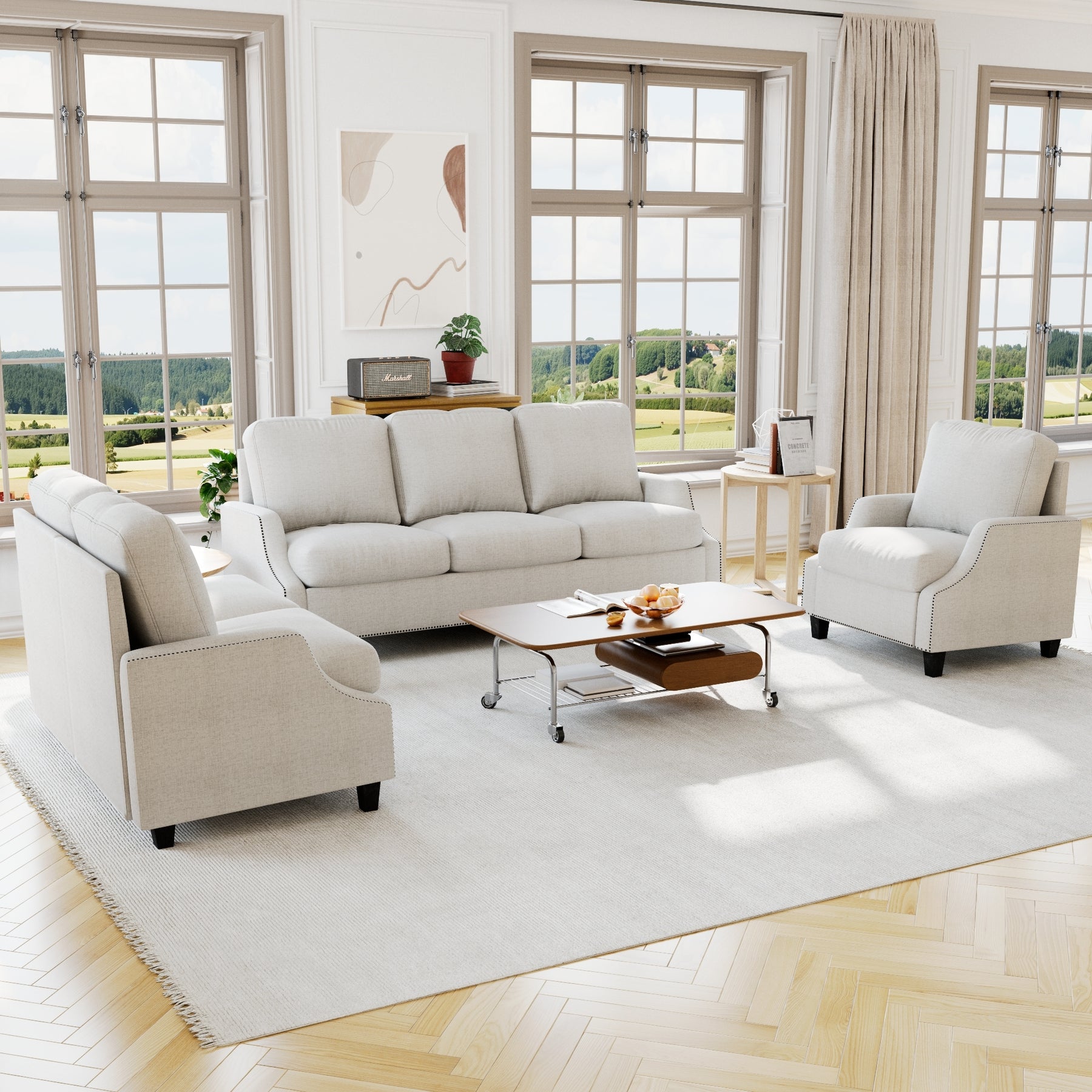 3 Piece Living Room Sofa Sets, Sectional Couch and Loveseat and Armchair Set, Modern 3 Seater Sofa + 2 Seater Couch+ Accent Chair Furniture Set for Apartment