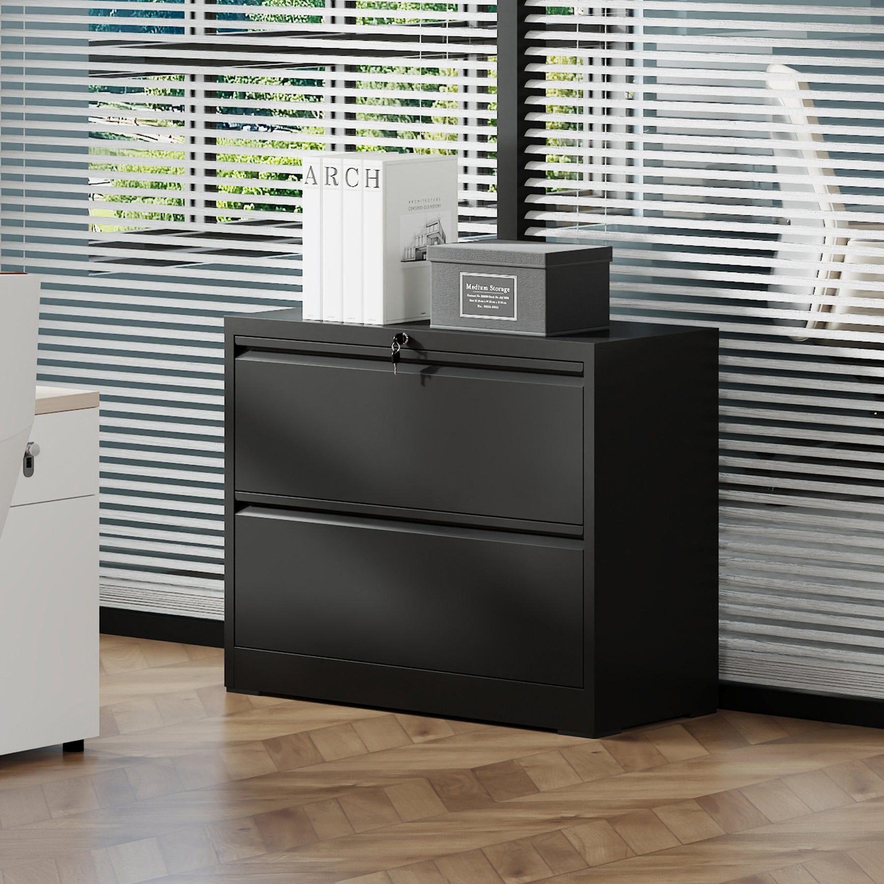 2 Drawer Lateral File Cabinet with Lock – Heavy-Duty Metal Filing Cabinet for Home Office, Space-Saving Wide Storage for Letter/Legal/A4/F4, Silent Full-Extension Slides, Easy-Assembly