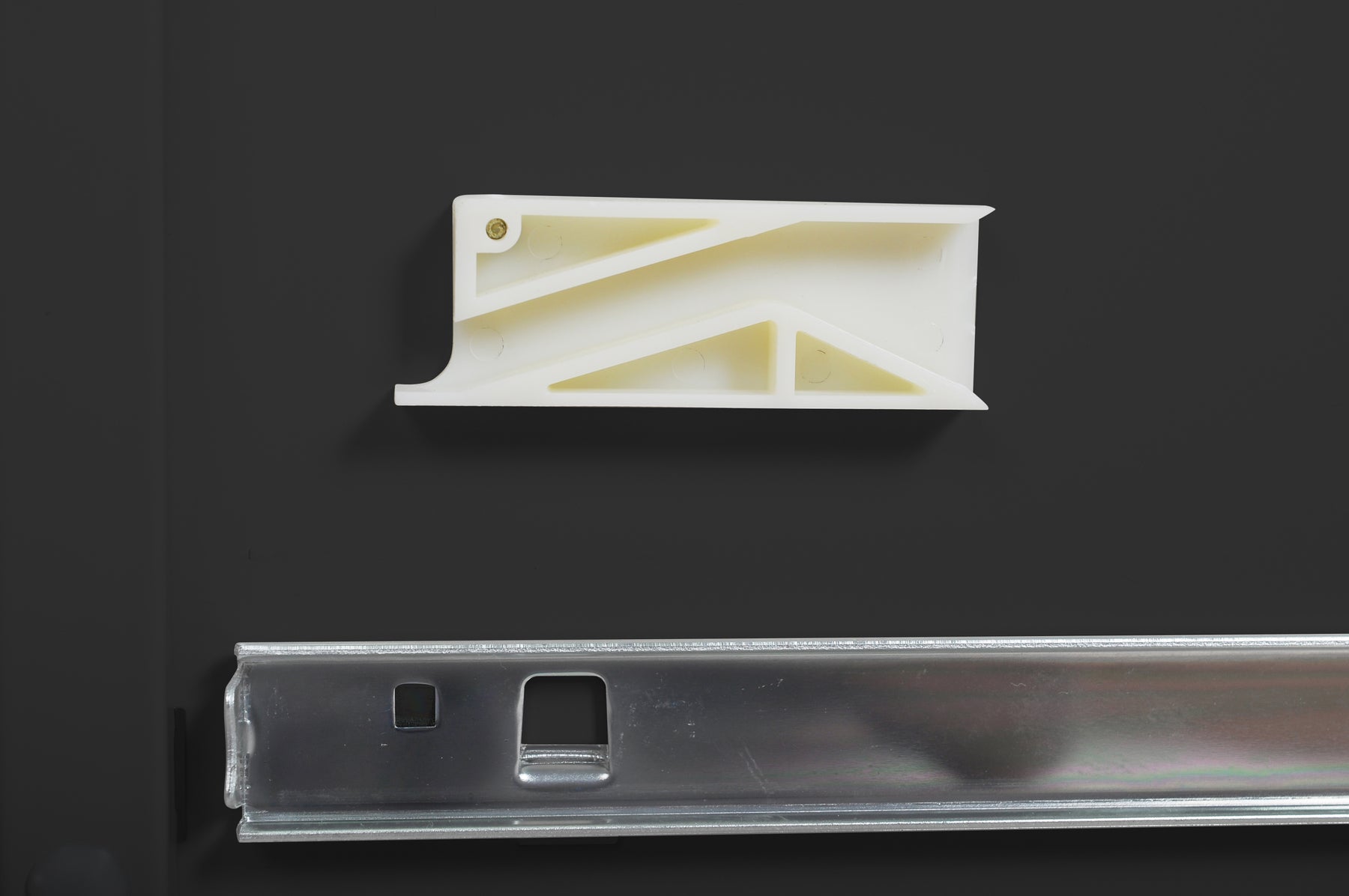 Heavy-duty metal slides allow quiet, effortless opening and closing.