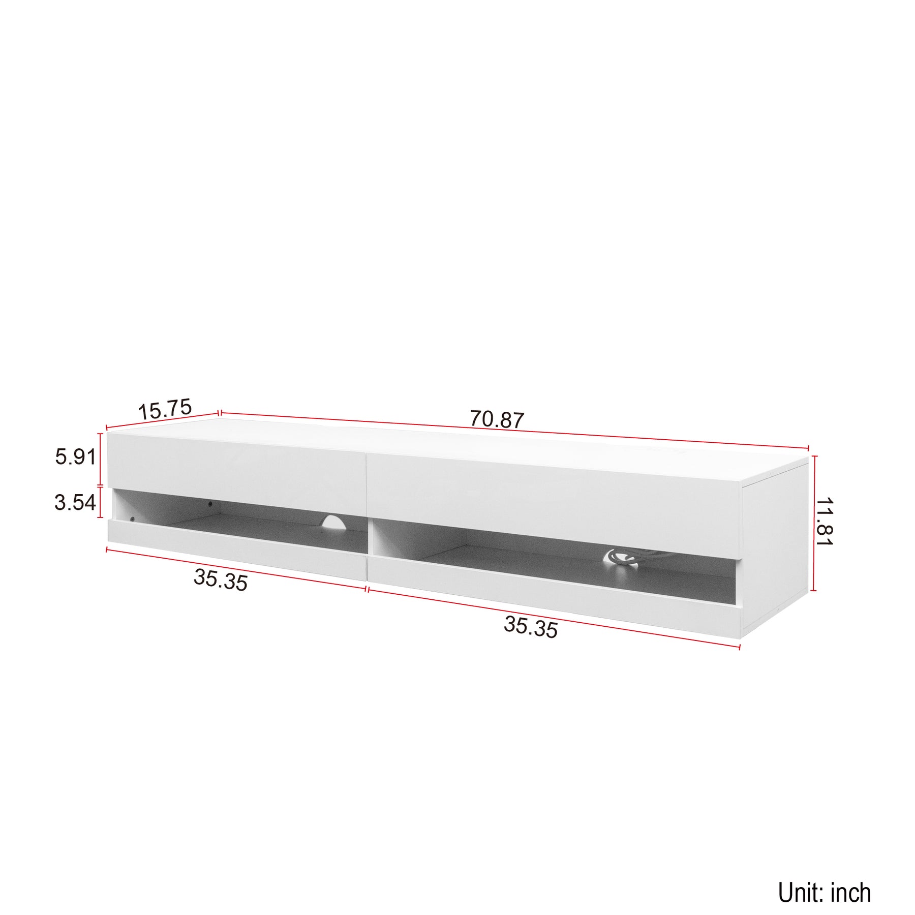 180 Wall Mounted Floating 80' TV Stand with 20 Color LEDs and Charging Station