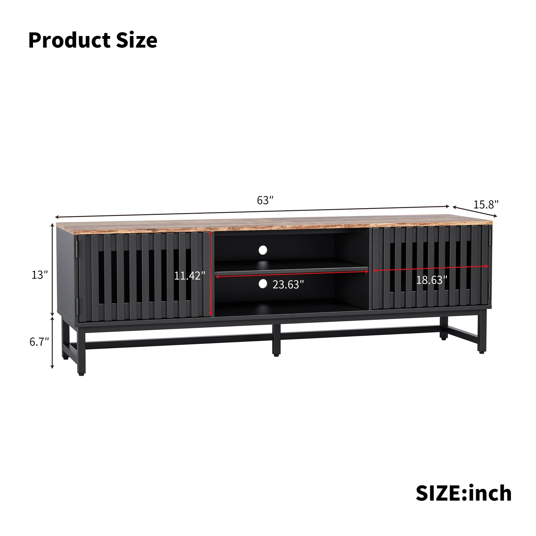 • 63 Inch TV Stand: Support TV up to 60 inches. Spacious desktop: 63'' x 15.8''. Prop your TV on this entertainment stand, or mount your TV to use it as a media cabinet, this TV table will be an eye-focused piece.