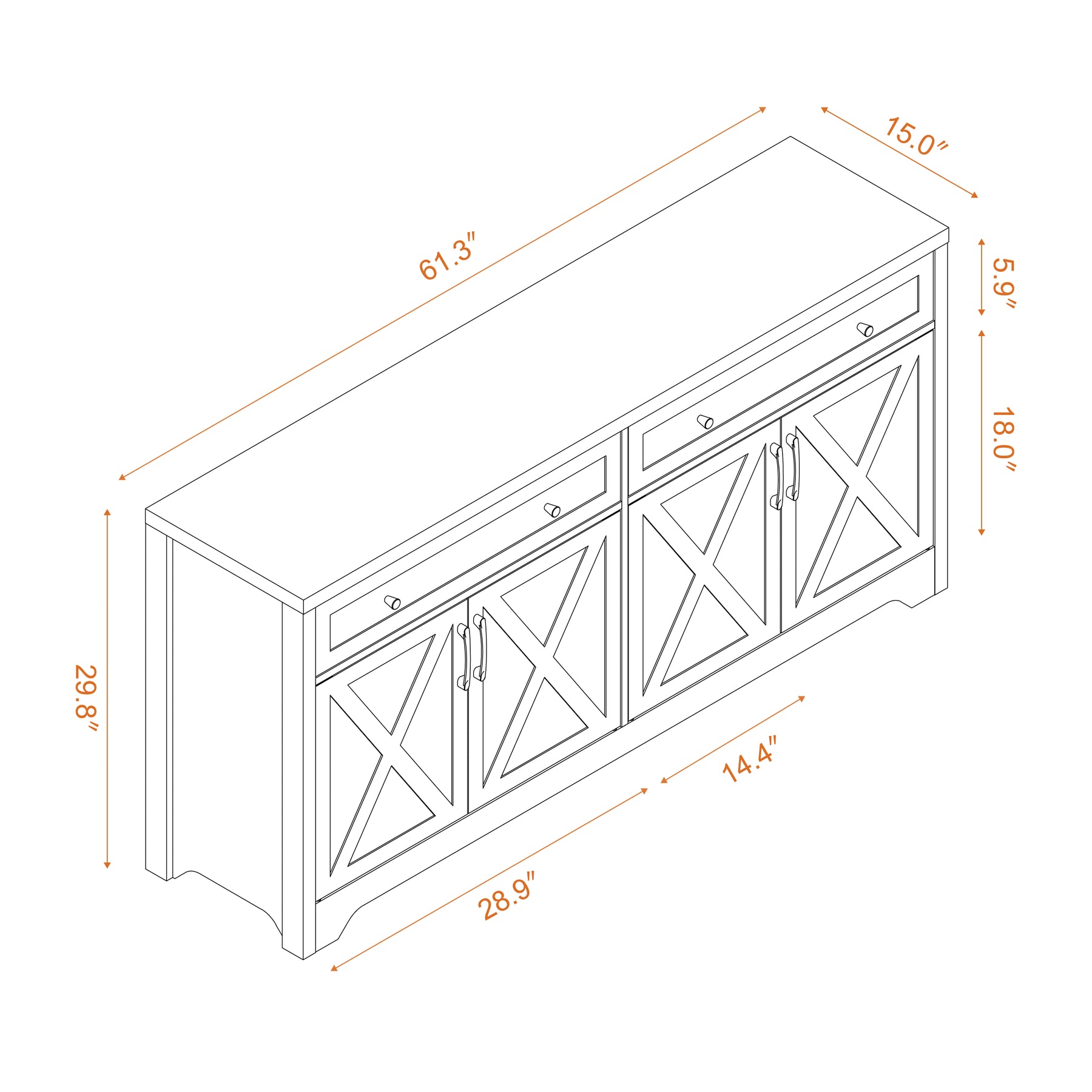 61 inch TV stand for living room, multifunctional combination TV stand, large capacity storage cabinet, can be used in living room, bedroom, office area,61.3''L x 15''W x 29.8''H