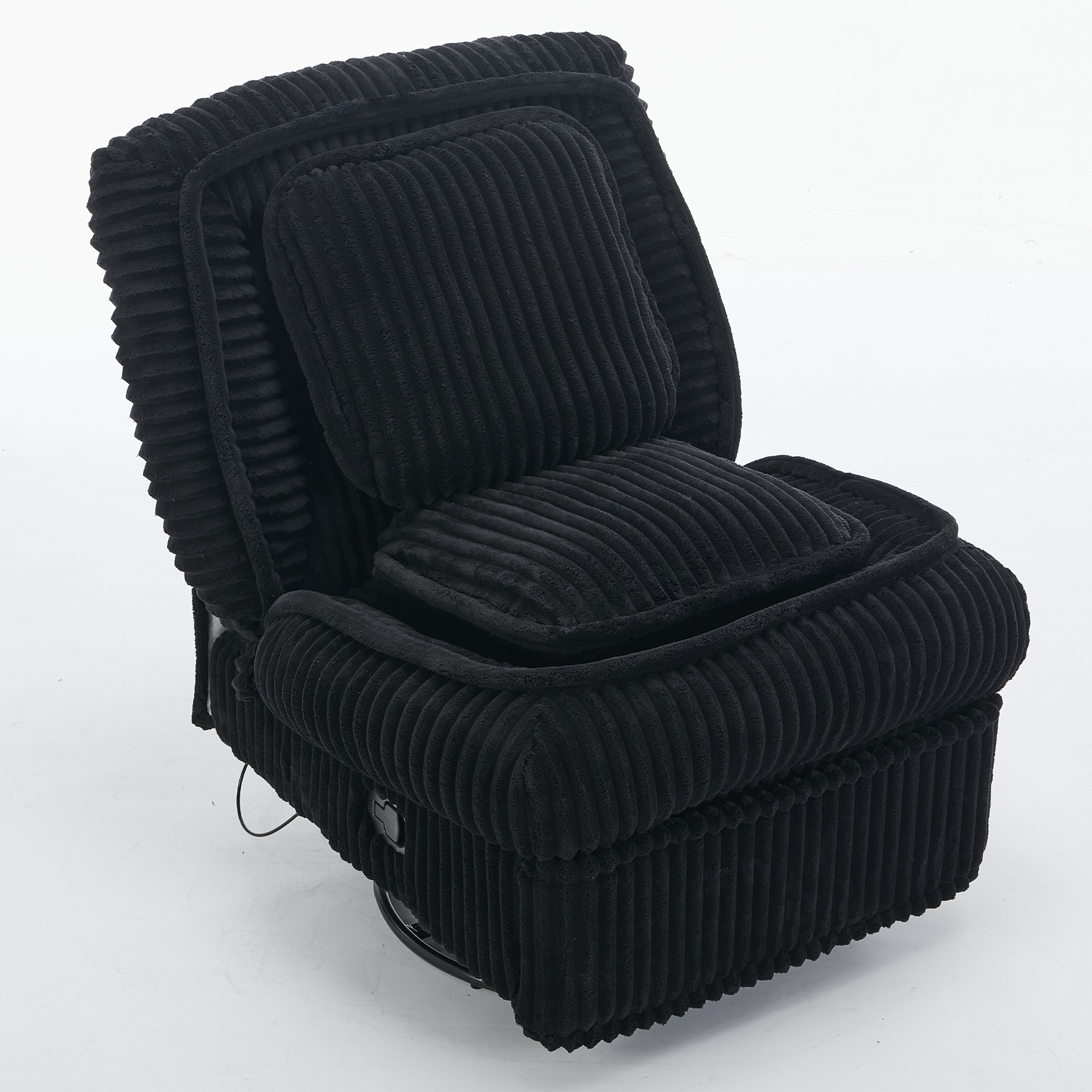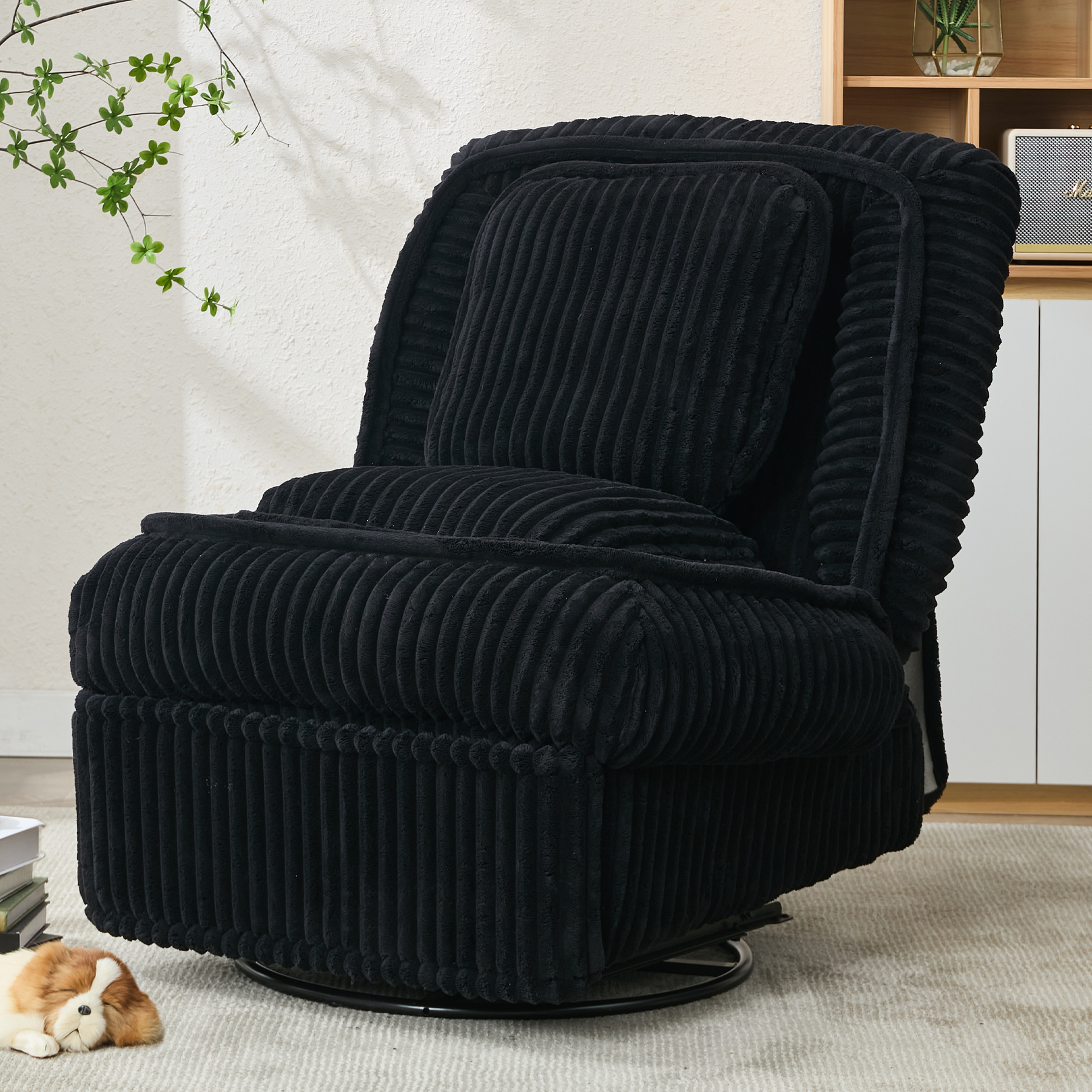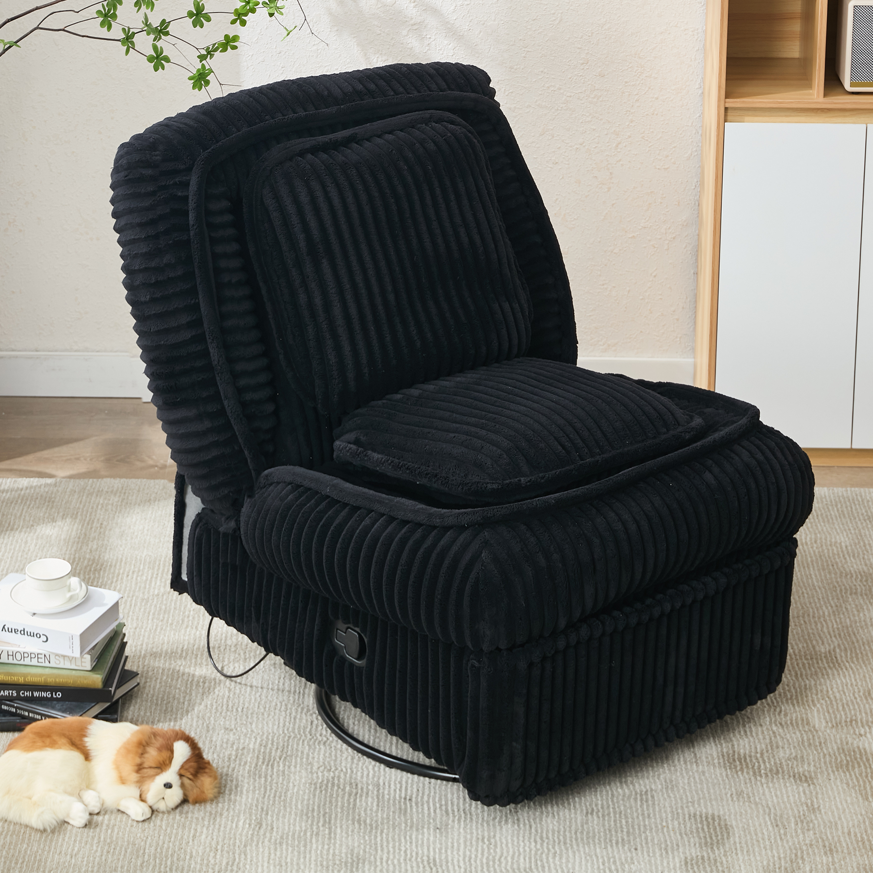 [NEW ARRIVED] 360° Swivel Rocking Single Sofa,Recliner Sofa, Manual Glider Rocking Armless Chair,Living Room Office, With Adjustable Backrest and Footrest and pillows, Small Spaces,Corduroy , Black