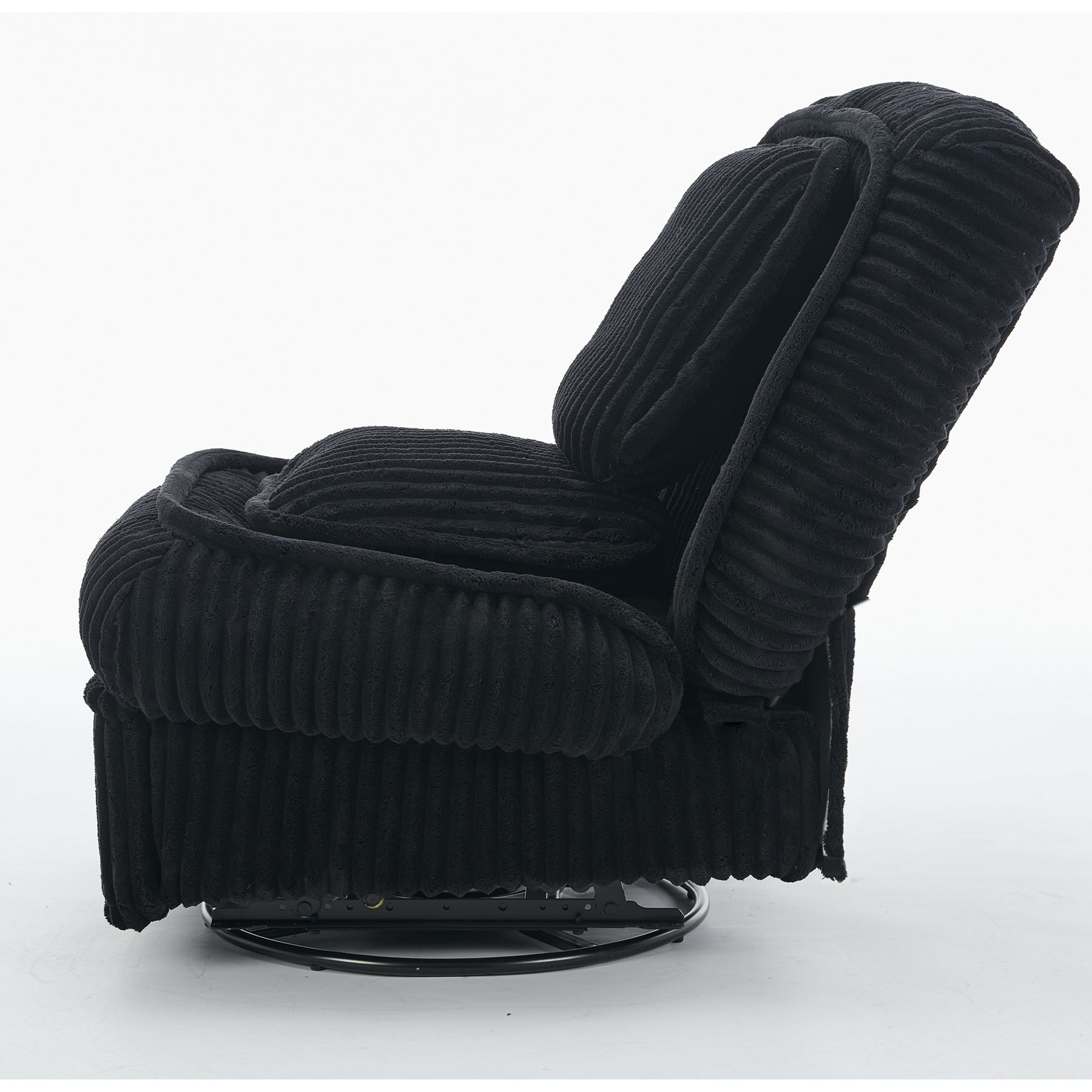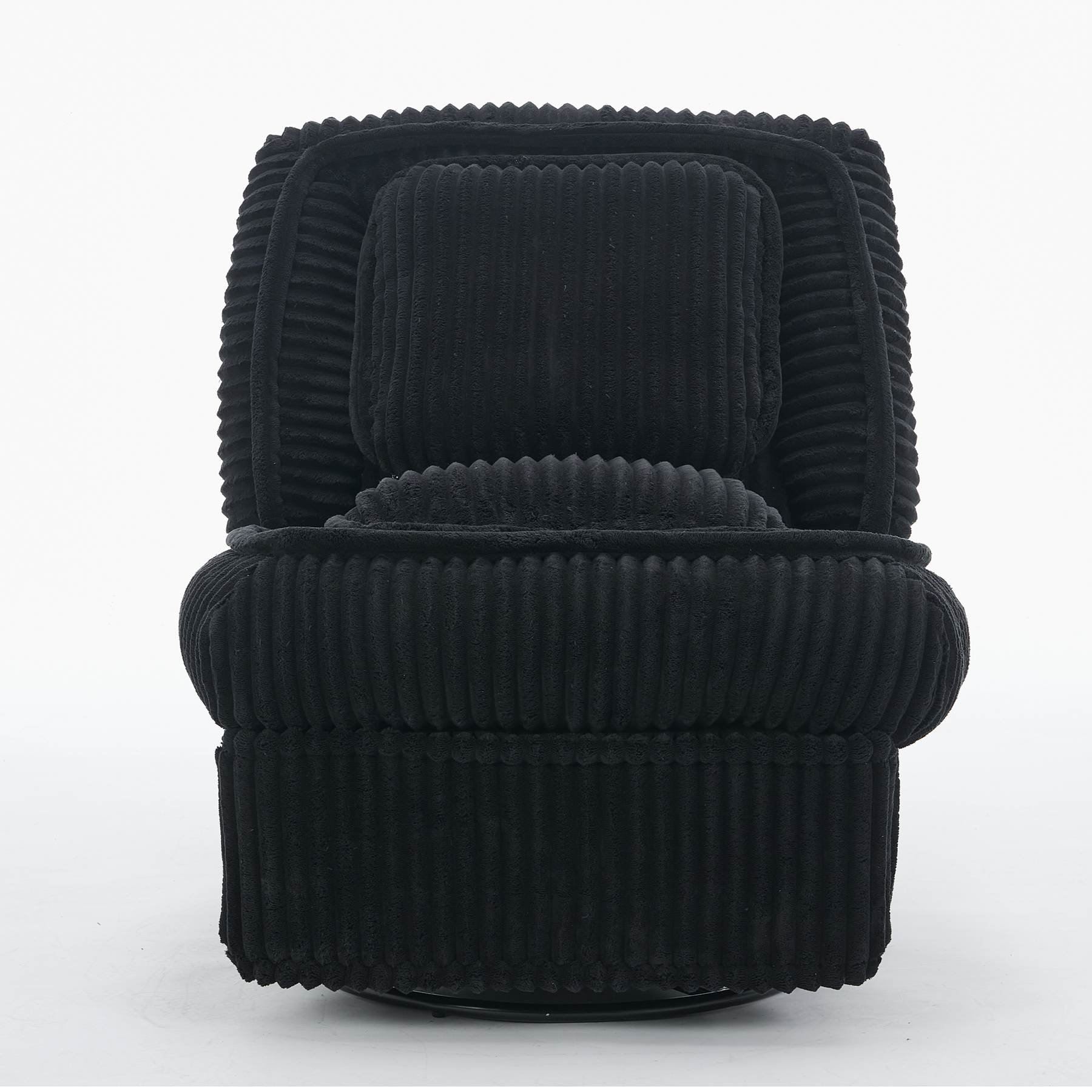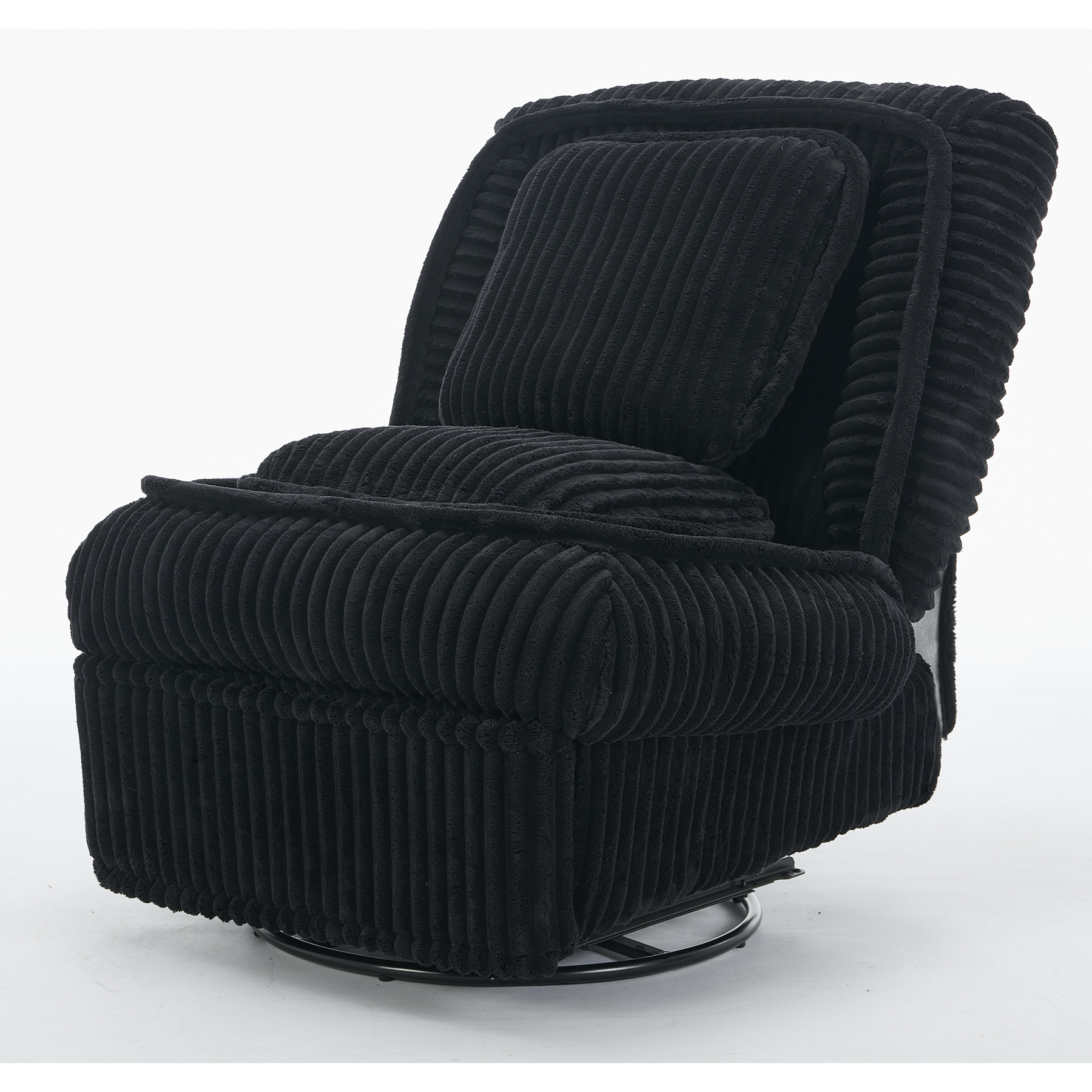 [NEW ARRIVED] 360° Swivel Rocking Single Sofa,Recliner Sofa, Manual Glider Rocking Armless Chair,Living Room Office, With Adjustable Backrest and Footrest and pillows, Small Spaces,Corduroy , Black