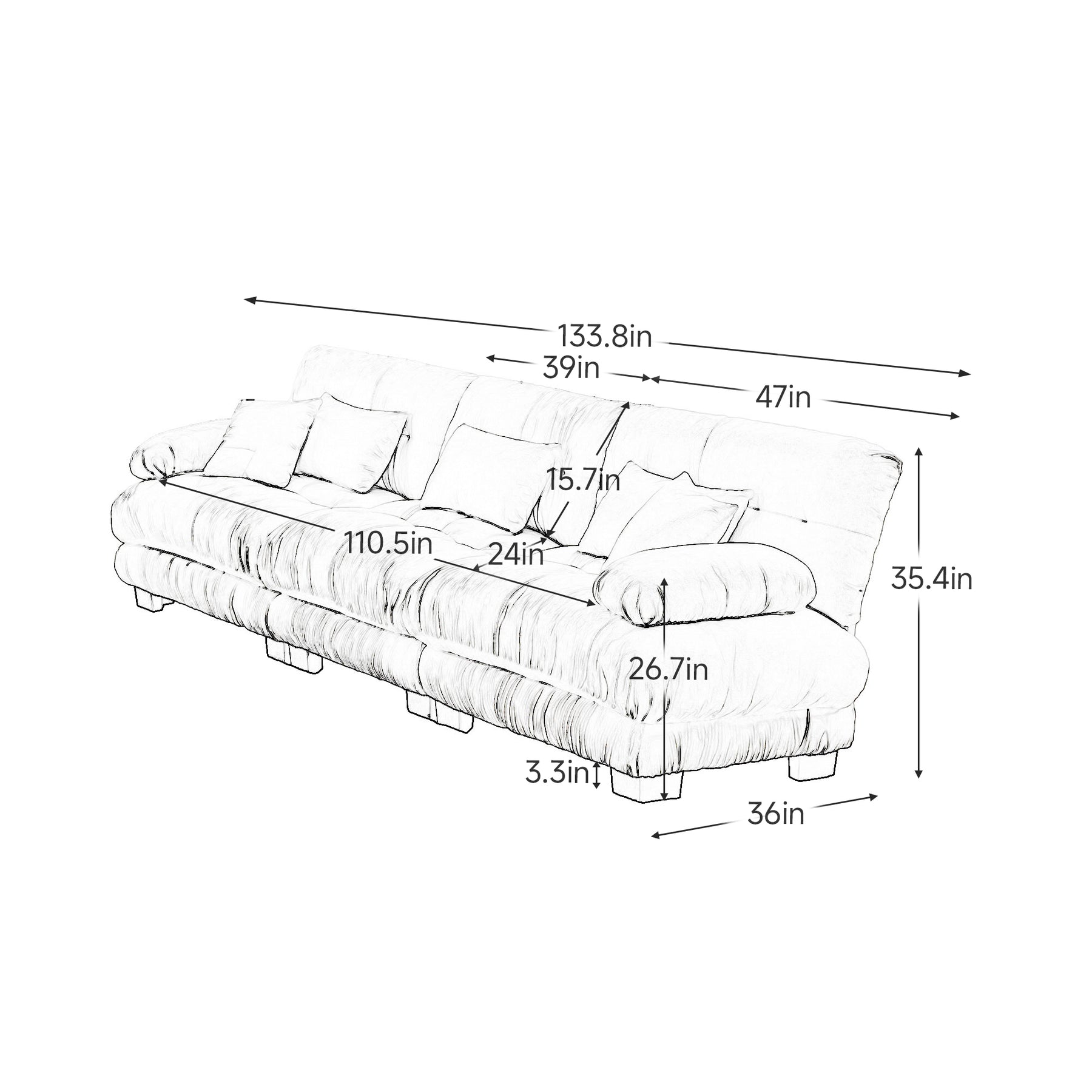 • Sitting on a cloud - The cloud look seat cushions have no spring or wood inside them, yet they offer outstanding support and elasticity for your body. The deep seat design provides additional support and ensures comfort for your waist. Moreover, the throw pillows and waist pillows are included to give you extra support as well. When you sit on it, you can immediately feel how well the dorm couch backrest fits and supports your body, allowing you to enjoy an unparalleled level of comfort.