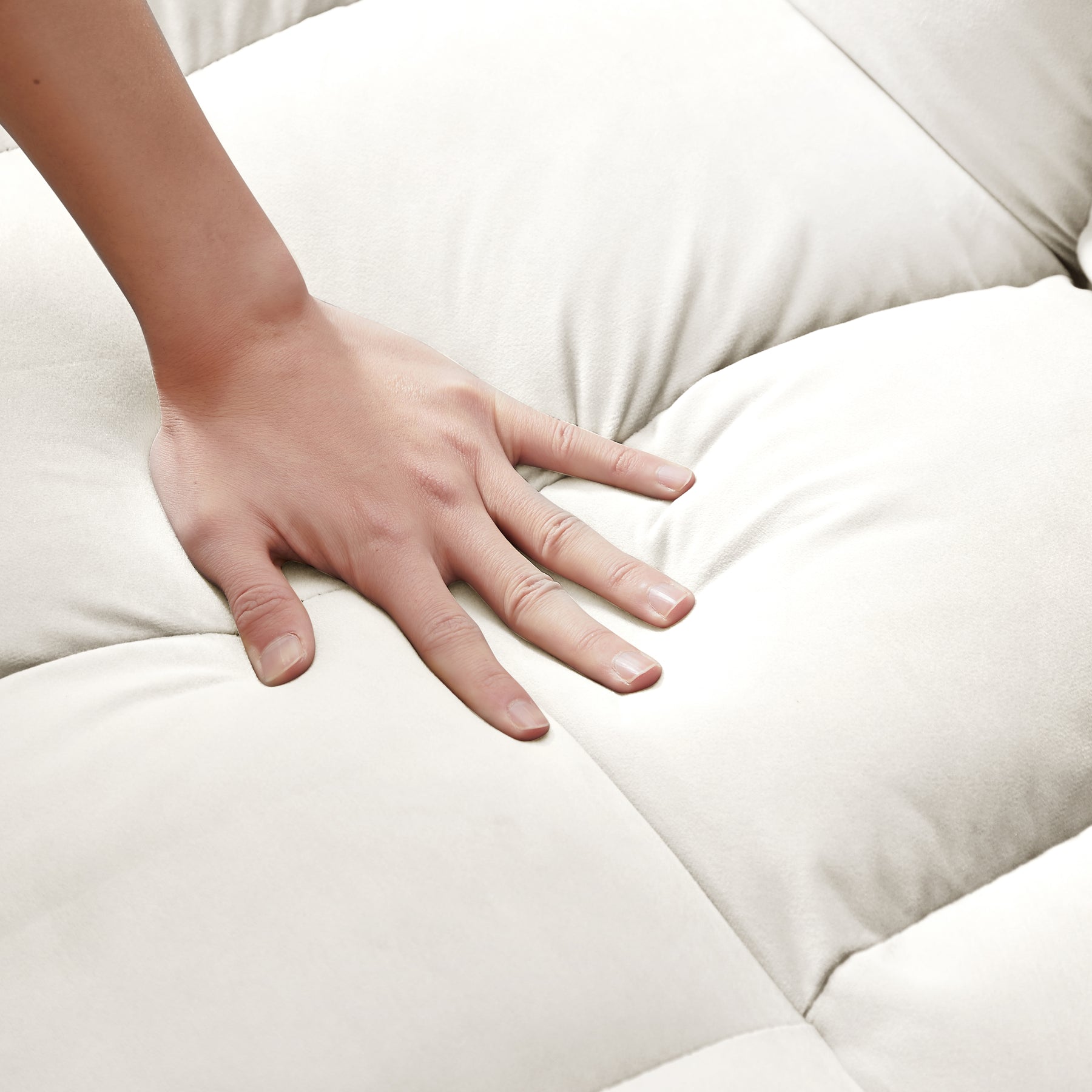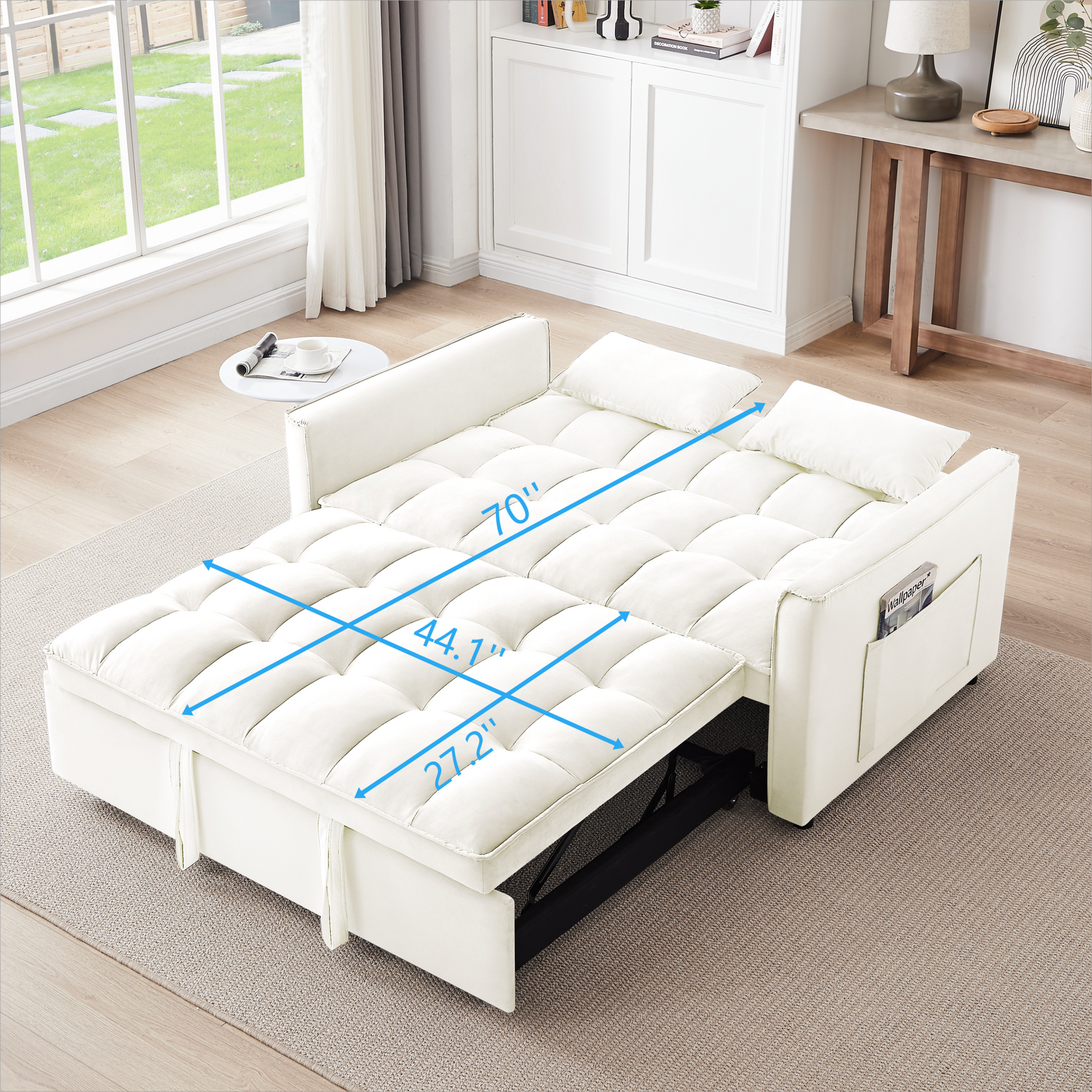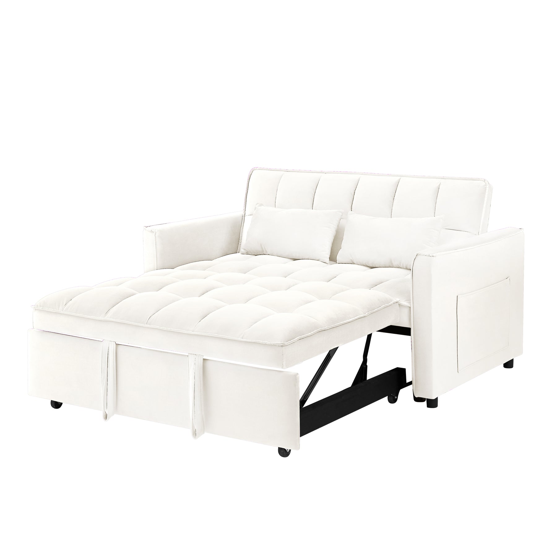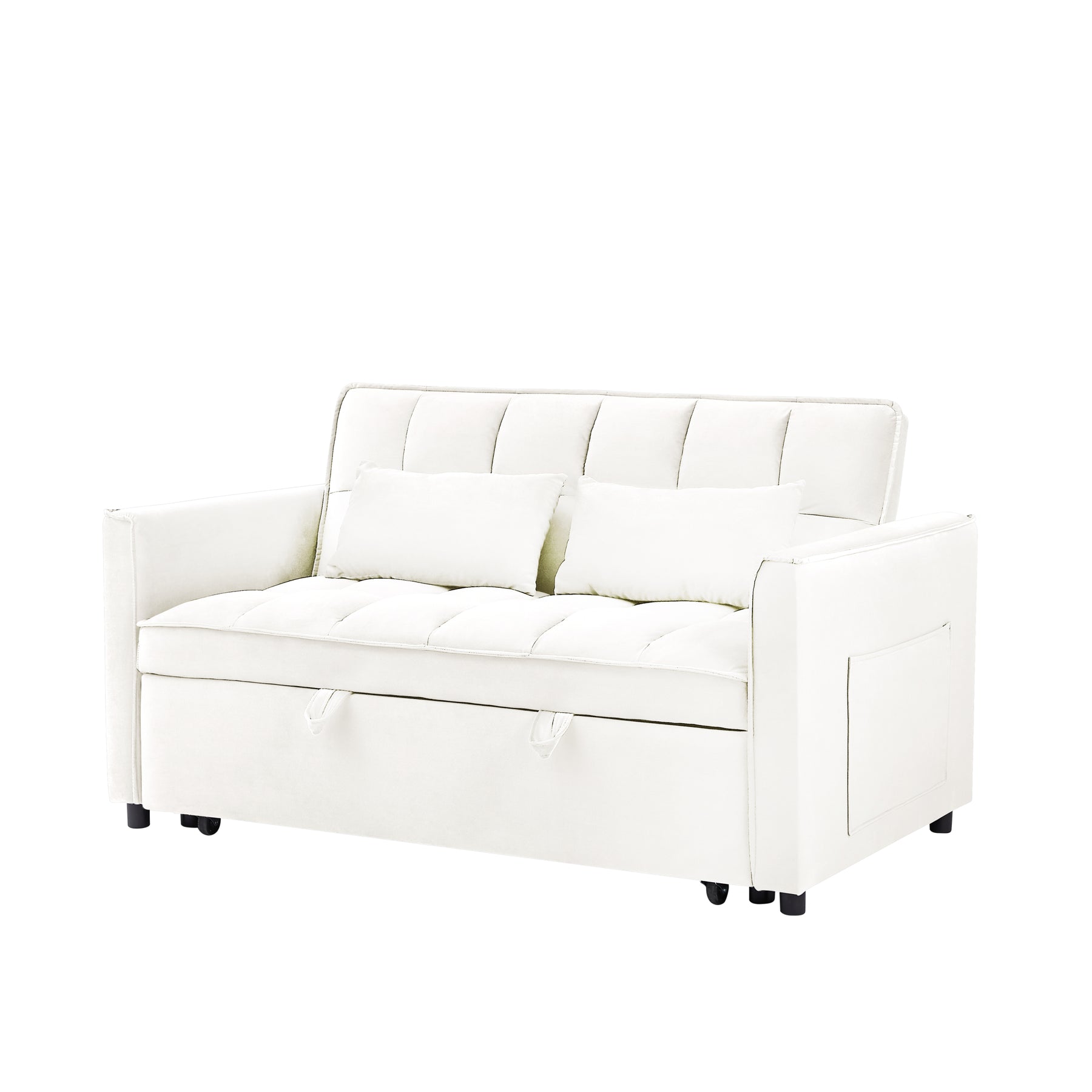 55.1-inch 3-in-1 convertible sofa bed, modern velvet double sofa Futon sofa bed with adjustable back, storage bag and pillow, for living room, bedroom (Off white)