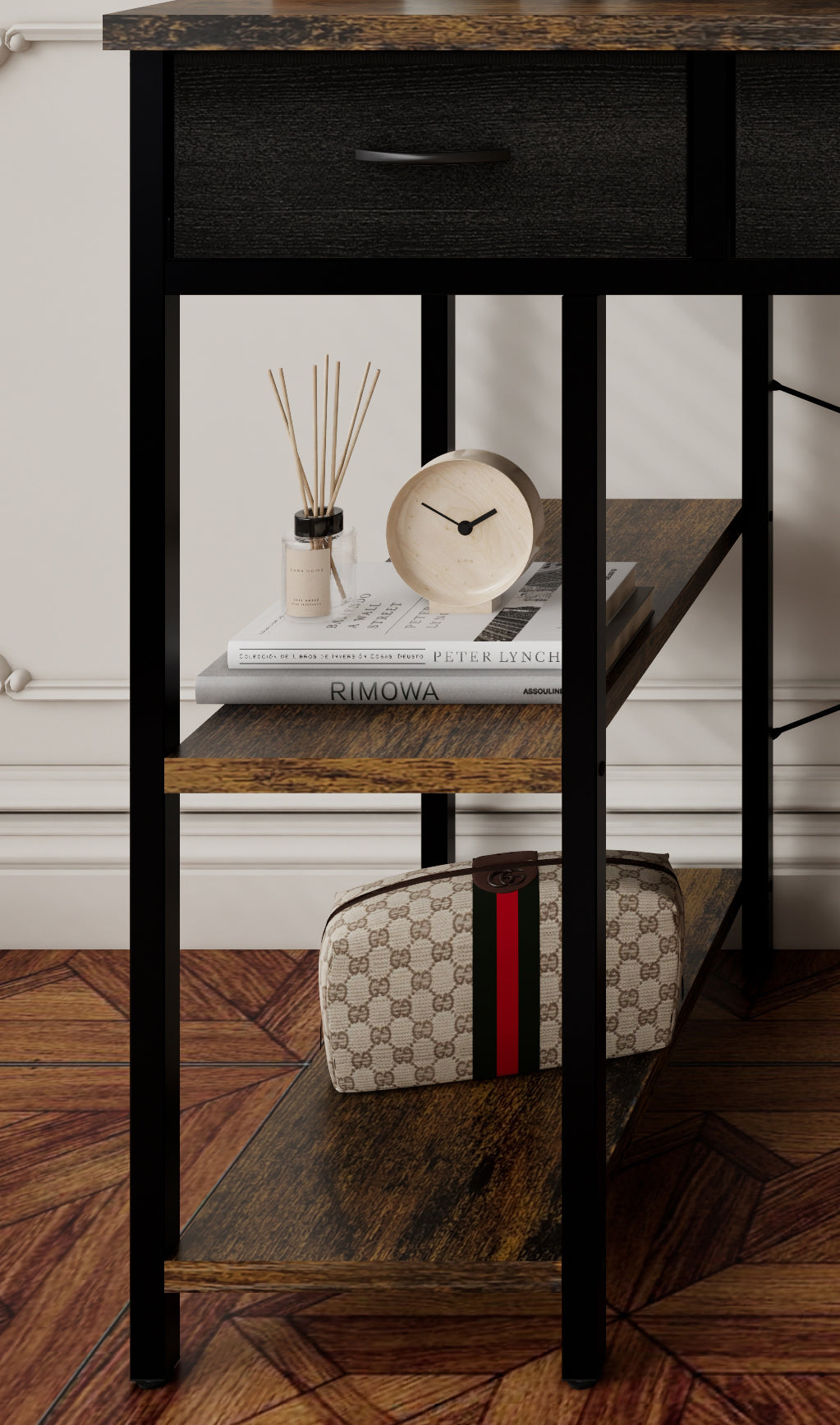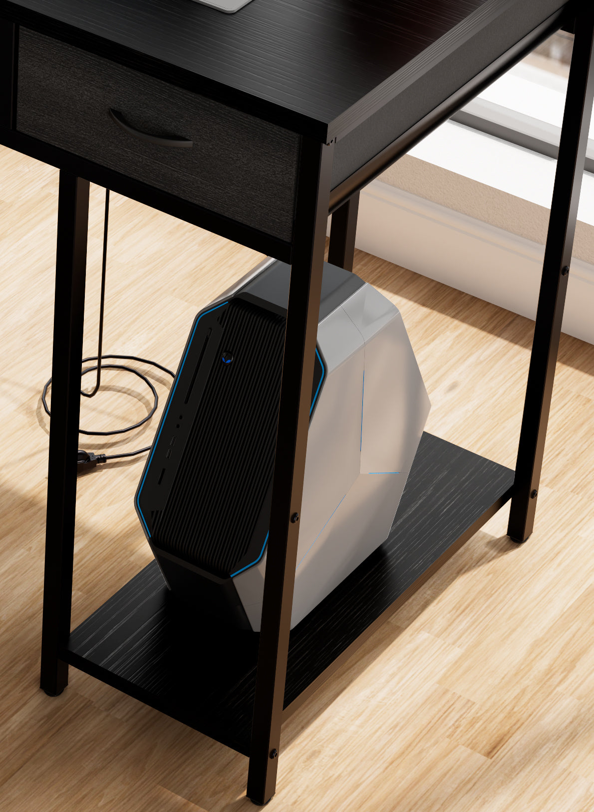 • 【Adjustable and Reversible Computer Desk】 The cabinet with drawers and side pocket can be installed on the left or right side based on your preferences. The movable CPU stand and shelf allow for easy placement of your computer and printer, keeping your desktop tidy and providing ample workspace.