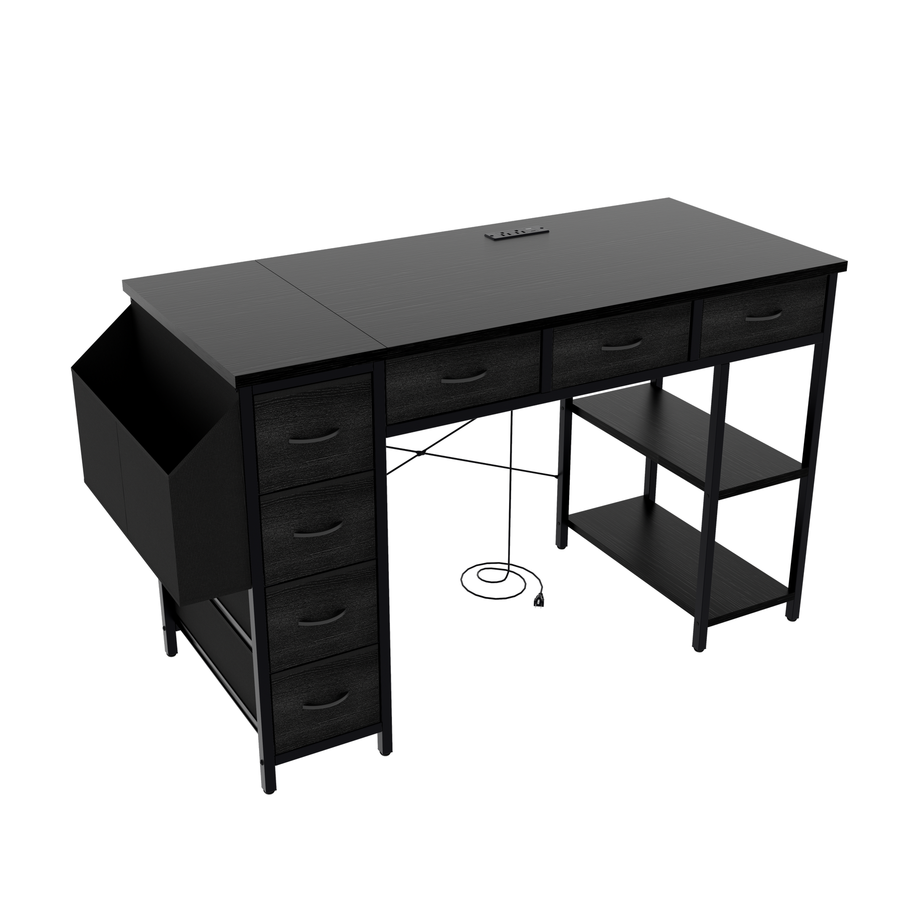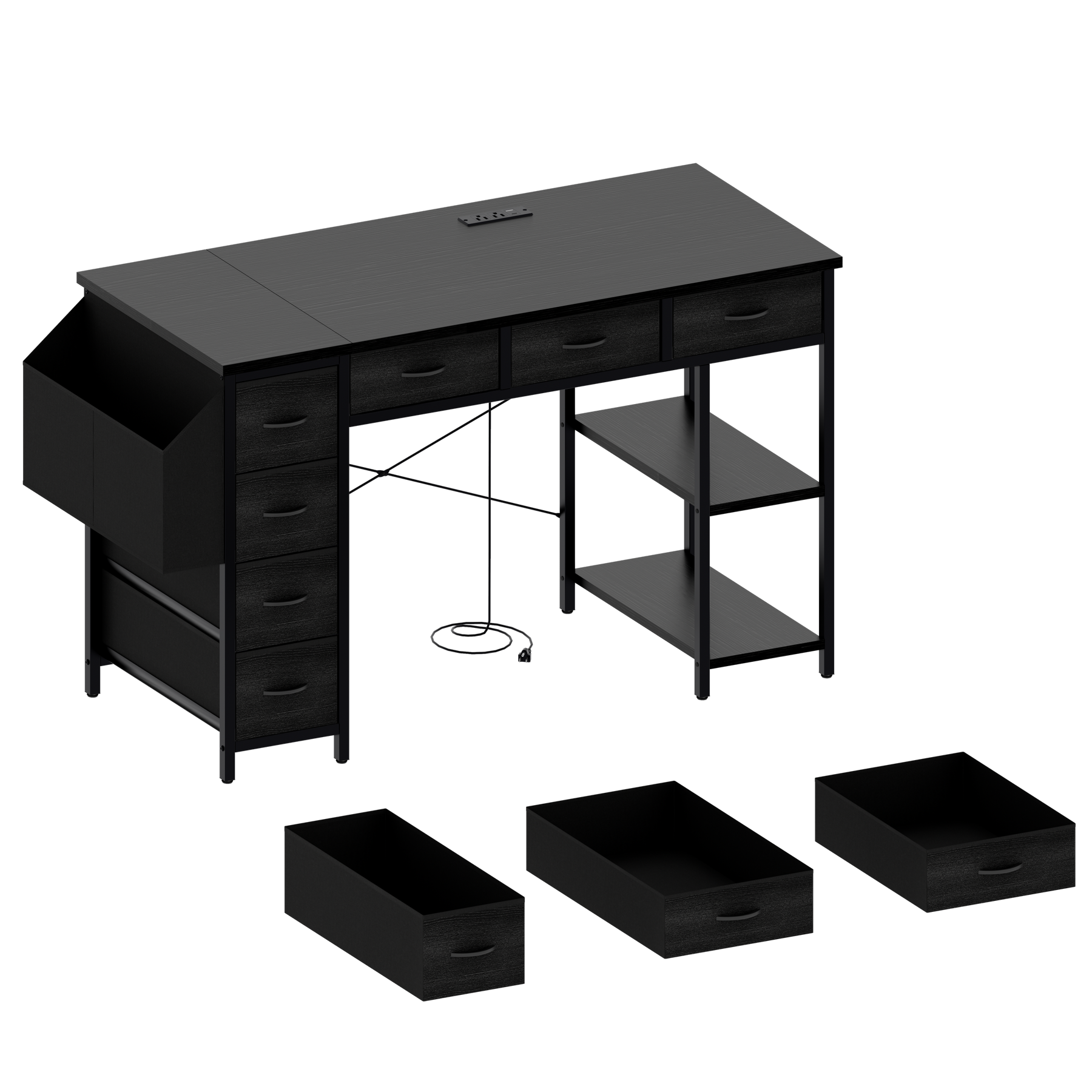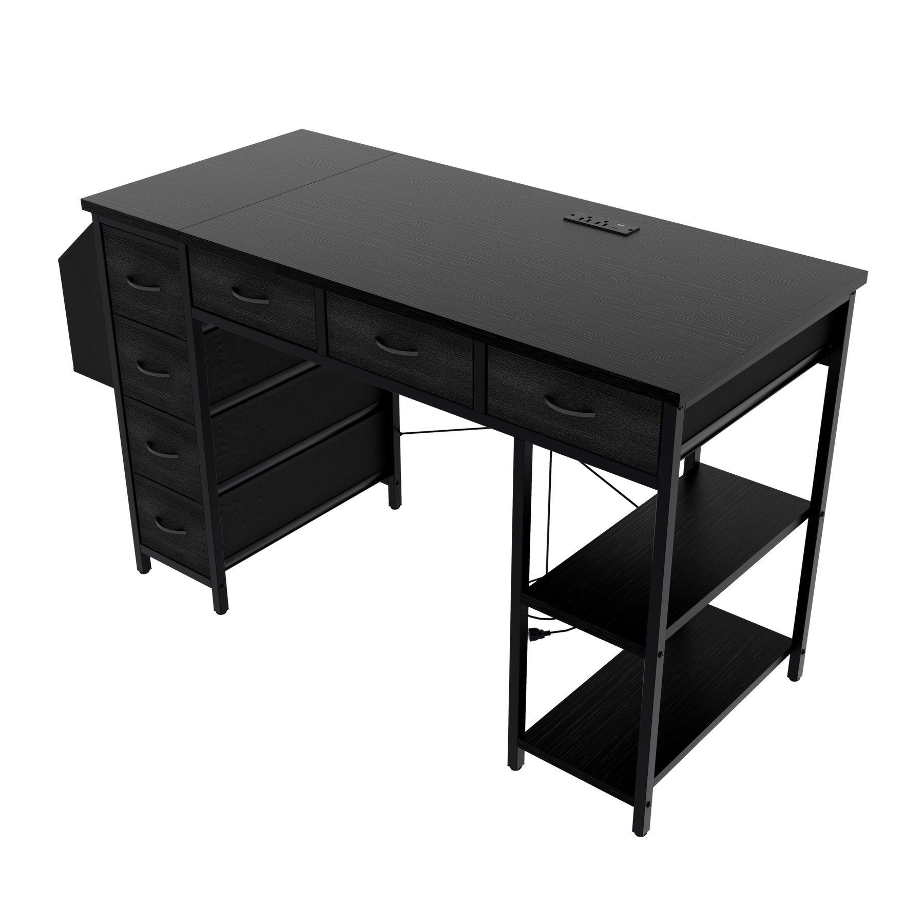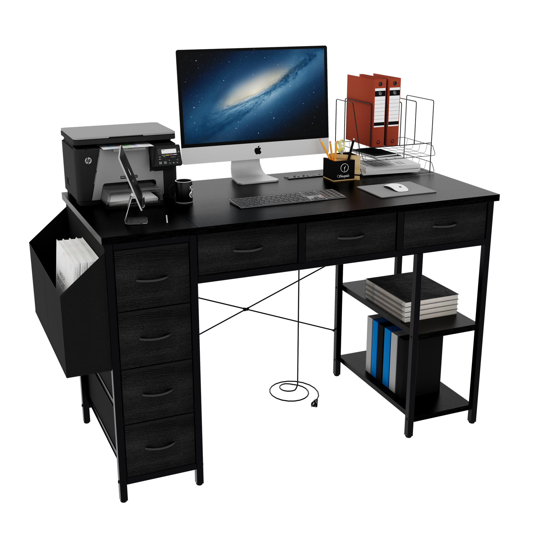 47.3' Computer Desk with 7 Drawers, Extra Large Side Pocket, and Power Outlets – Ideal for Home Office, Study, or Gaming – Black