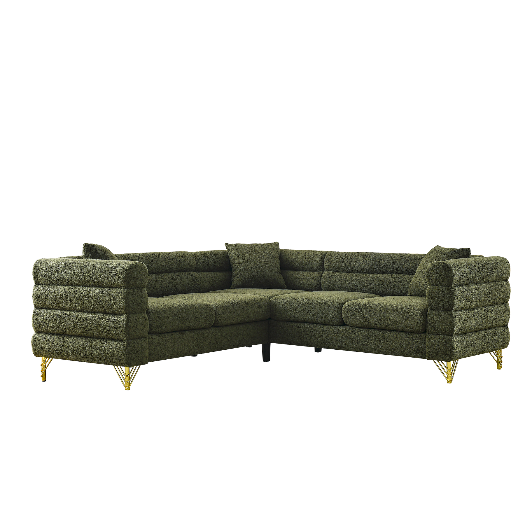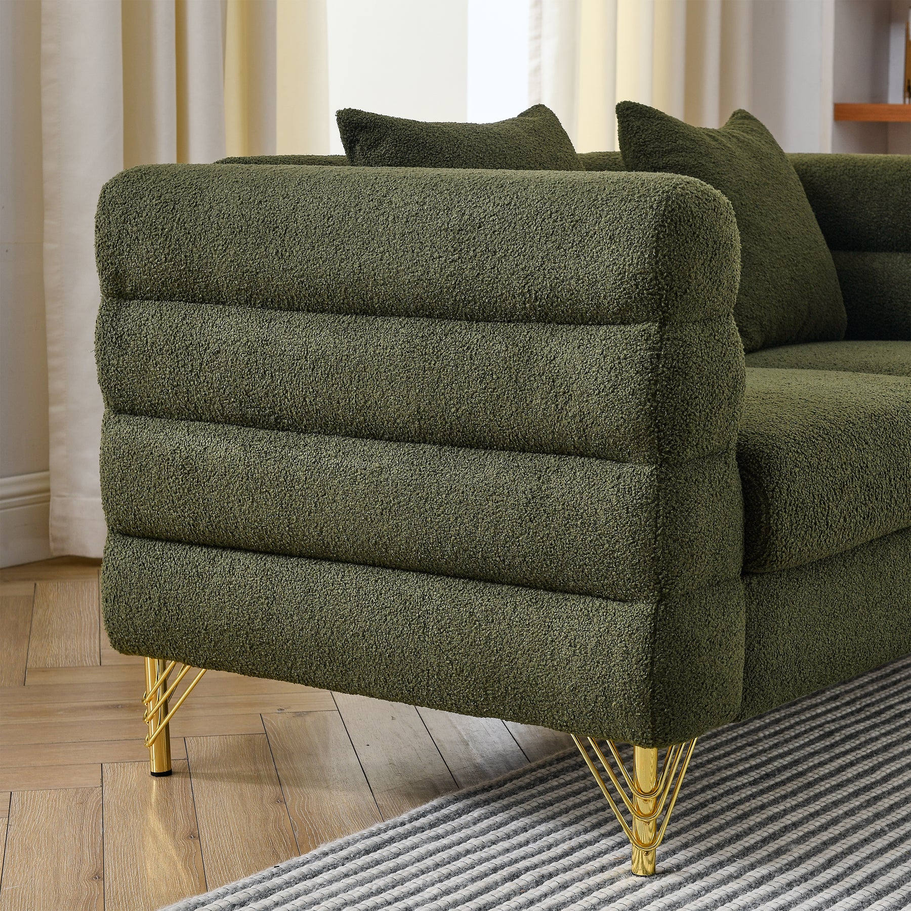 • ✔ DURABLE: The sofa is supported by solid wood frame and sturdy gold polished metal legs, this modern three seater living room sofa is strong and durable. Each seat can easily hold up to 250 pounds, making it ideal for three people to relax.