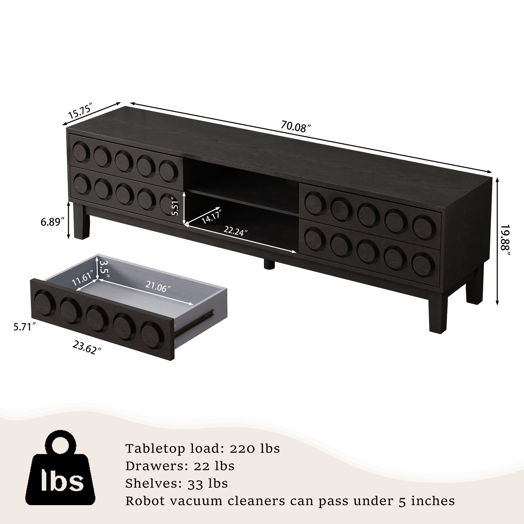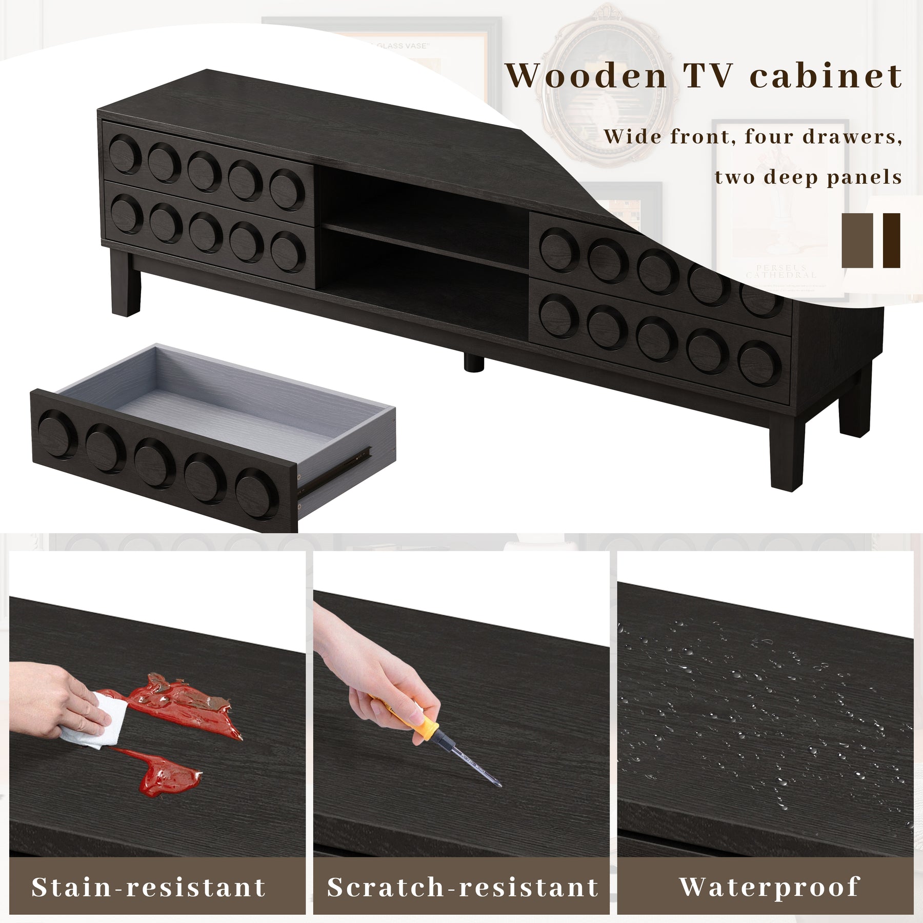 TV Stand for TVs up to 75', Media Console with 4 Drawers, Entertainment Center with Storage for Living Room and Bedroom(Black)