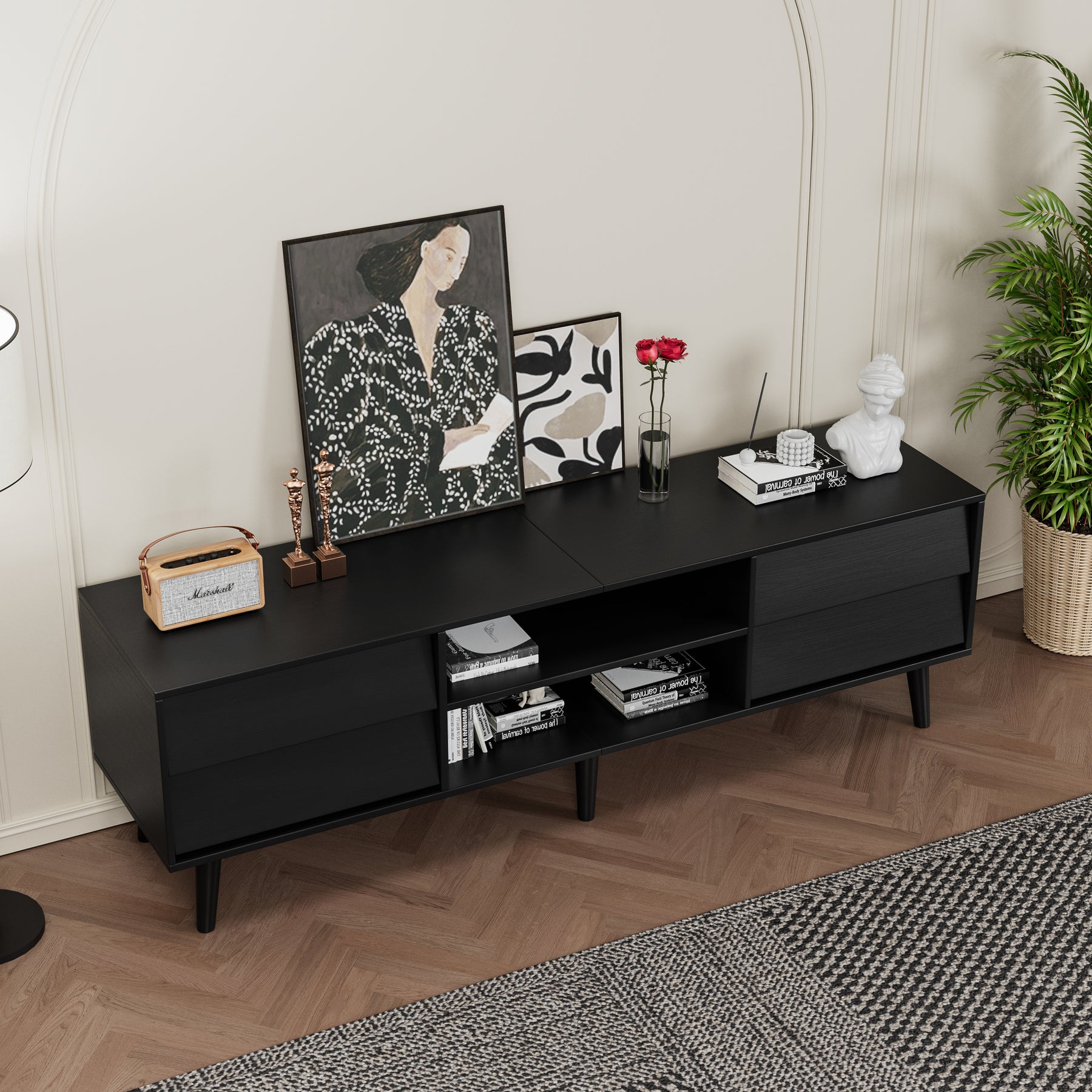 • Unique Design: The TV stand features vintage-style and bevel design, hidden drawer pulls, and the legs are solid wood for more stability. The simple lines of the long TV stand design can easily be incorporated into a variety of decorative aesthetics to enhance the look of any room.