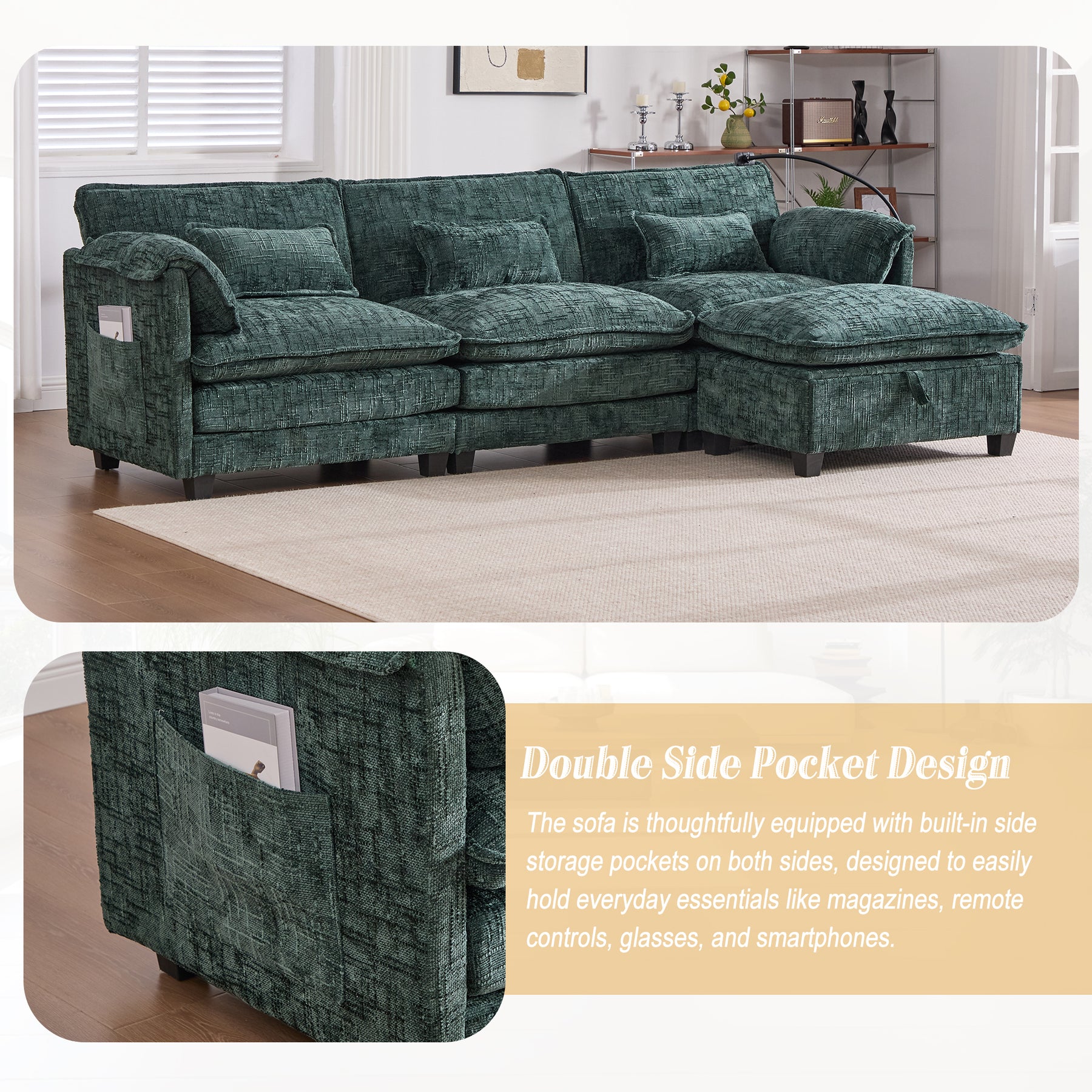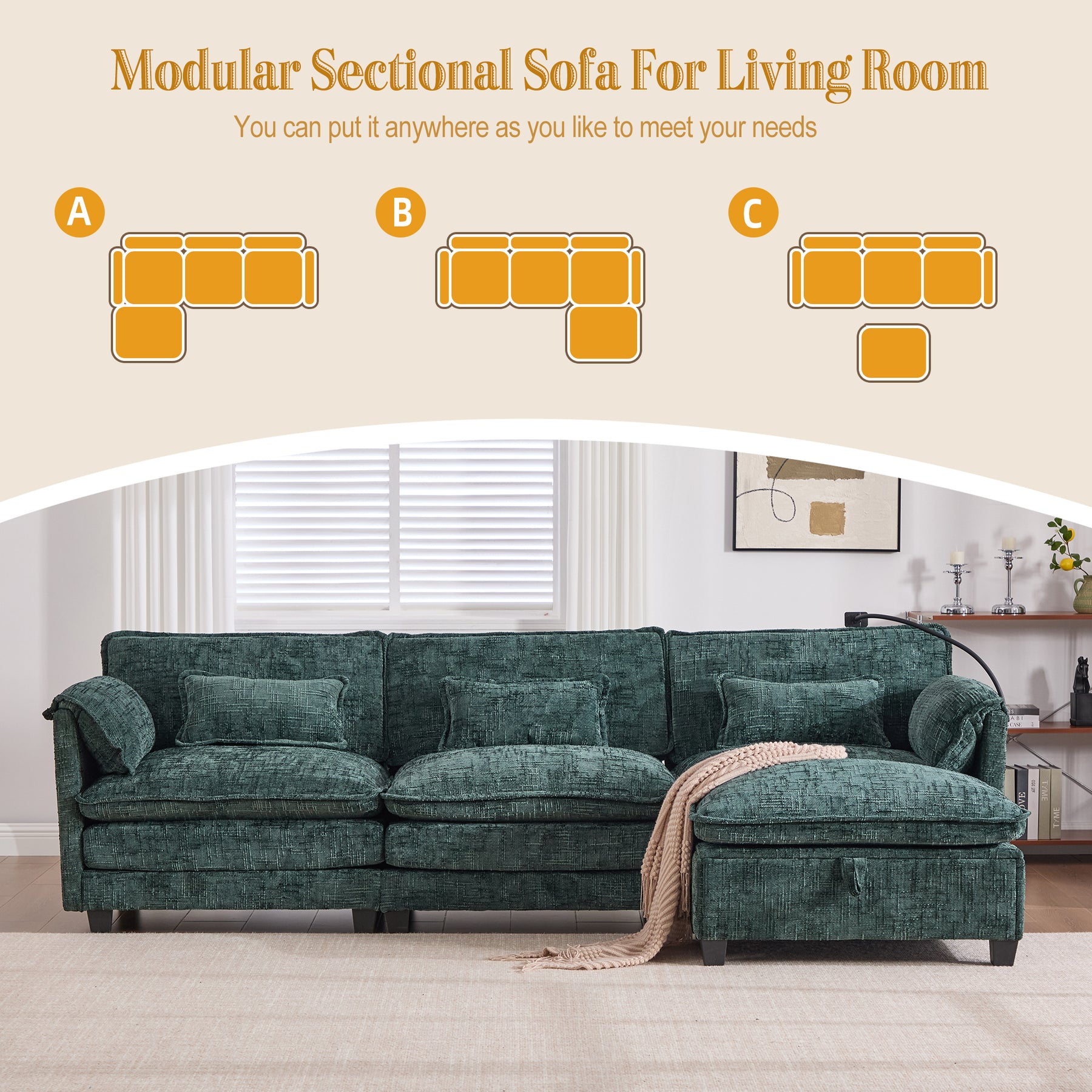 • Comfortable Sectional Sofa:The Cloud sectional sofa is designed with a 2-layer cushioned seat made of high-resilience foam, delivering a soft and cozy feel. It comes with a convenient, multi-functional detachable storage ottoman, which can serve as a footrest, extra seating, or an extension of a chaise lounge. Additionally, it doubles as a storage box for organizing small items. Whether you’re sitting back to relax or lying down for a nap, this modular sectional sofa will provide you with an inc