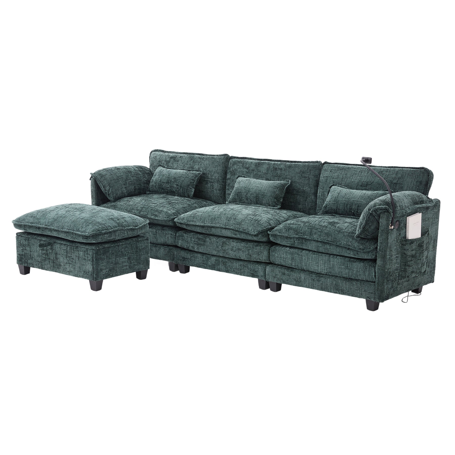UNITED WE WIN 112' Oversized Sectional Sofa Cloud Couch for Living Room, Modern Chenille L Shaped Couch, Comfy Boucle Modular Sofa Sleeper with Movable Storage Ottoman, Phone Holder, USB Charging Port