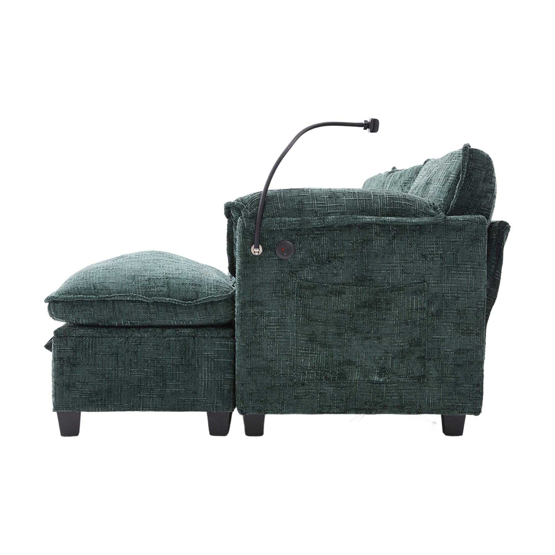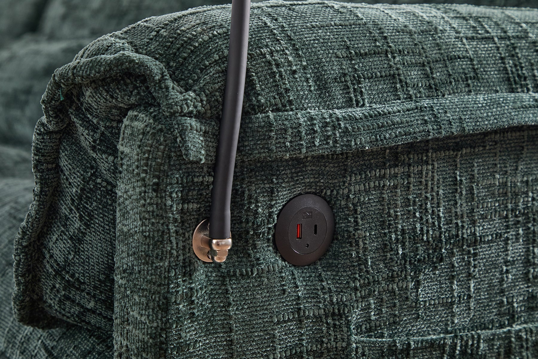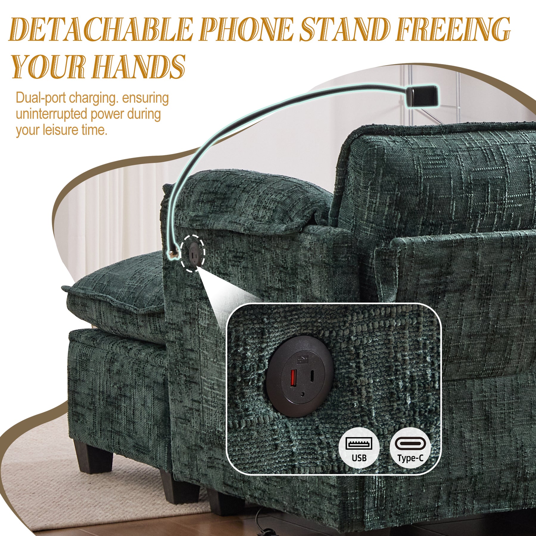 • Charging Ports and Phone Holder:The sofa is thoughtfully equipped with built-in charging interfaces: 1 USB port (5V-2.4A) + 1 Type-C port (5V-2.4A), and a phone holder. This design enables convenient charging of devices while keeping your phone within easy reach, perfectly integrating functionality with modern convenience to deliver a smarter living experience.
