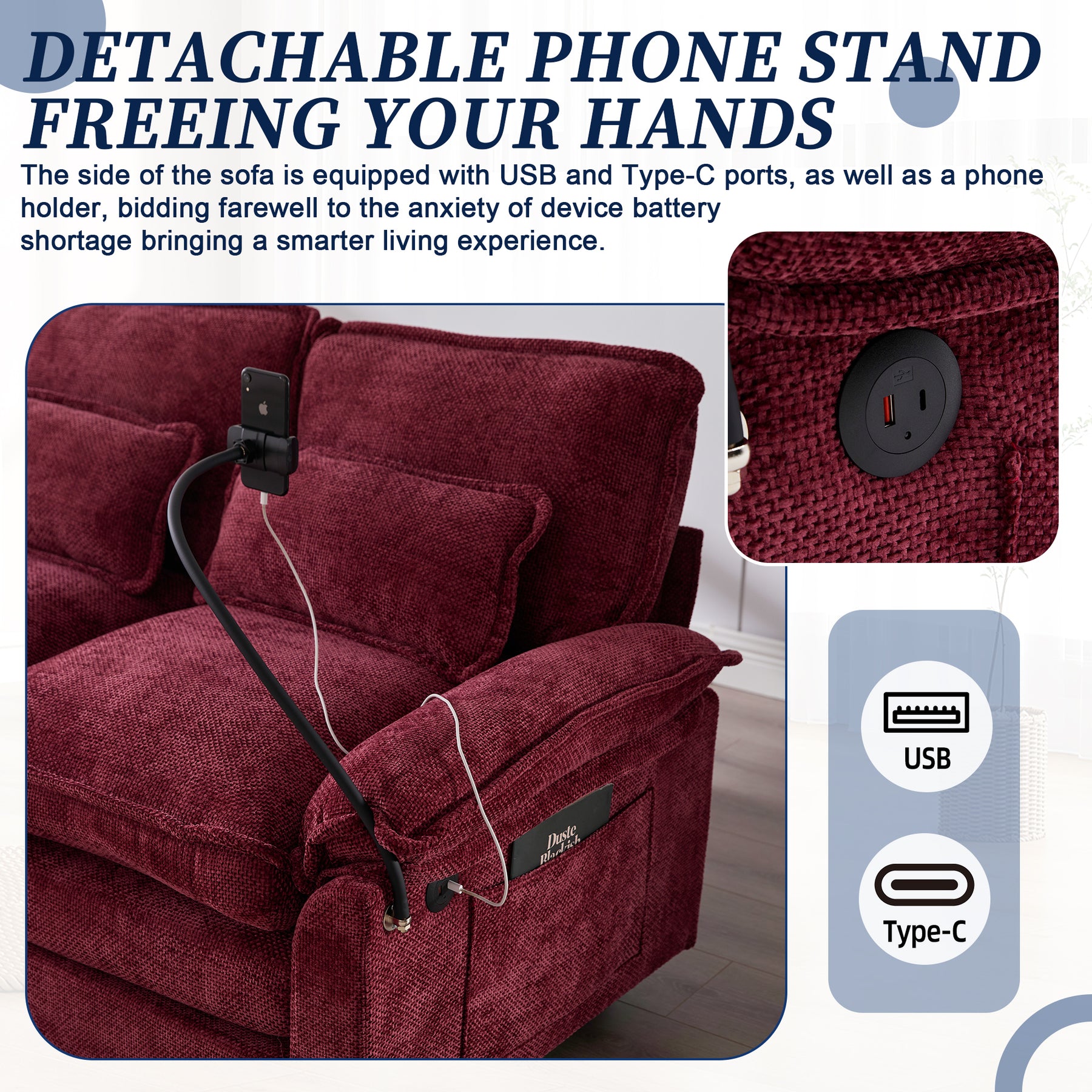 • 【Made for Convenience】The sofa is equipped with a built-in charging interface: 1 USB+1 Type-C, and comes with a phone holder. This design enables convenient charging of devices while making mobile phones within reach, perfectly integrating functionality with modern convenience and bringing a smarter living experience.