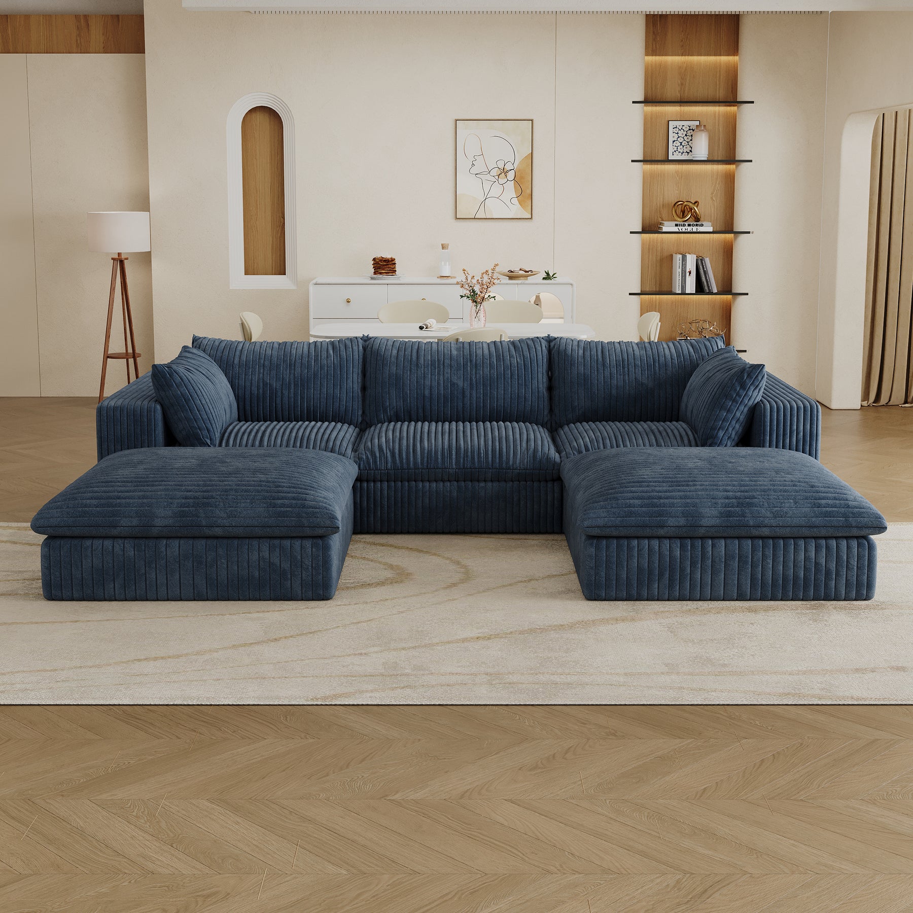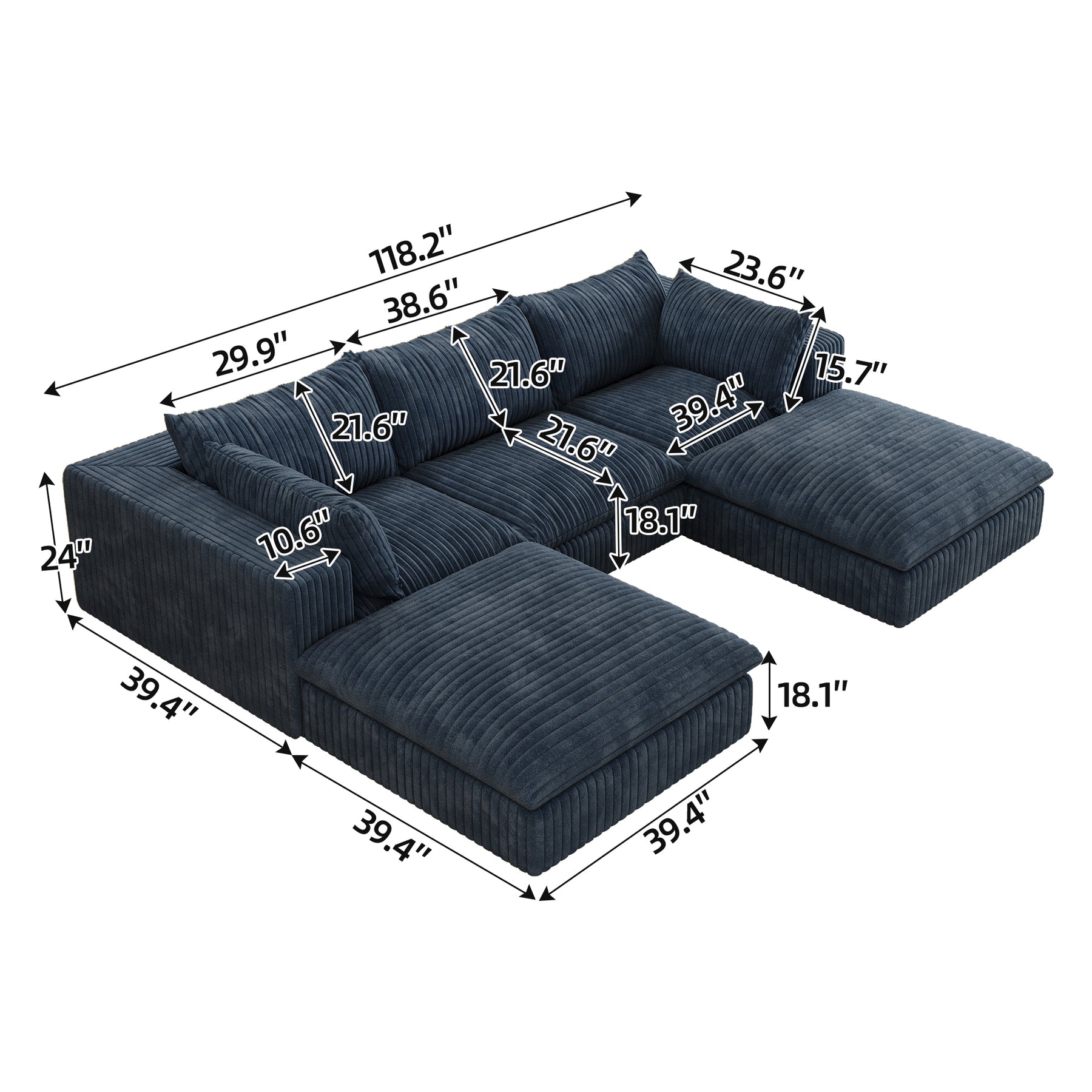 118.2' Cloud Sofa,Corduroy Fabric,Deep Seat Couches,Double-layer design,Removable Cushion,No Assembly, DIY Combination for Living room, Bedroom,Conference room ,Apartment,Blue