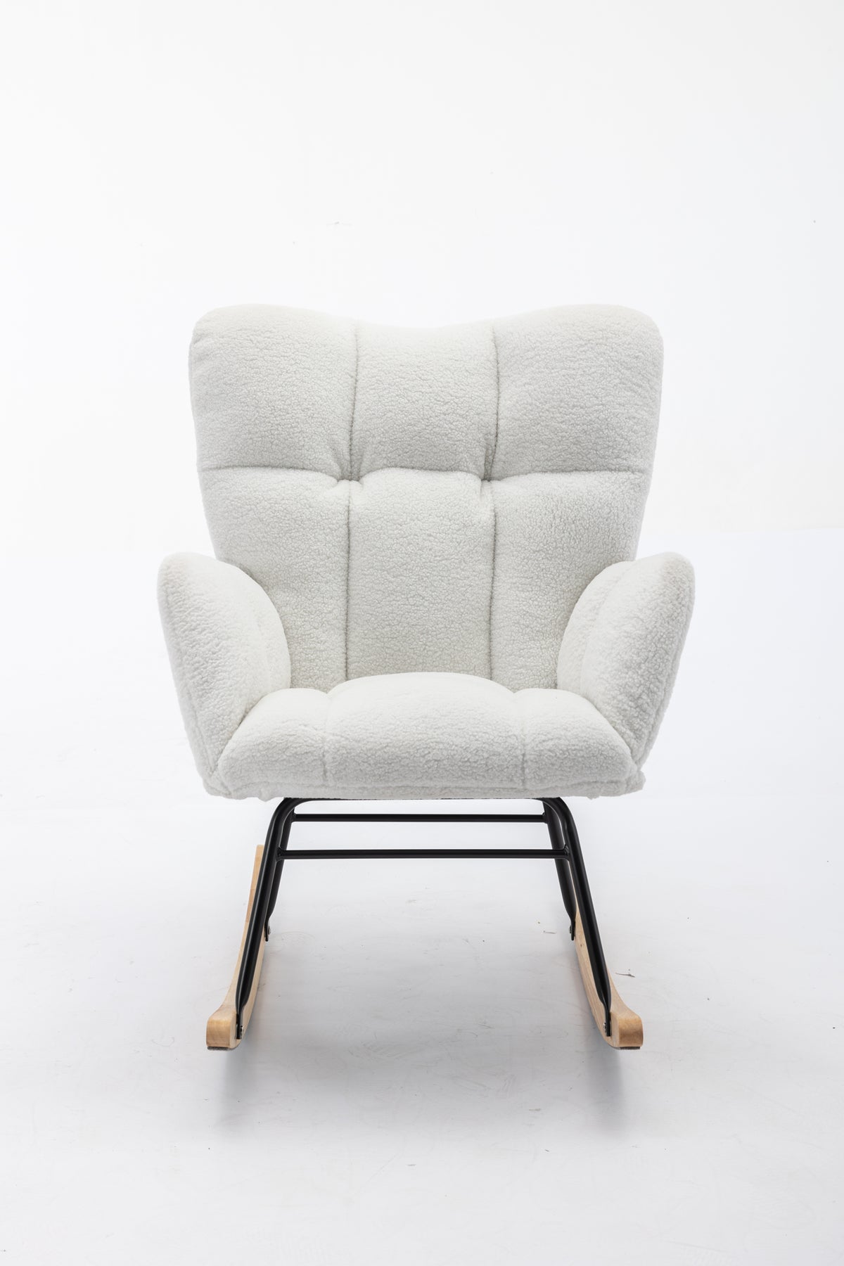 050-Teddy Fabric Rocking Gilder Nursery Chair For Living Room Indoor,Ivory