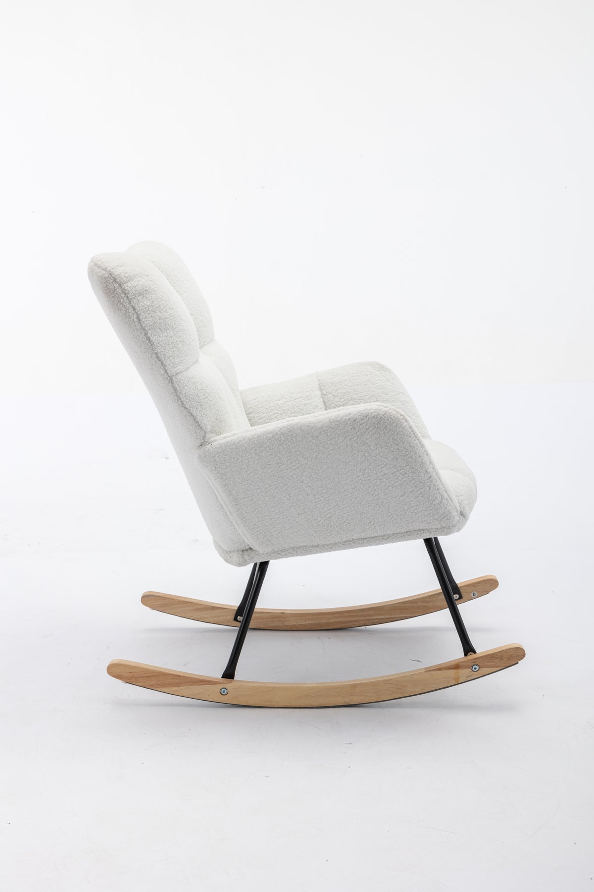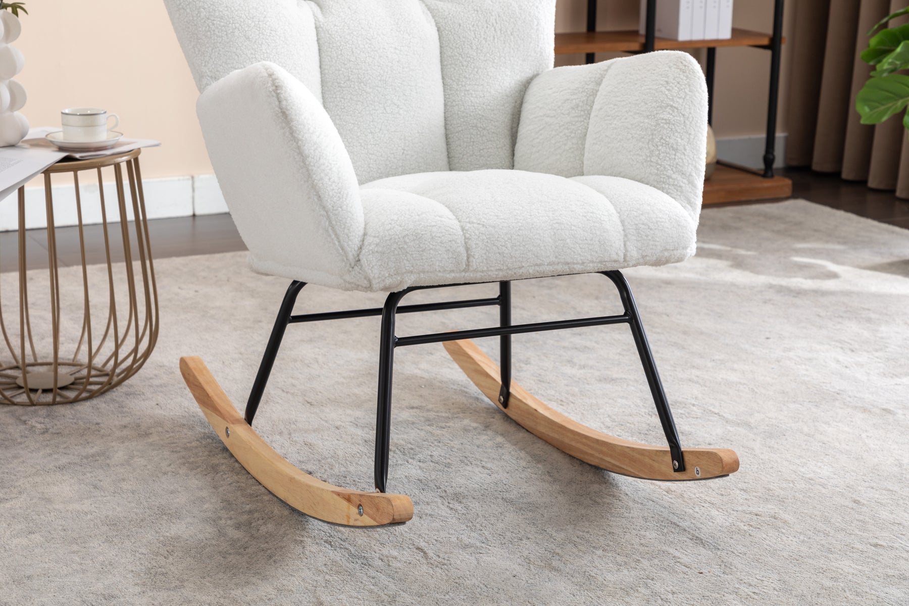 • Product BOM:Soft Teddy Material+Foam Filling+Wooden Frame+Black Paint Metal Base+Wooden Rocking Legs+Upholstered+Floor Protection And Isolation Layer;
