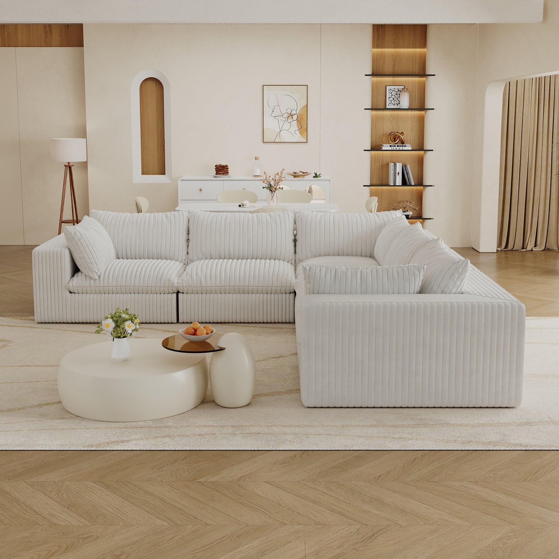 118.2' Cloud Sofa,Corduroy Fabric,Deep Seat Couches,Double-layer design,Removable Cushion,No Assembly, DIY Combination for Living room, Bedroom,Conference room ,Apartment,WHITE