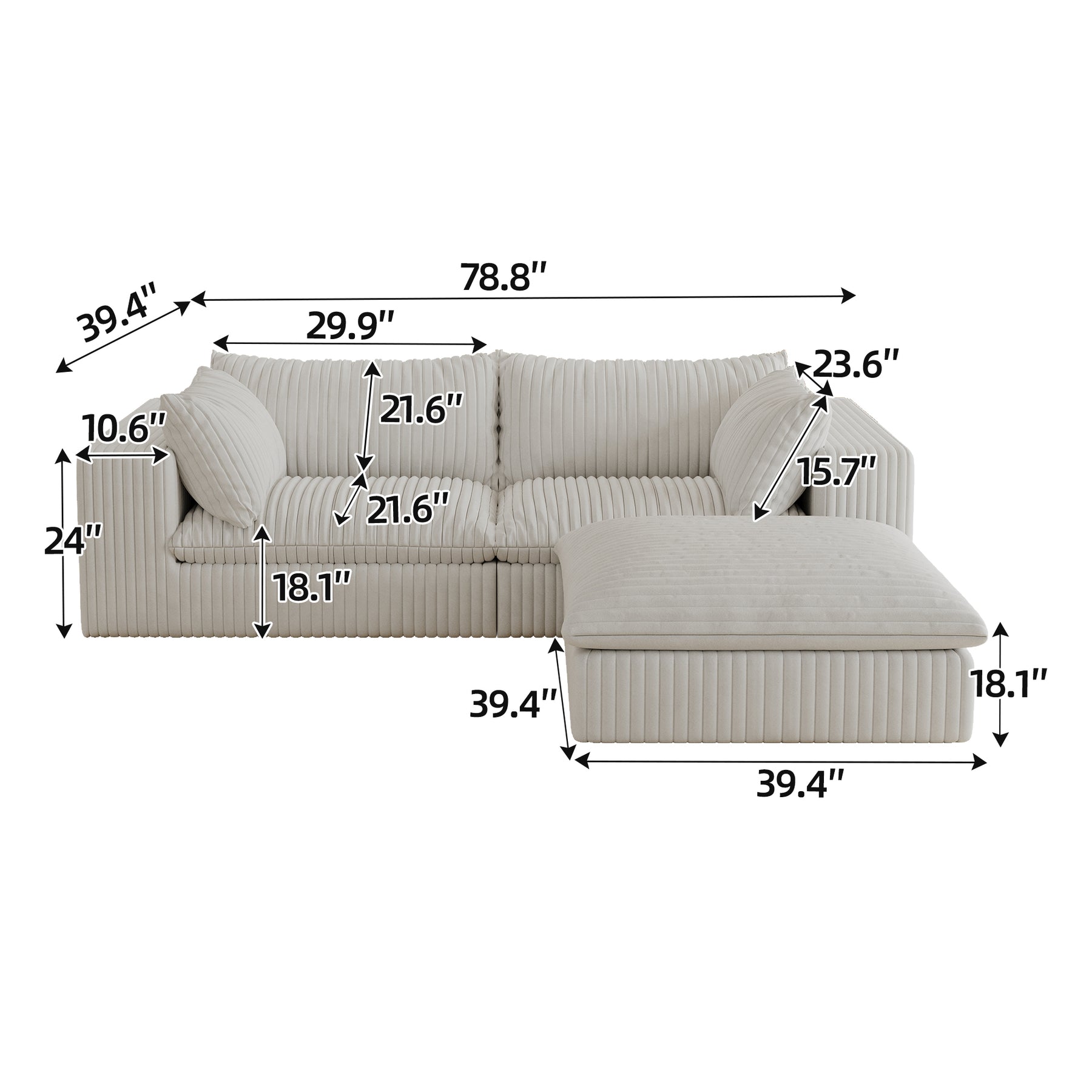 39.8' Cloud Sofa,Corduroy Fabric,Deep Seat Couches,Double-layer design,Removable Cushion,No Assembly, DIY Combination for Living room, Bedroom,Conference room ,Apartment,White