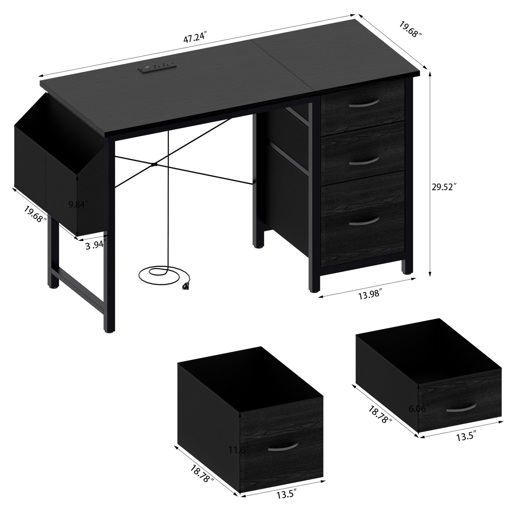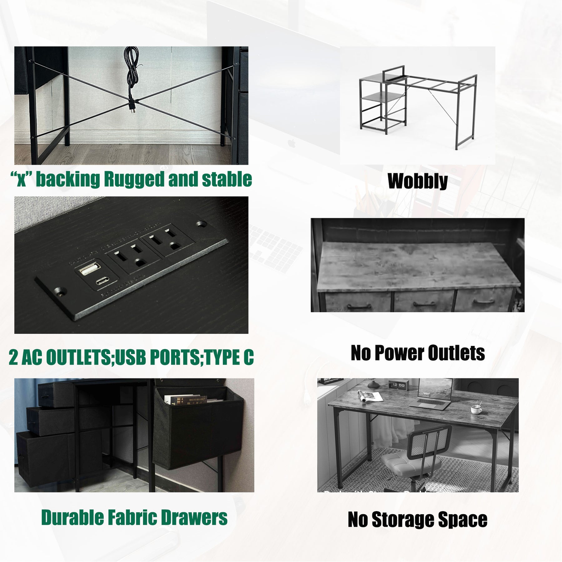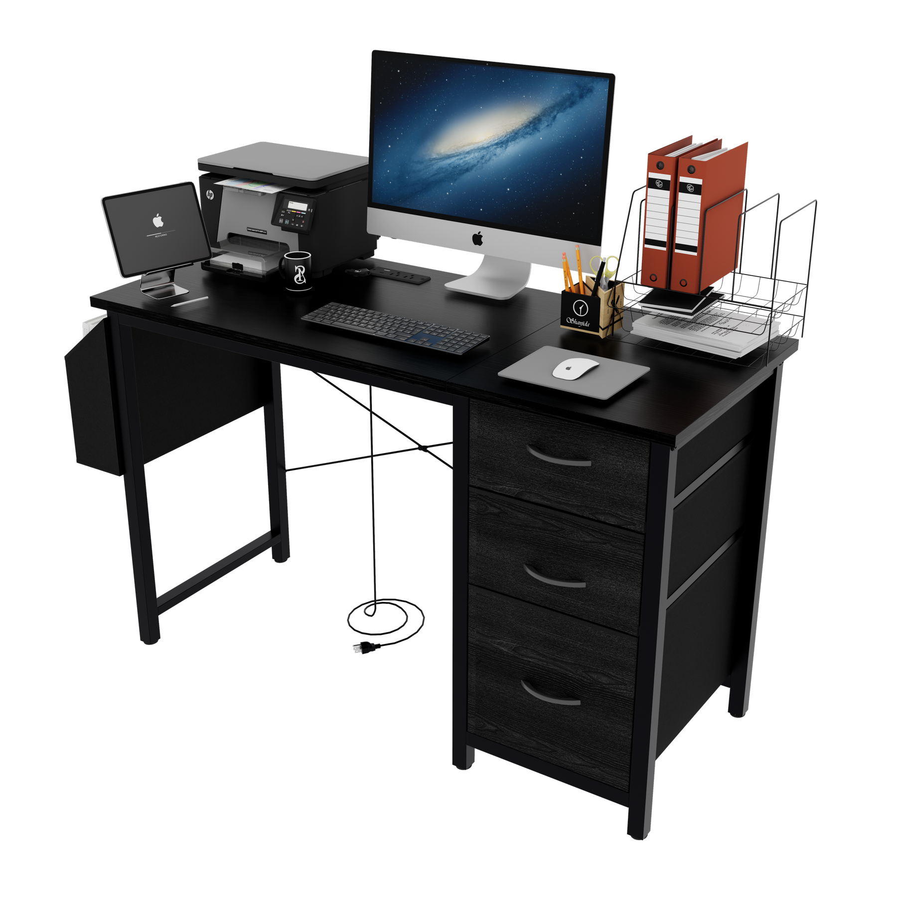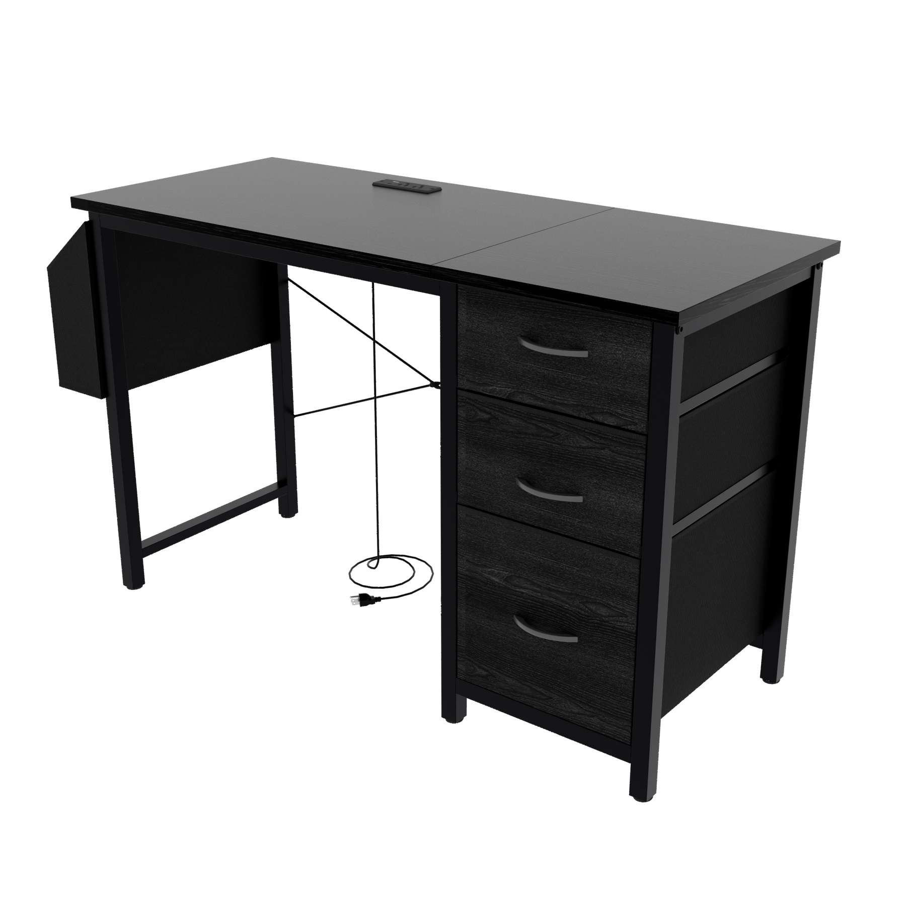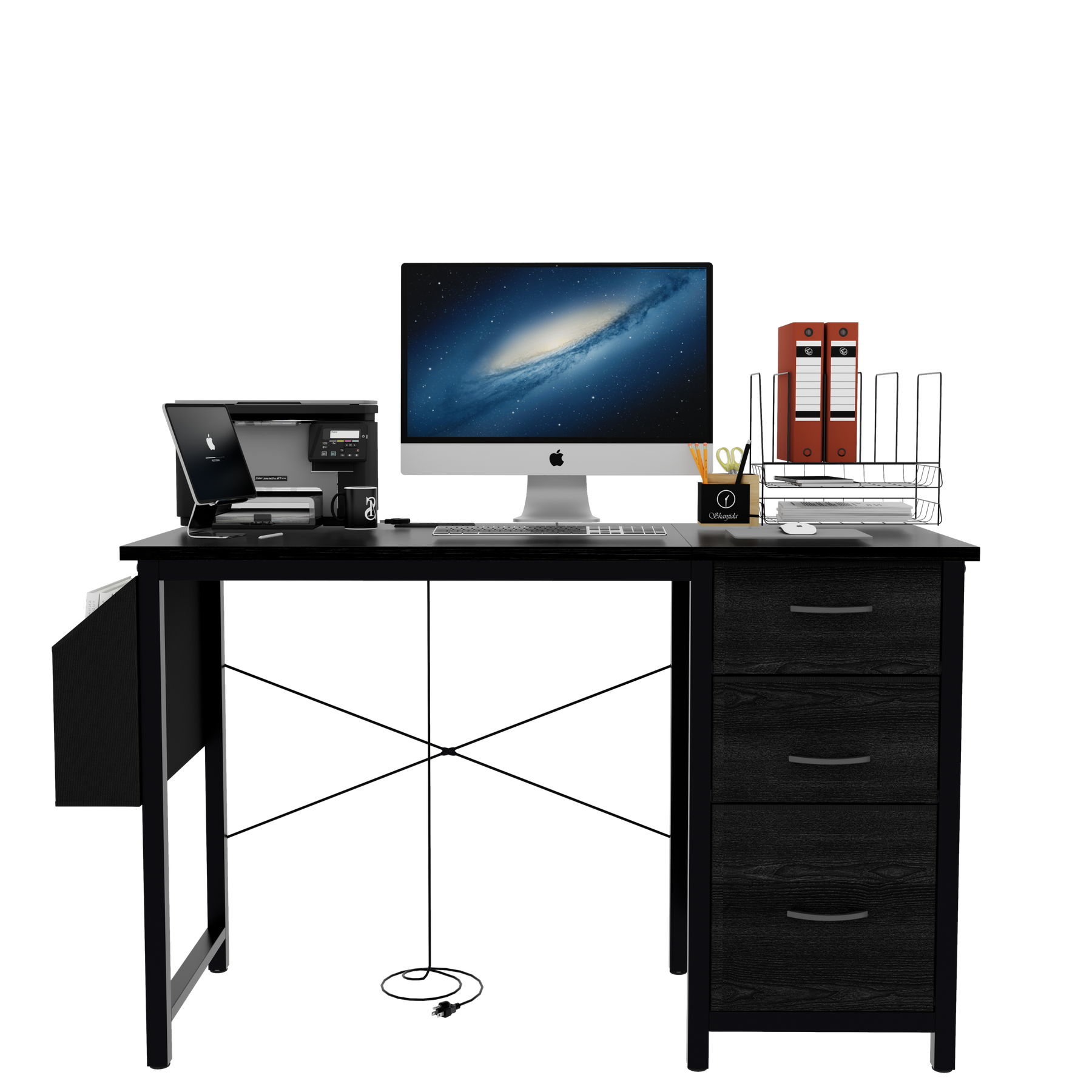 47.3'office desk with power outlet,3 drawers,Large Side Pocket, Desk Easy to Assemble,Frame stability Reversible, for home desk, computer desk, game table,Writing desk,Vanity table, black