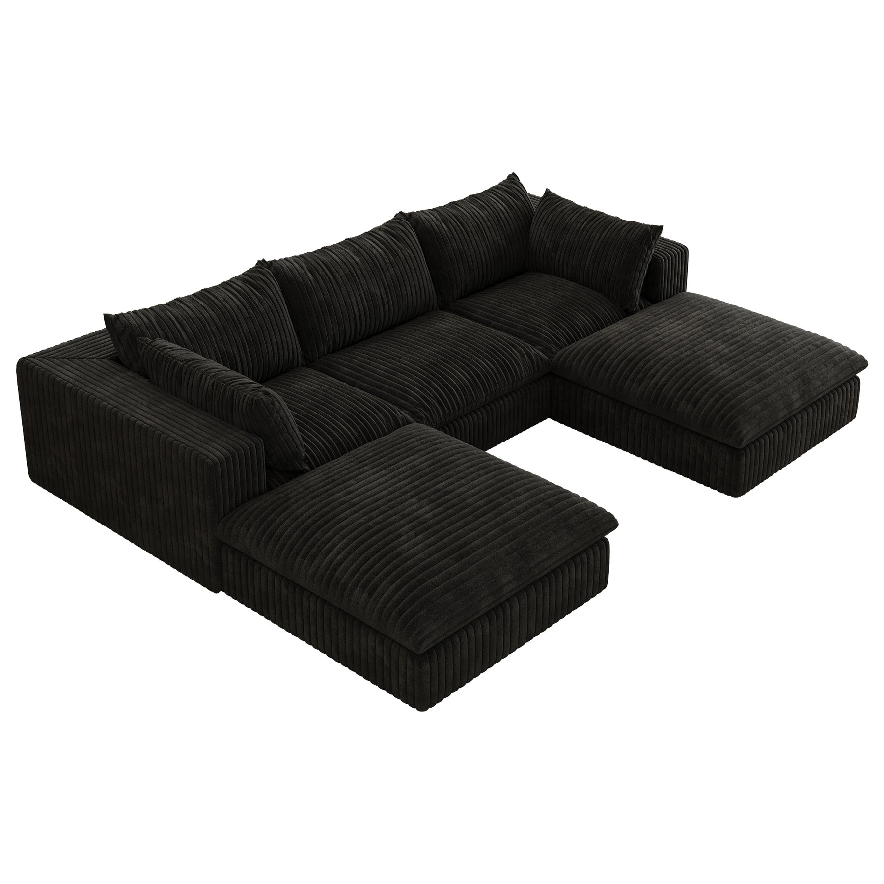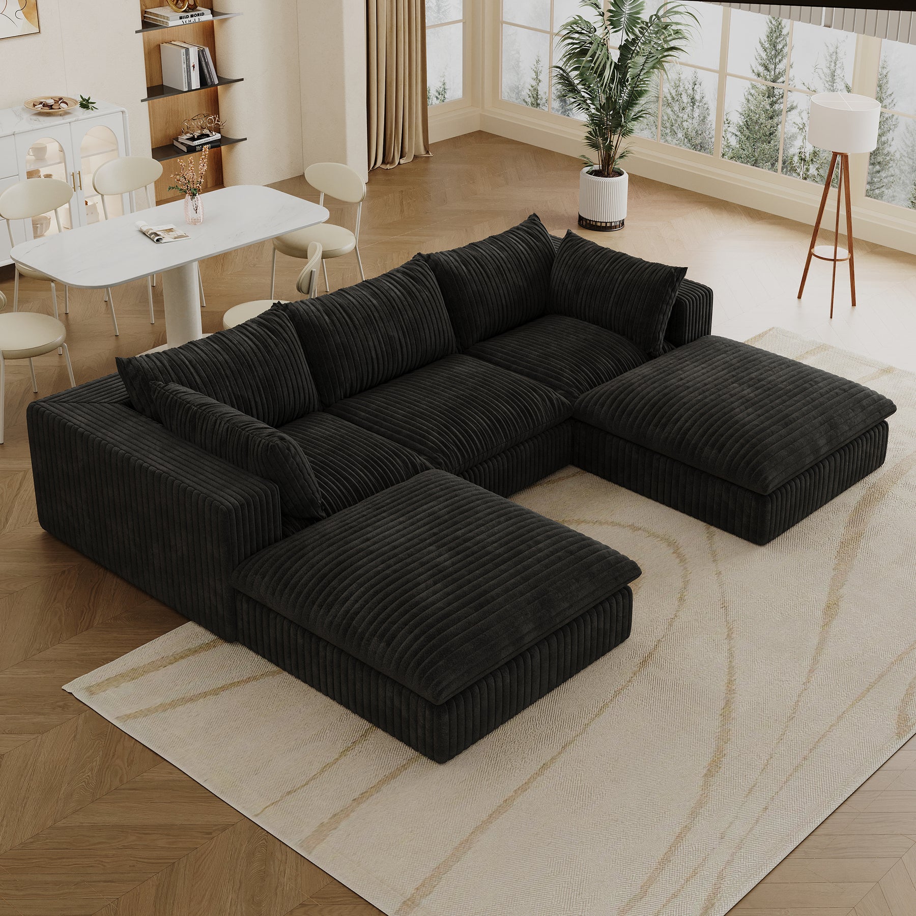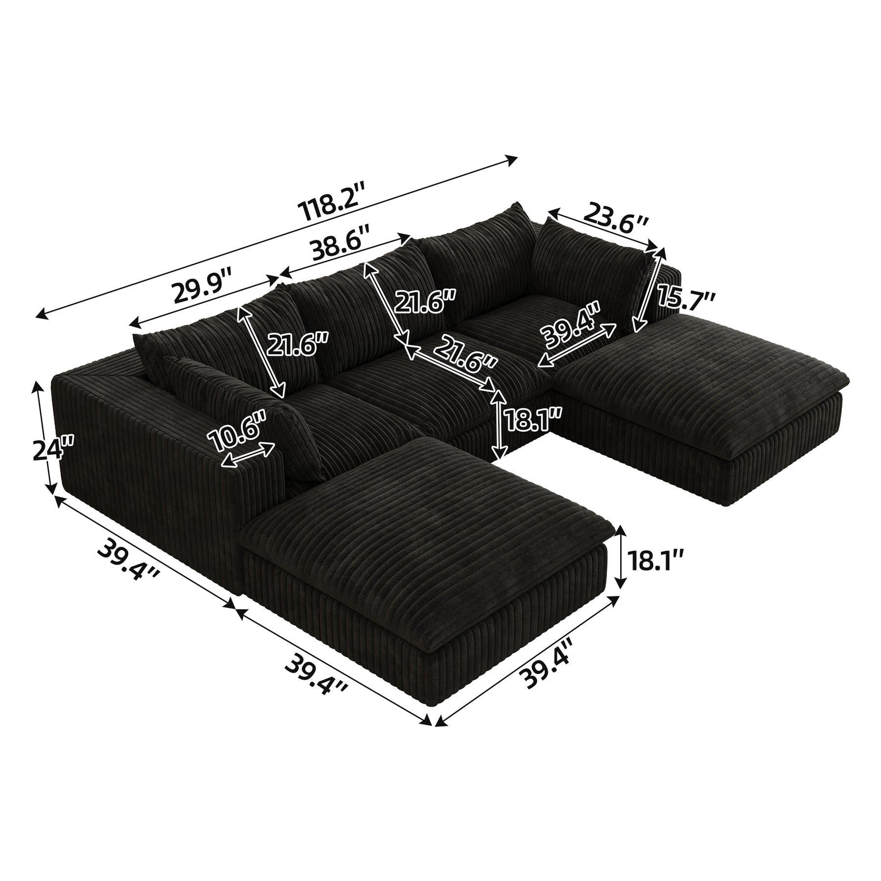 118.2' Cloud Sofa,Corduroy Fabric,Deep Seat Couches,Double-layer design,Removable Cushion,No Assembly, DIY Combination for Living room, Bedroom,Conference room ,Apartment,Black