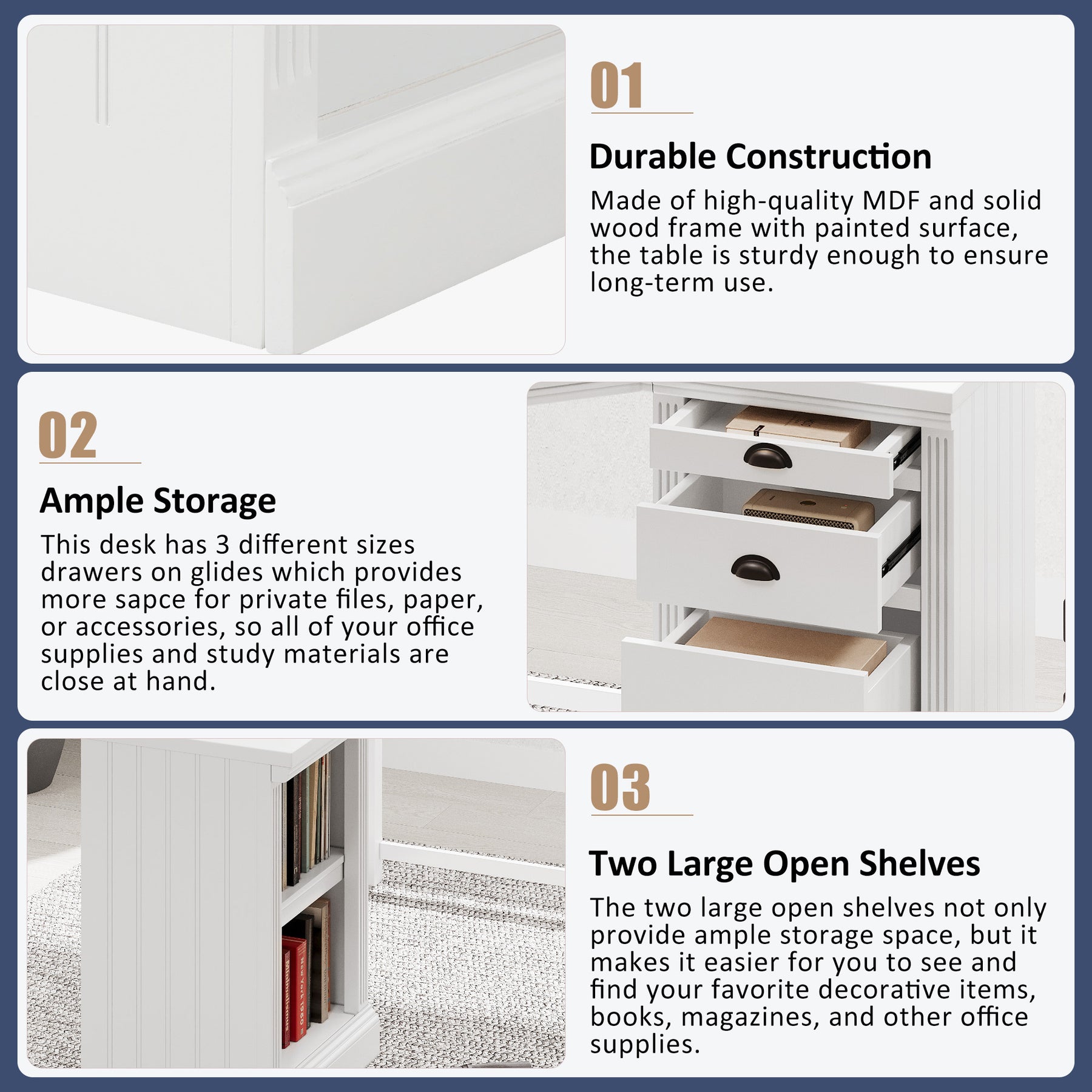 • This desk has 3 different sizes drawers which provides more space for private files,papers,or accessories,so all of your office supplies and study materials are close at hand.