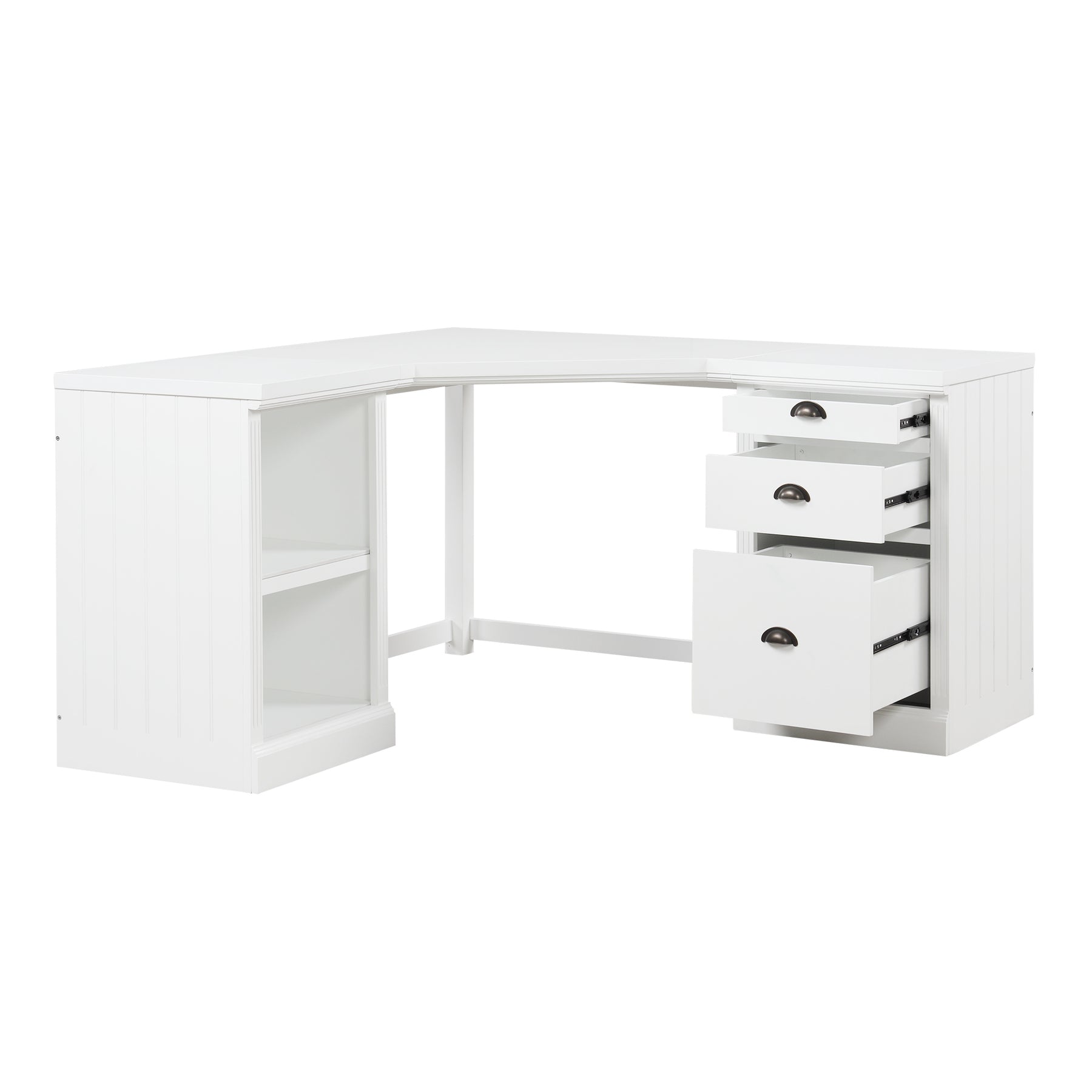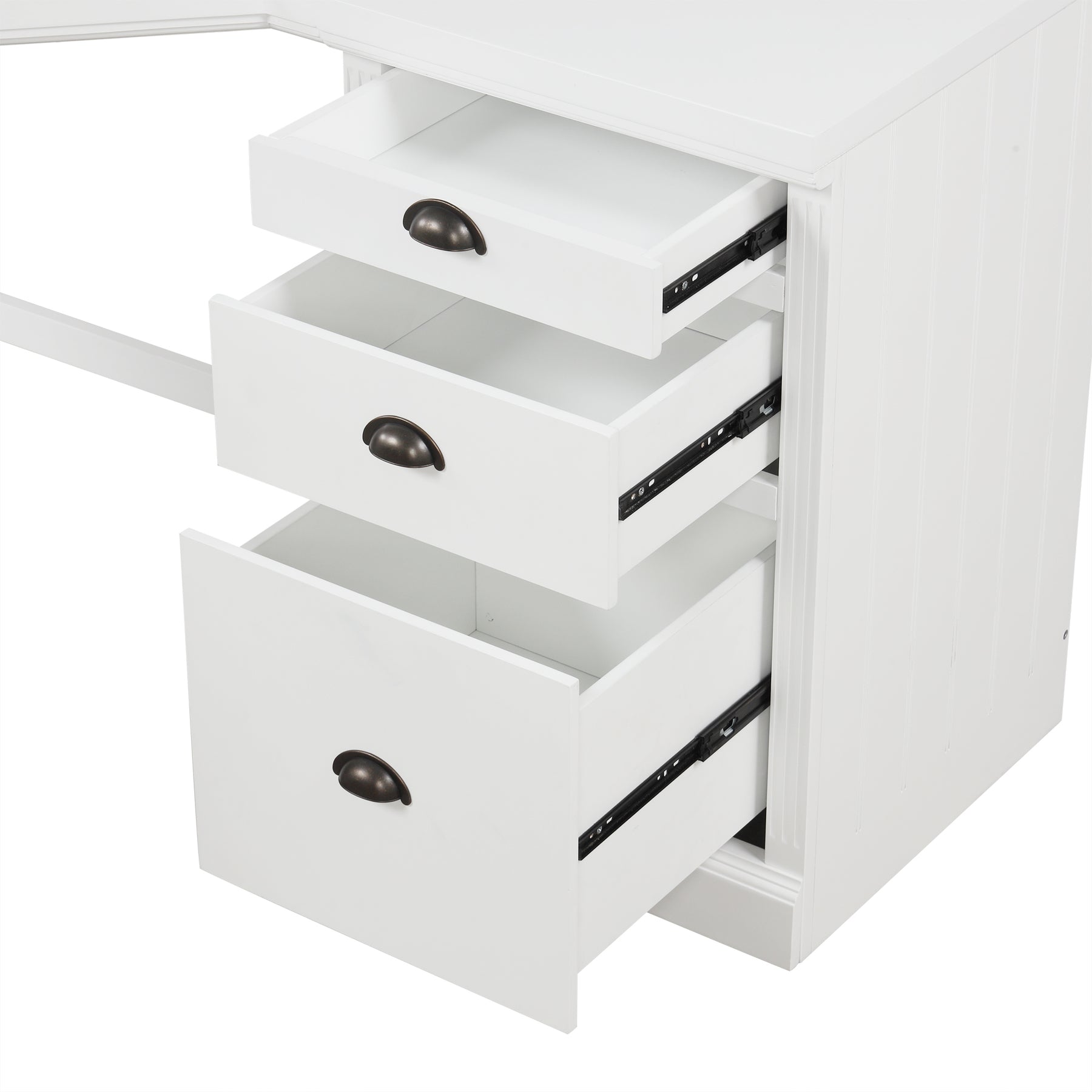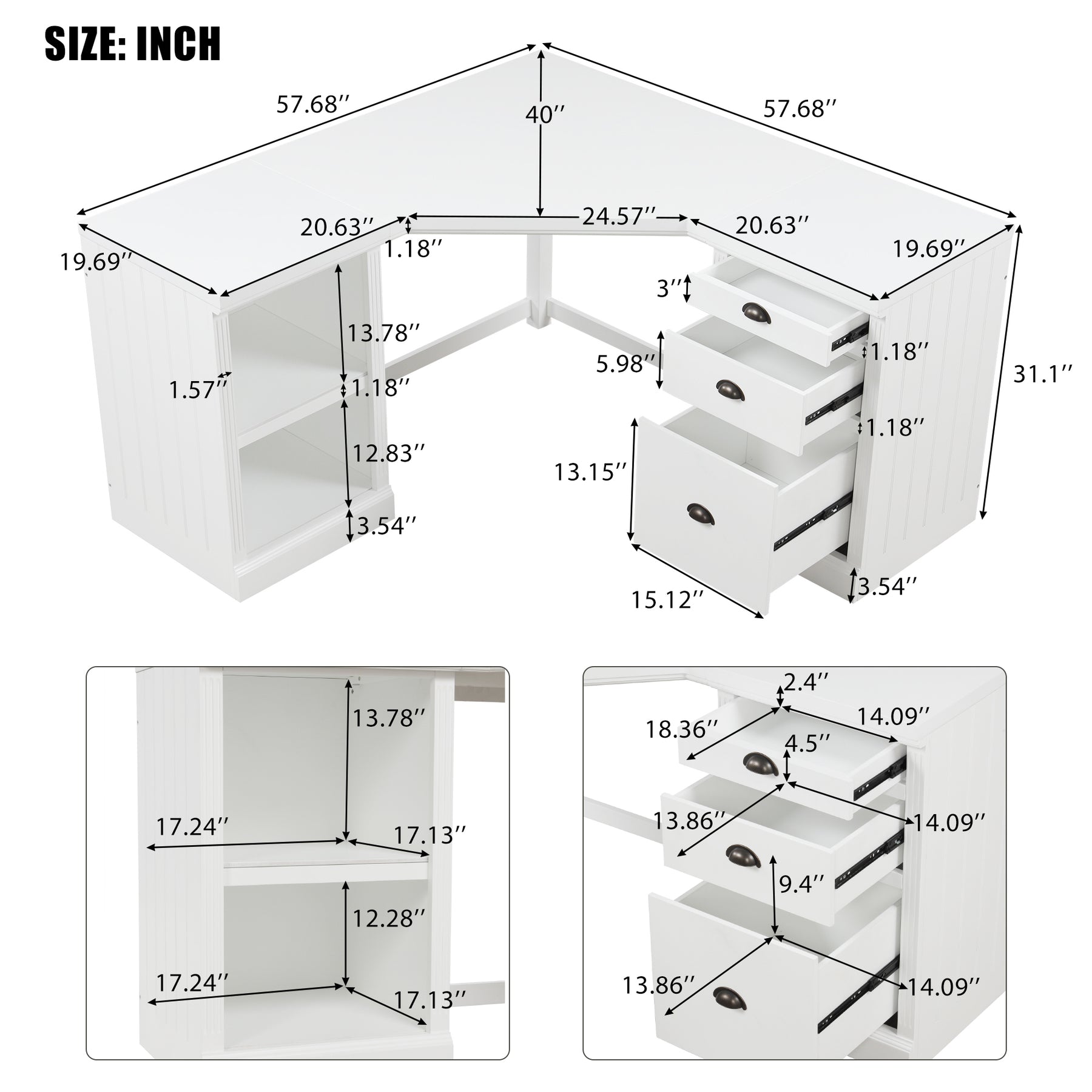 57.68' Modern L Shaped Executive Desk with 2 Storage Cabinets and 3 Drawers,Corner Writing Desk,Office Desk Furniture,Computer Desks with Depth Workstation for Home Office,Living room,White