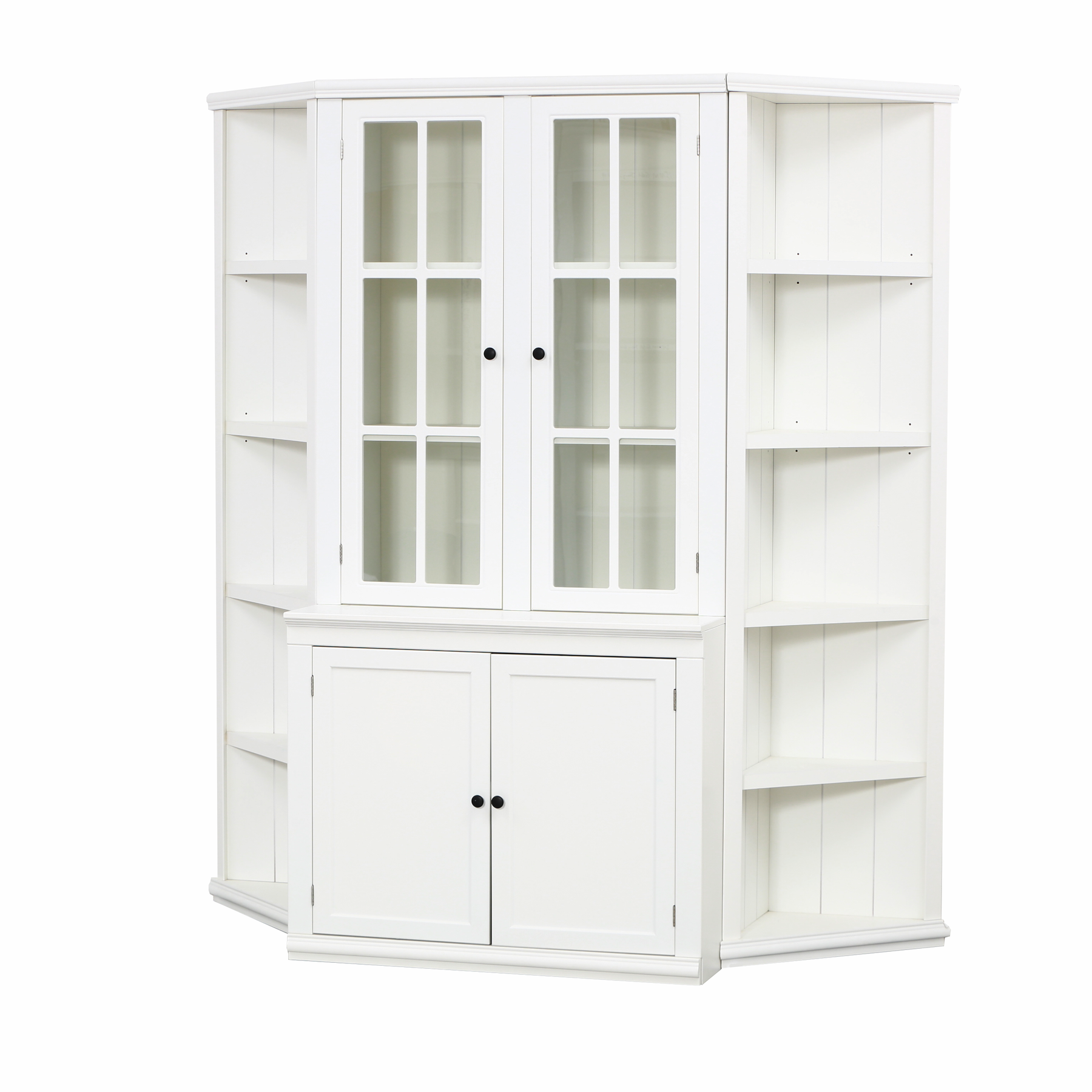 75.25'' Tall Display Cabinet and Two Triangle Sided Bookshelves, 69.25'' Wide Retro Style Wall Suit with Glass Doors, for Hallways, Living room, Office, Studio or Workspace - White
