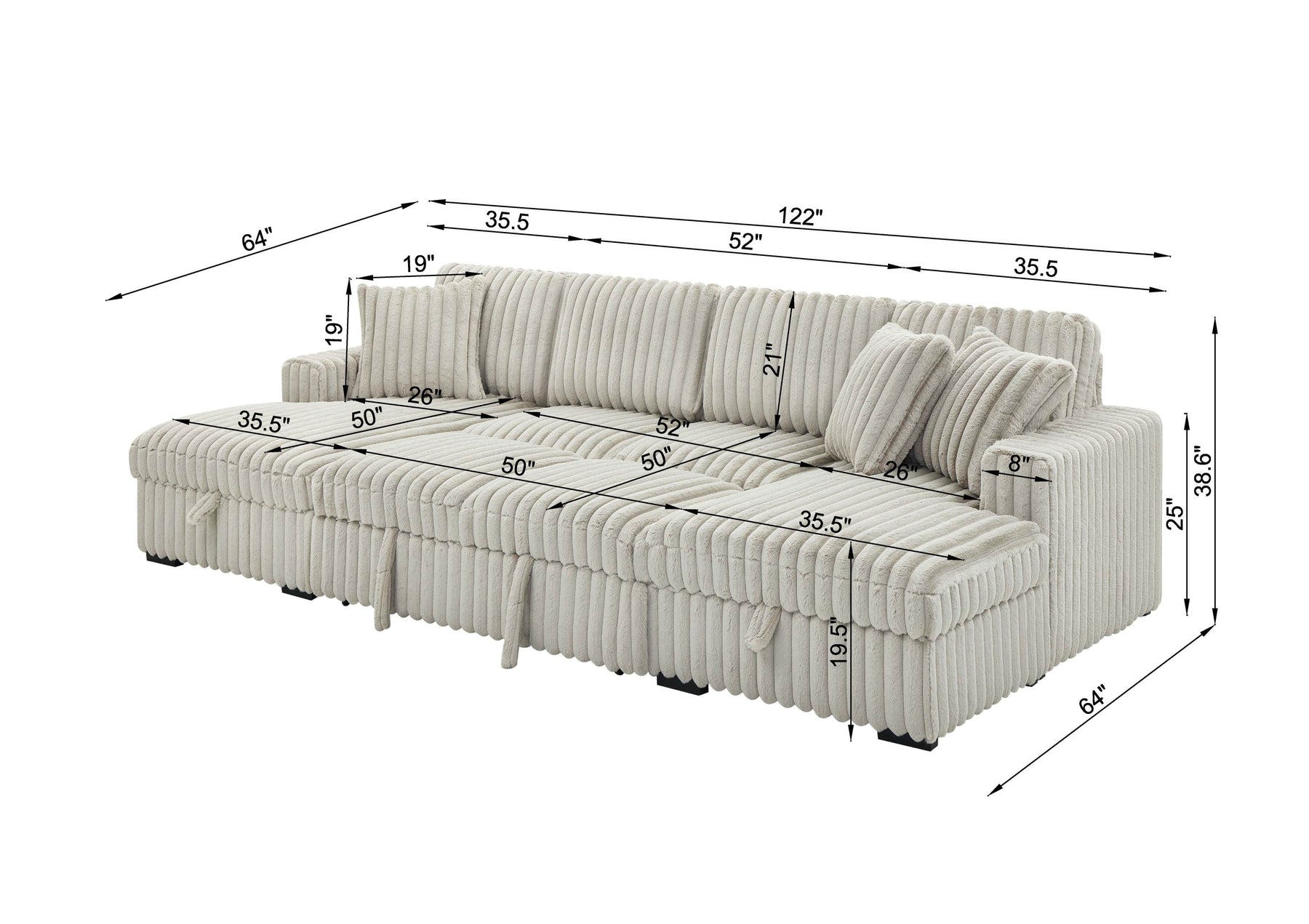 U Shaped Sleeper Sofa, 122 inch Overisze - 2 in 1 Pull Out Bed, Sectional Sleeper Sofa with Double Storage Chaise for Living Room, Rabbit plush Corduroy Fabric Couch, Khaki