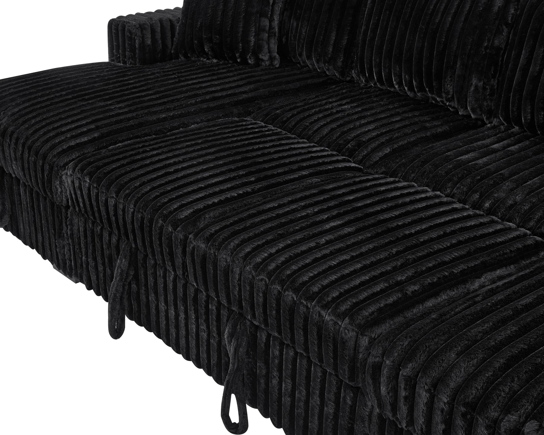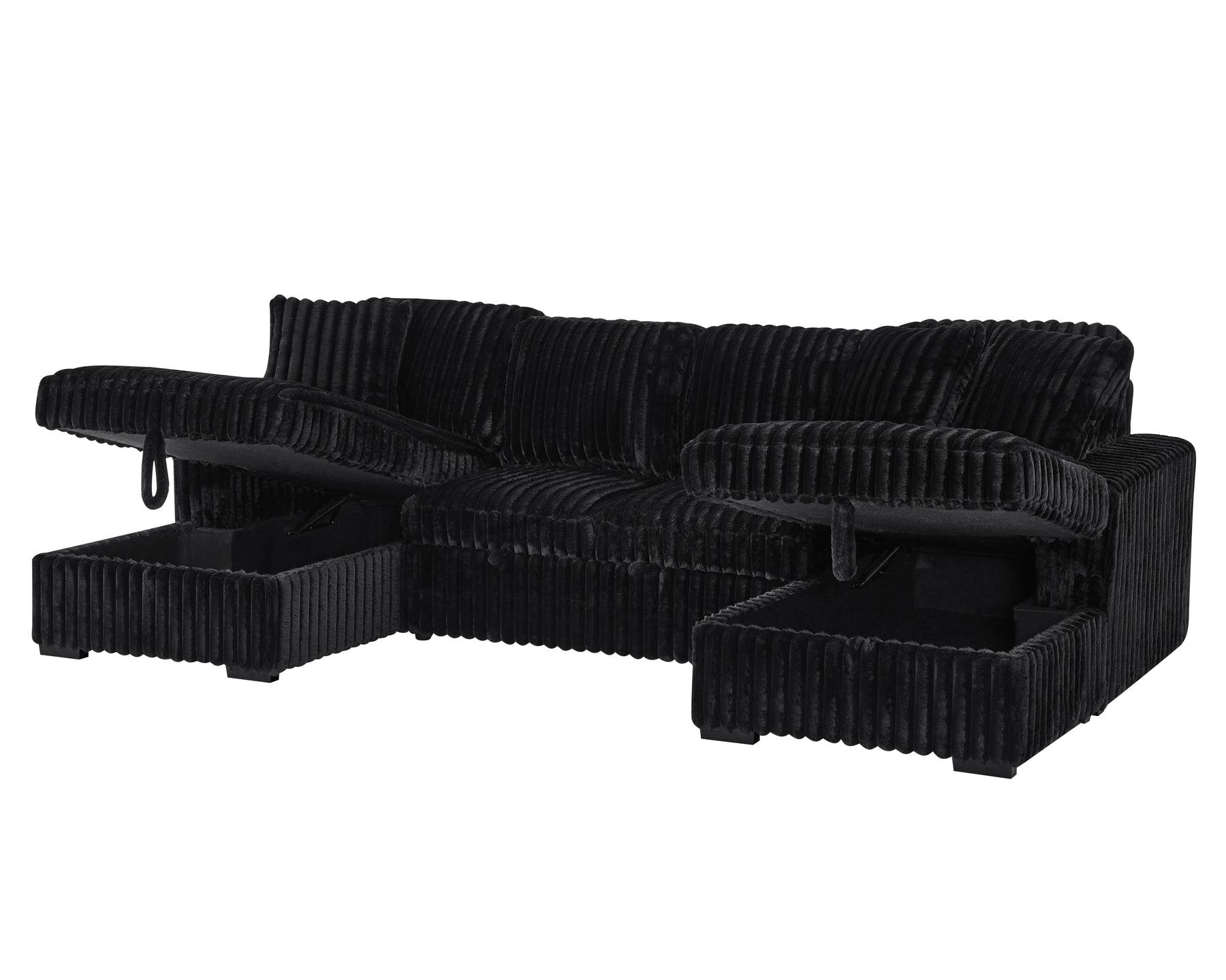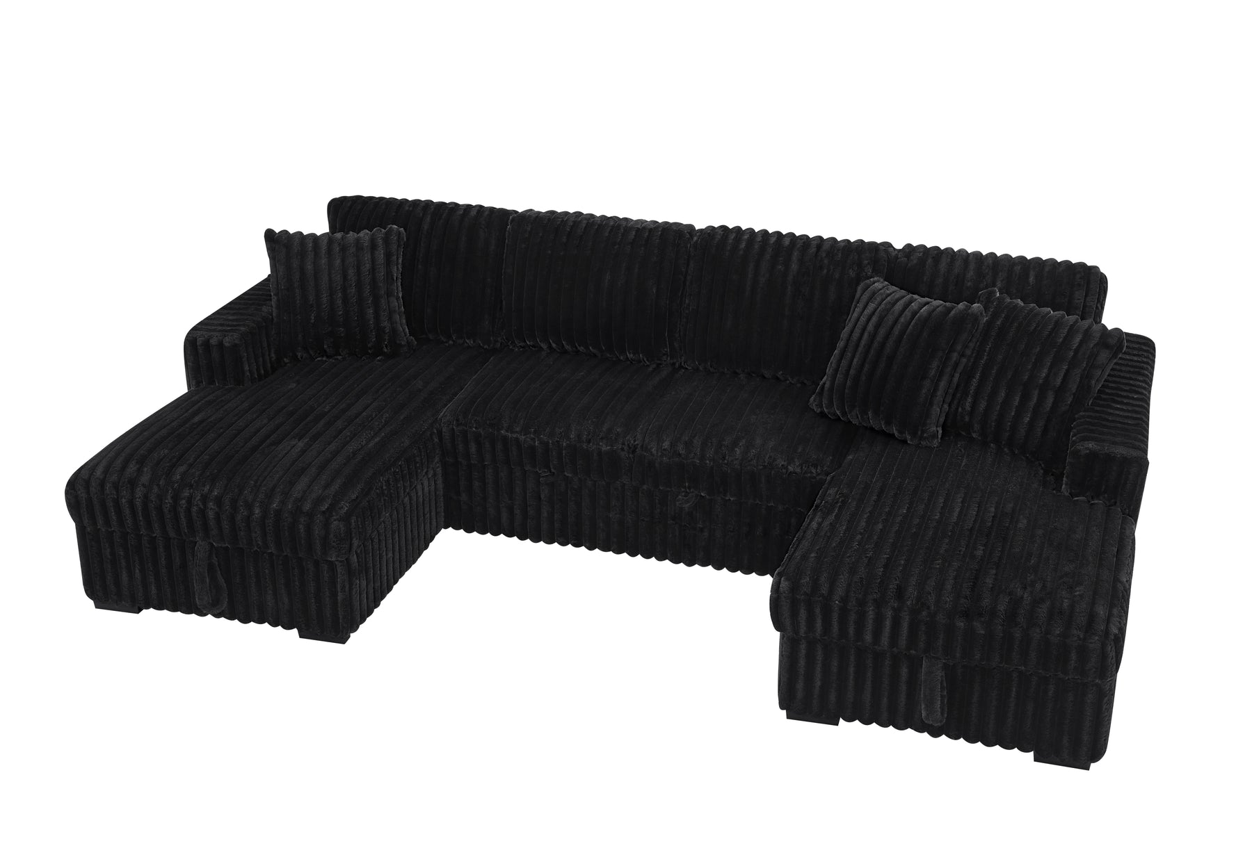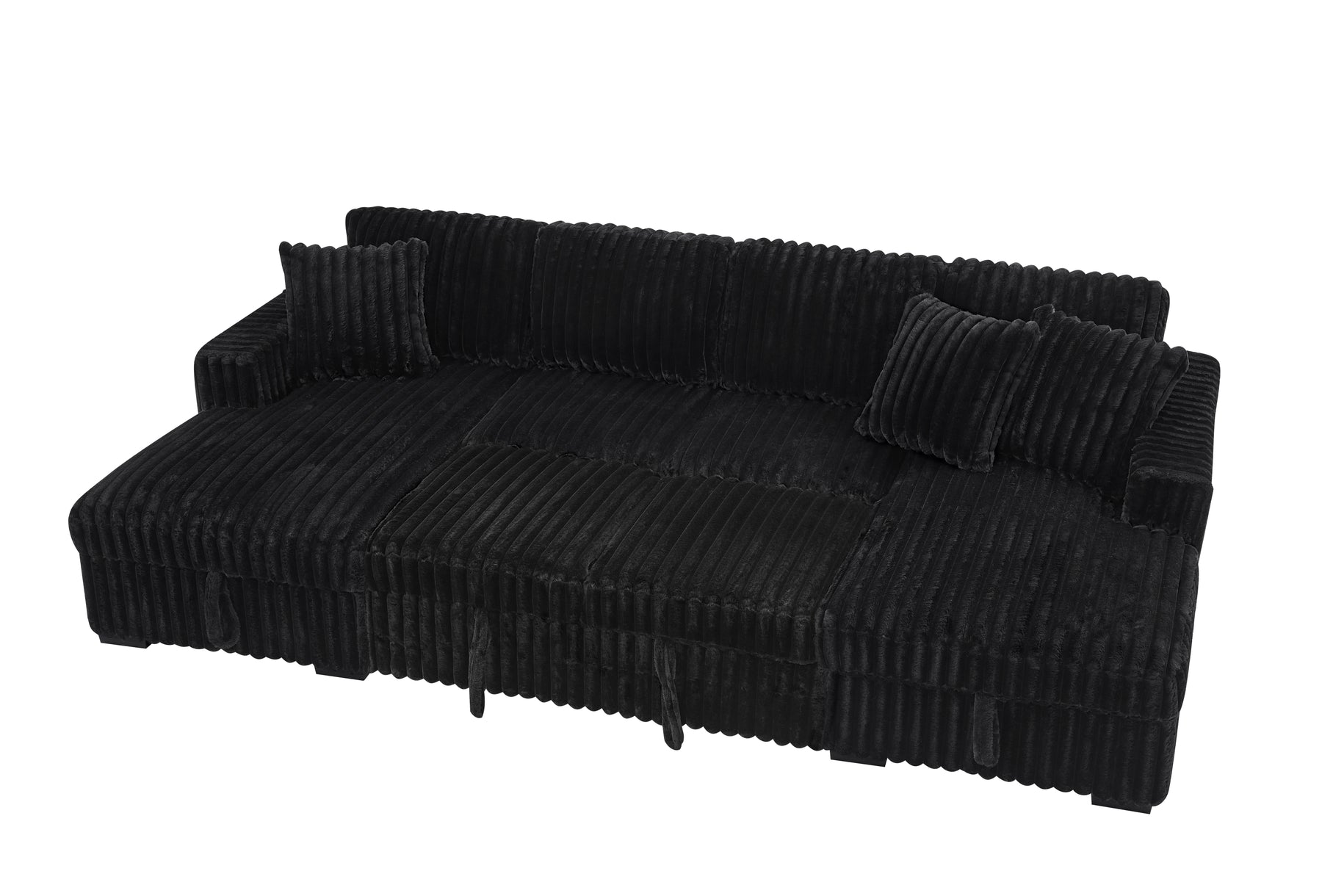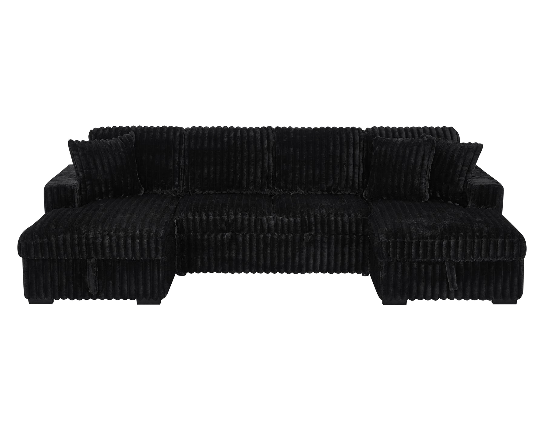 U Shaped Sleeper Sofa, 122 inch Overisze - 2 in 1 Pull Out Bed, Sectional Sleeper Sofa with Double Storage Chaise for Living Room, Rabbit plush Corduroy Fabric Couch, Black