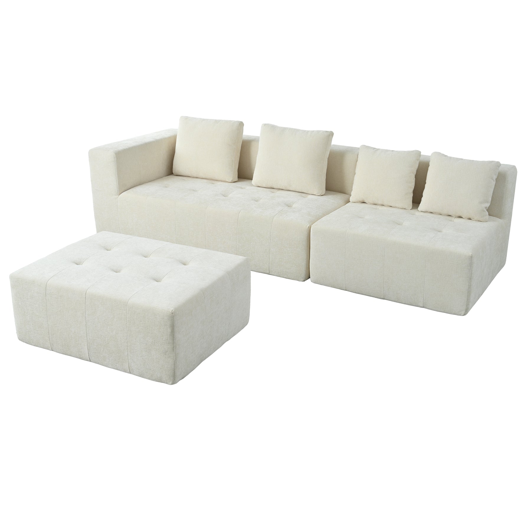 U_Style Modern Large Removable Modular Sofa, 3-Piece Set with Free Combination, Includes 4 Cushions, Ideal for Living Room, Bedroom, Apartment