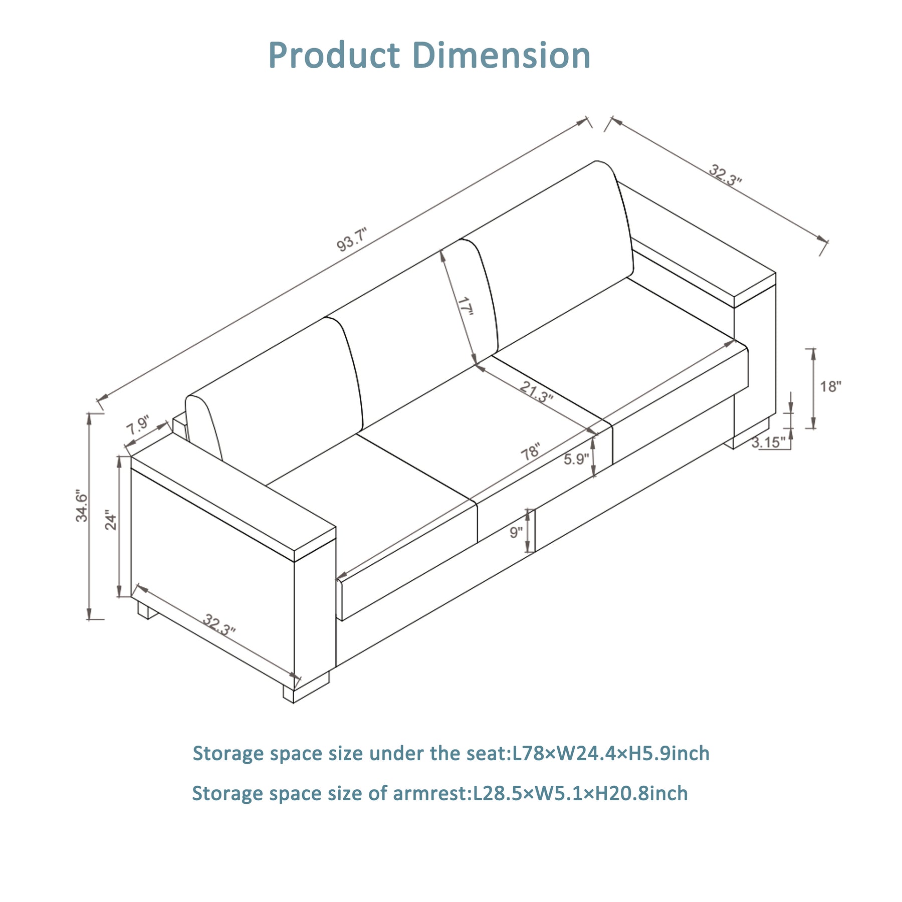• Multi function: The sofa's wide armrest design is equipped with a cup holder, and there is an additional storage space in the arm, which can store small items such as books and pillows. Under the seat cushion also has large storage space, making the sofa highly practical.