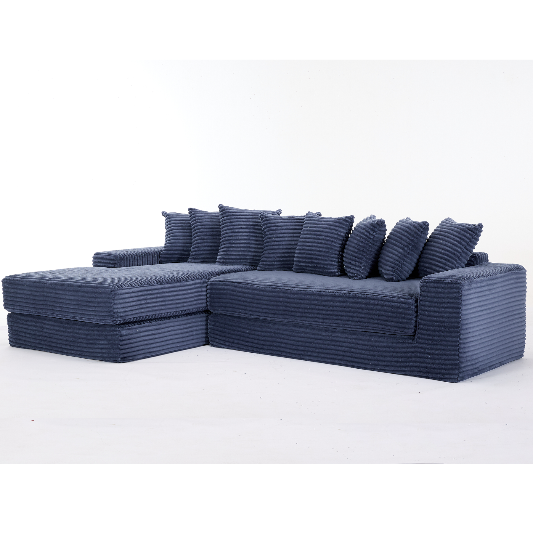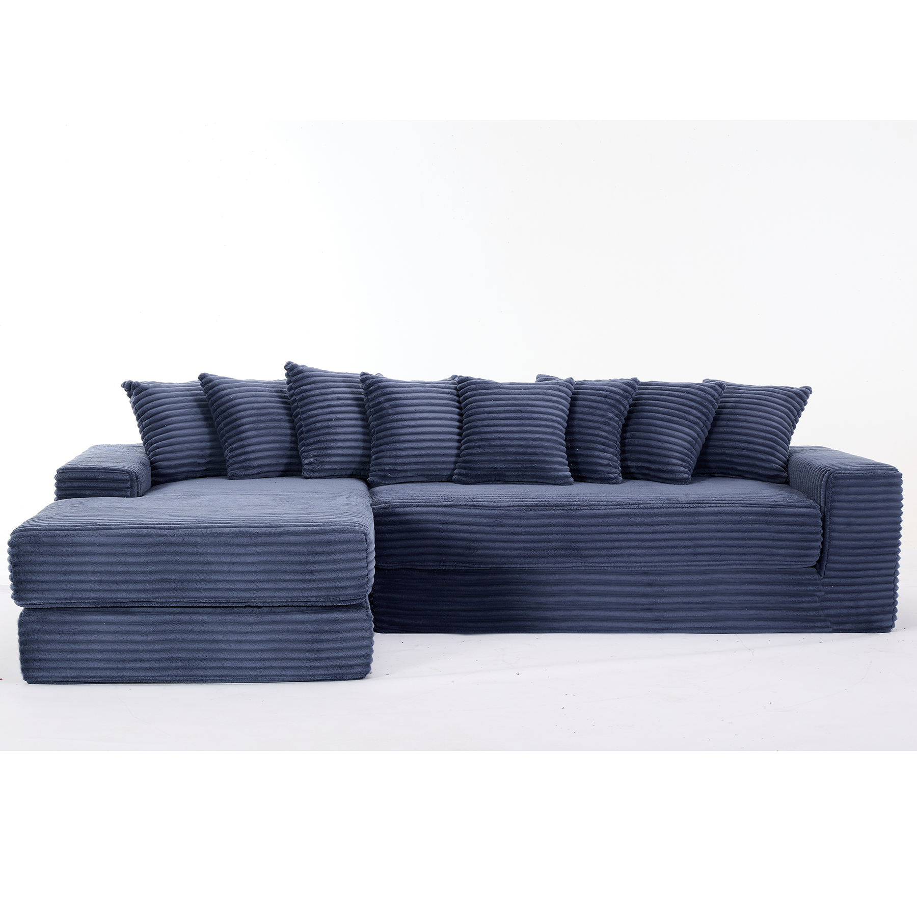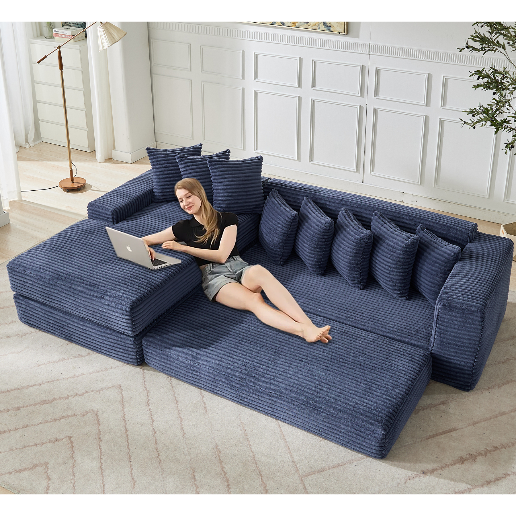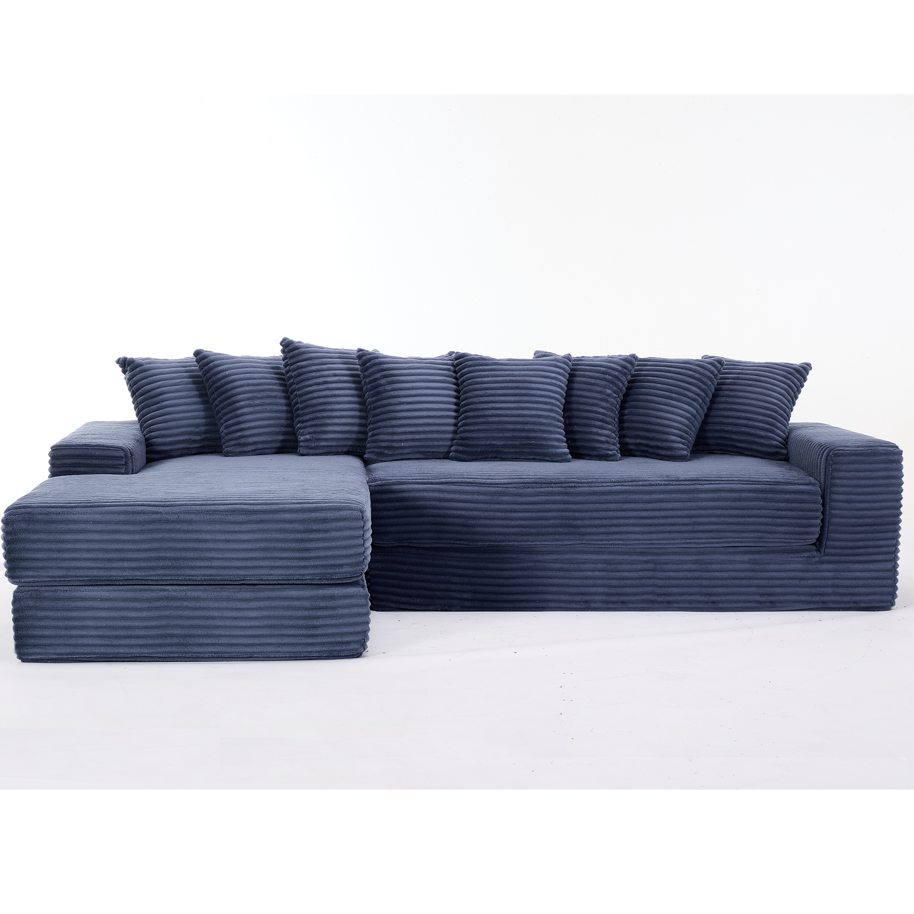[NEW ARRIVED] [VIDEO PROVIDED]   Oversize Cloud Couch, L-Shape Sofa, Convertible Floor Sleeper Sofa Bed,  No Assembly ,Eight  pillows,3-in-1,Side Pocket,(Left Facing Sofa),3 Seat,Corduroy,Blue