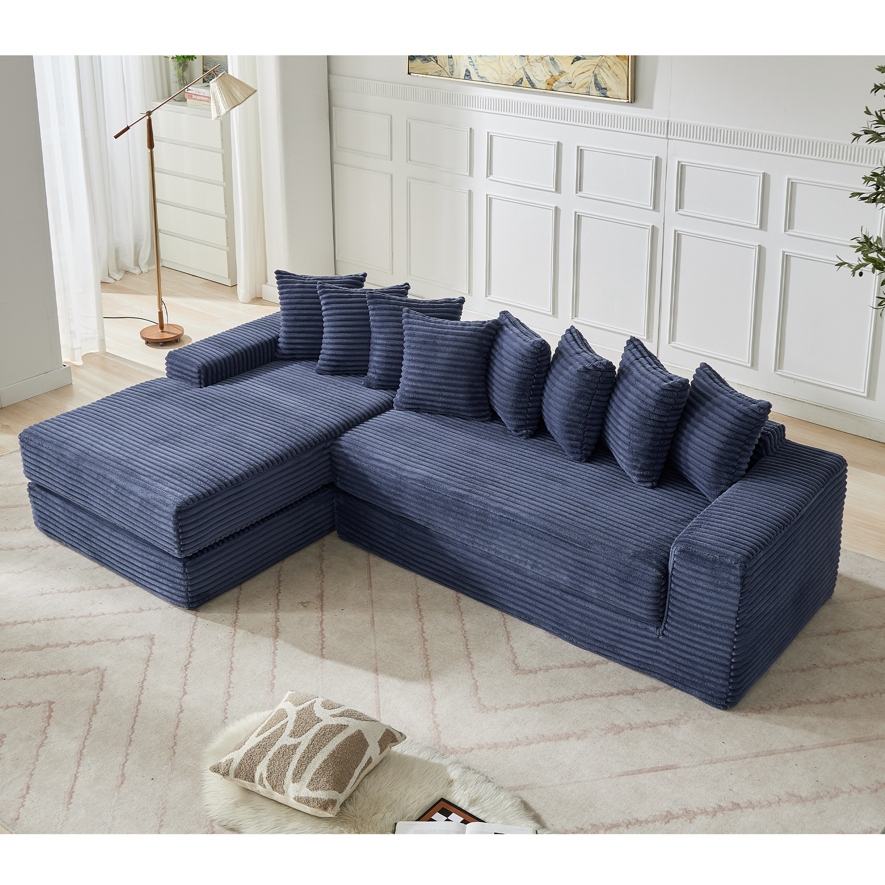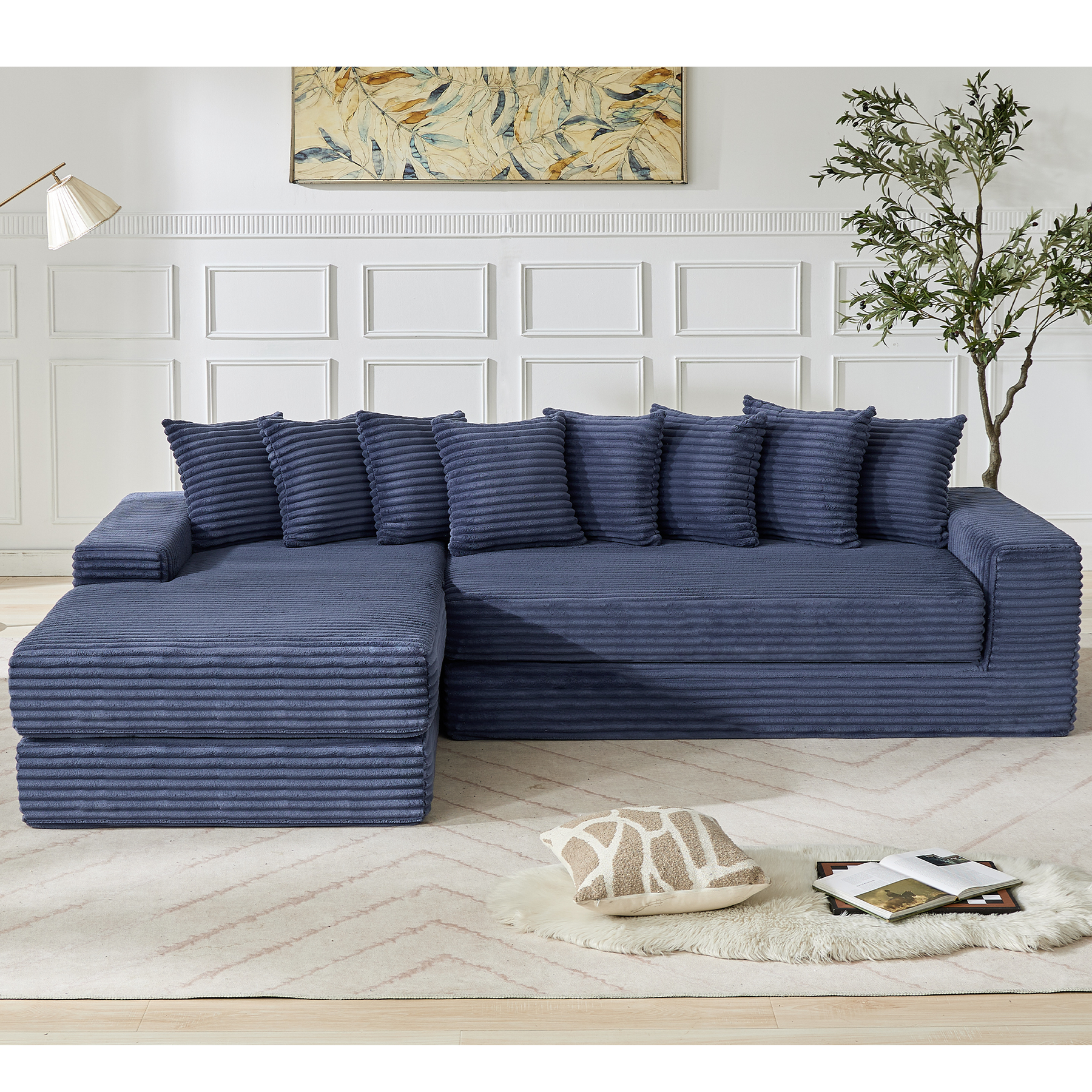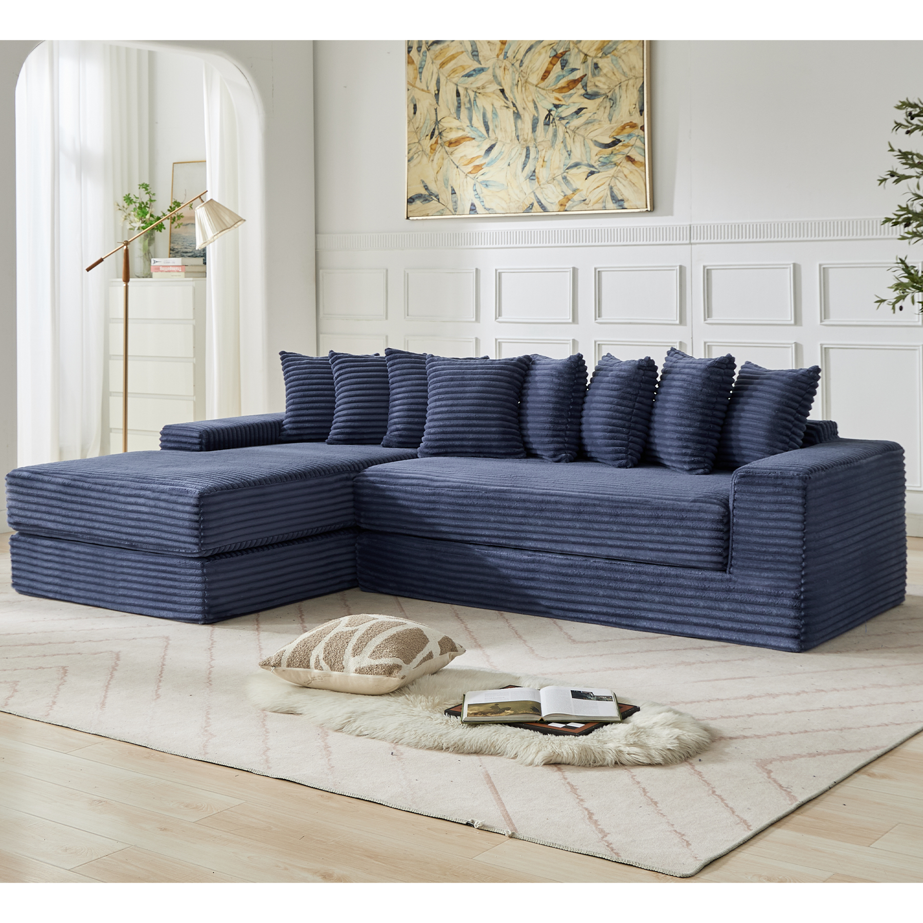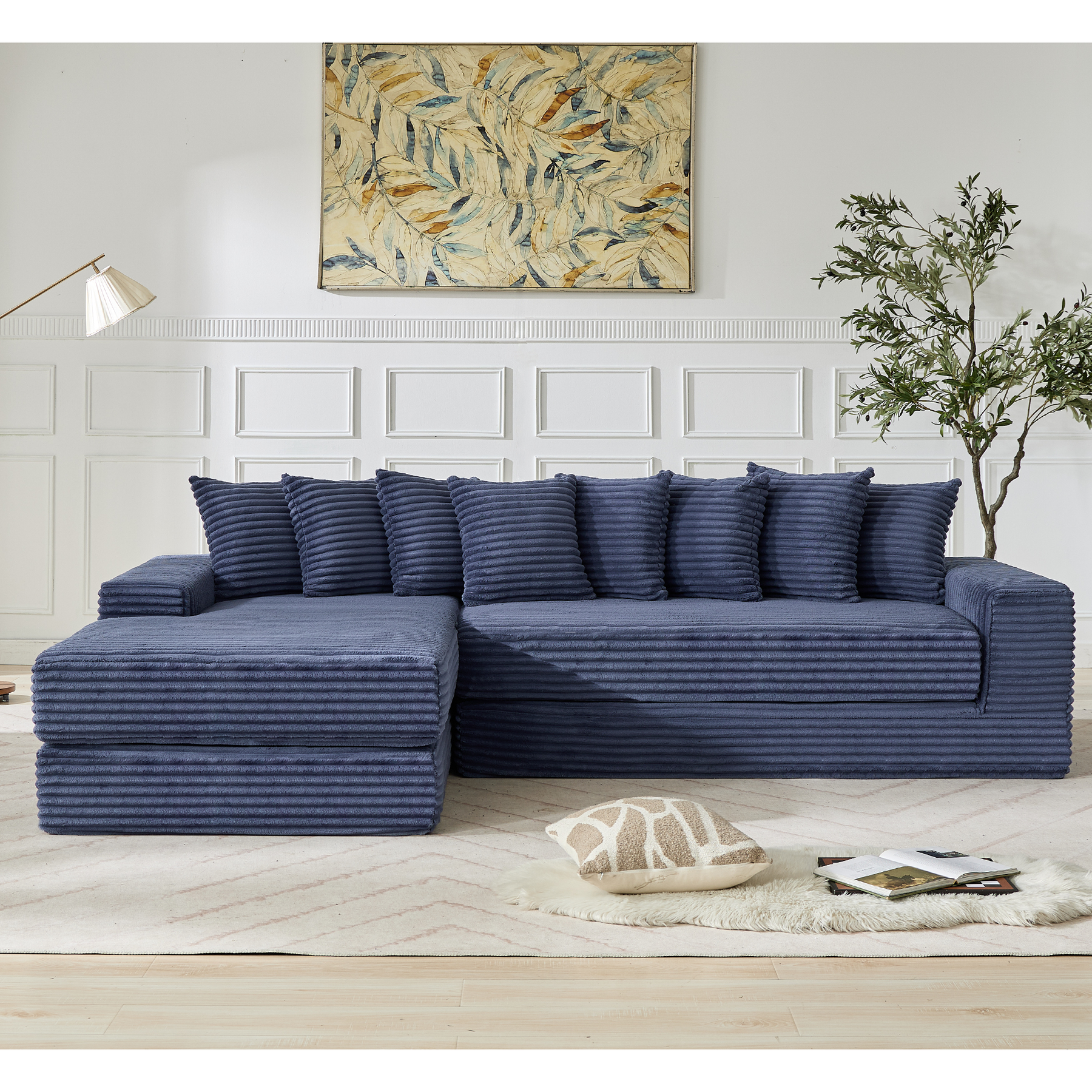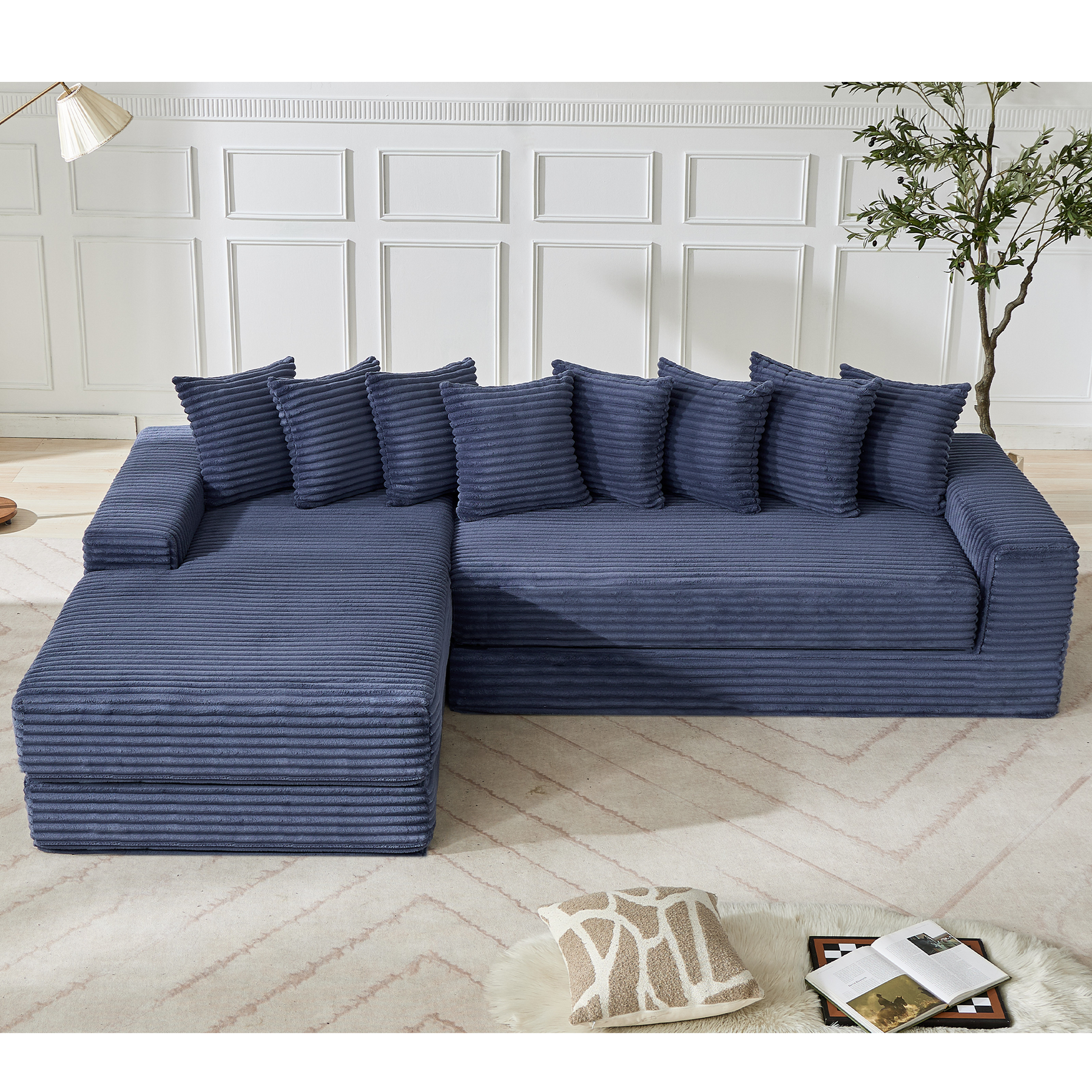 [NEW ARRIVED] [VIDEO PROVIDED]   Oversize Cloud Couch, L-Shape Sofa, Convertible Floor Sleeper Sofa Bed,  No Assembly ,Eight  pillows,3-in-1,Side Pocket,(Left Facing Sofa),3 Seat,Corduroy,Blue