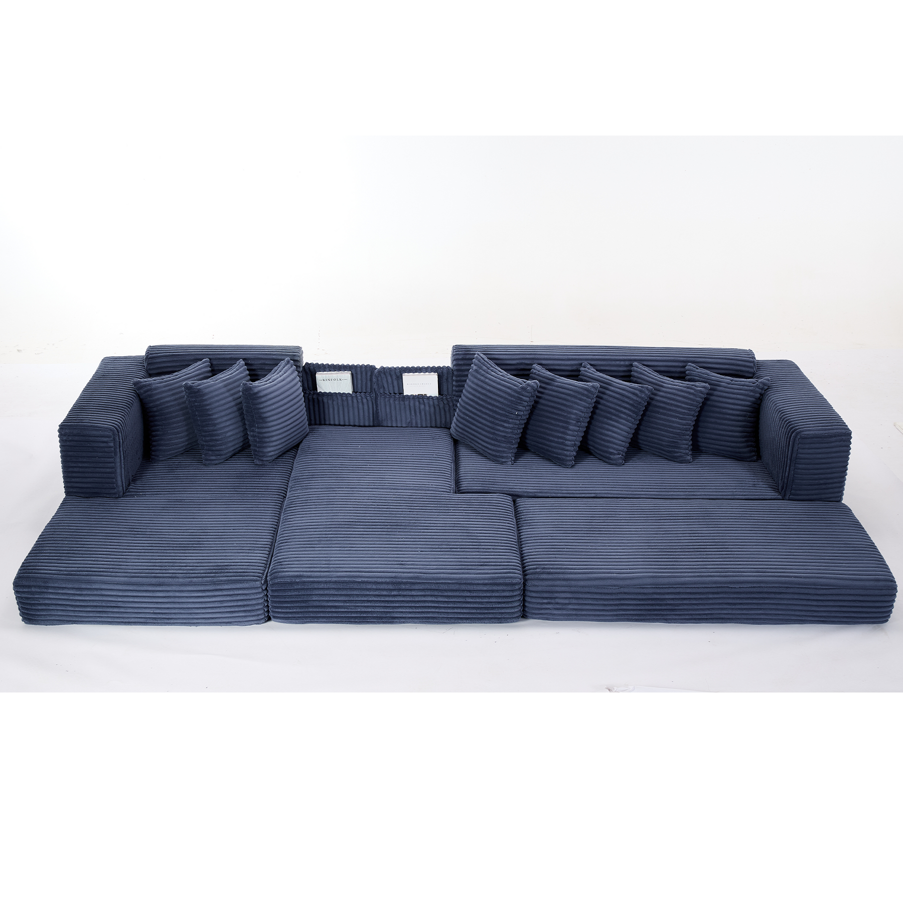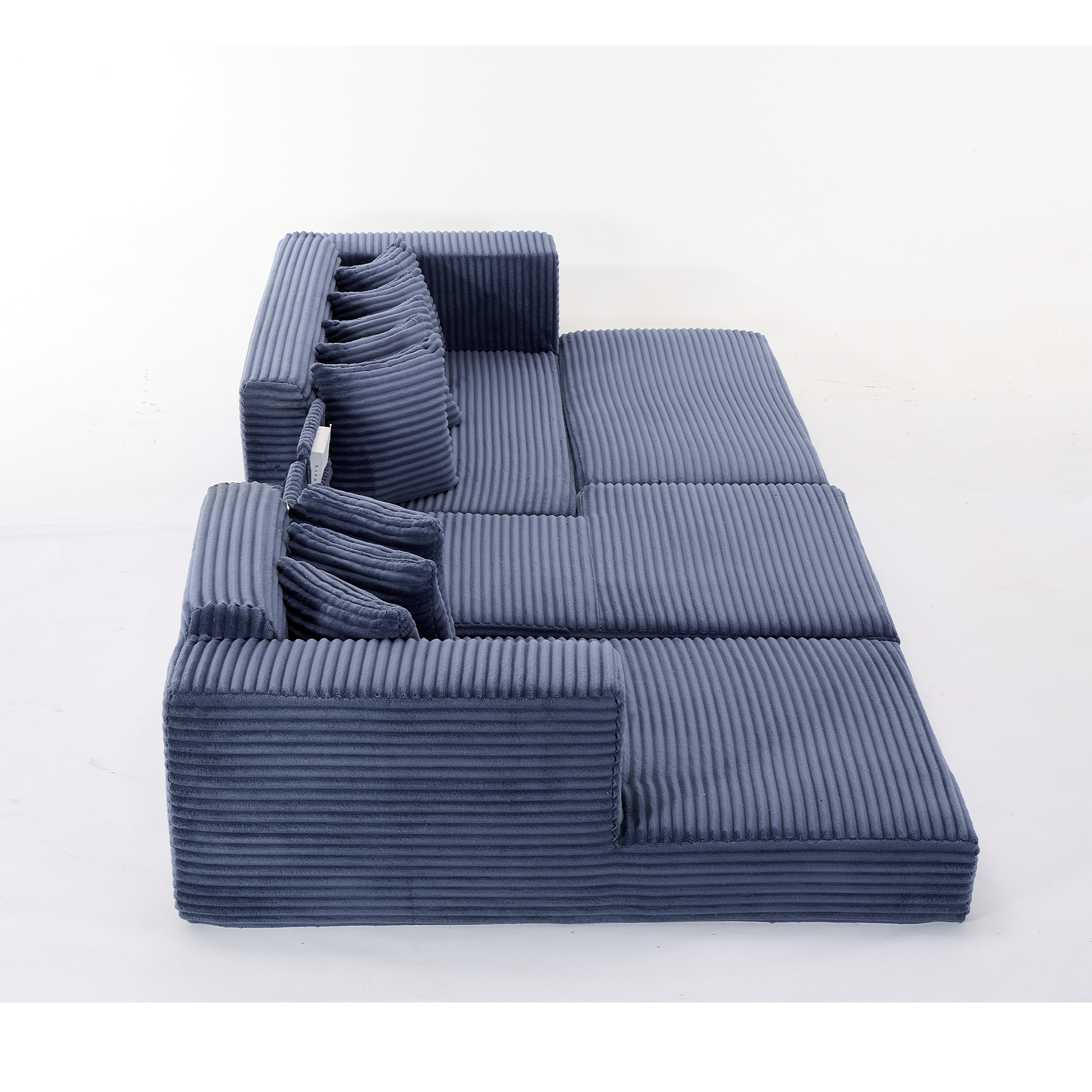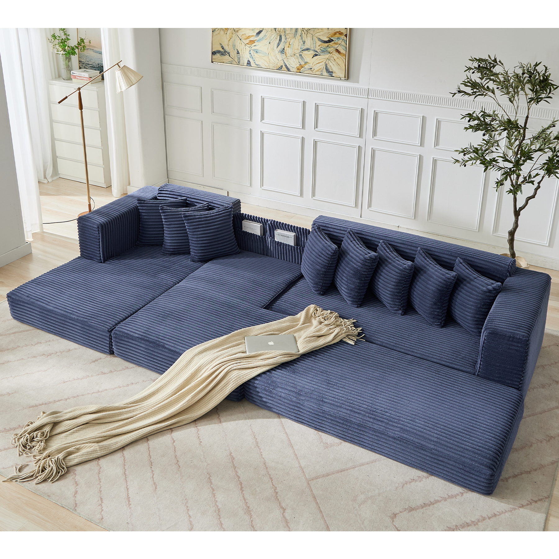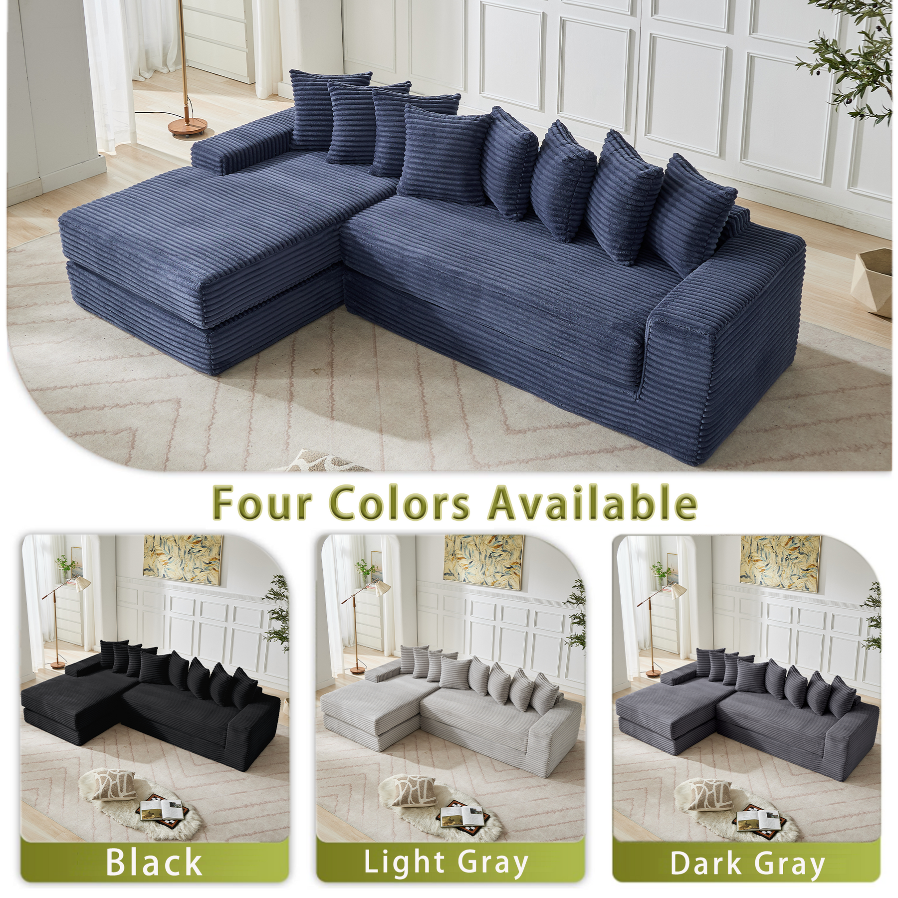 [NEW ARRIVED] [VIDEO PROVIDED]   Oversize Cloud Couch, L-Shape Sofa, Convertible Floor Sleeper Sofa Bed,  No Assembly ,Eight  pillows,3-in-1,Side Pocket,(Left Facing Sofa),3 Seat,Corduroy,Blue