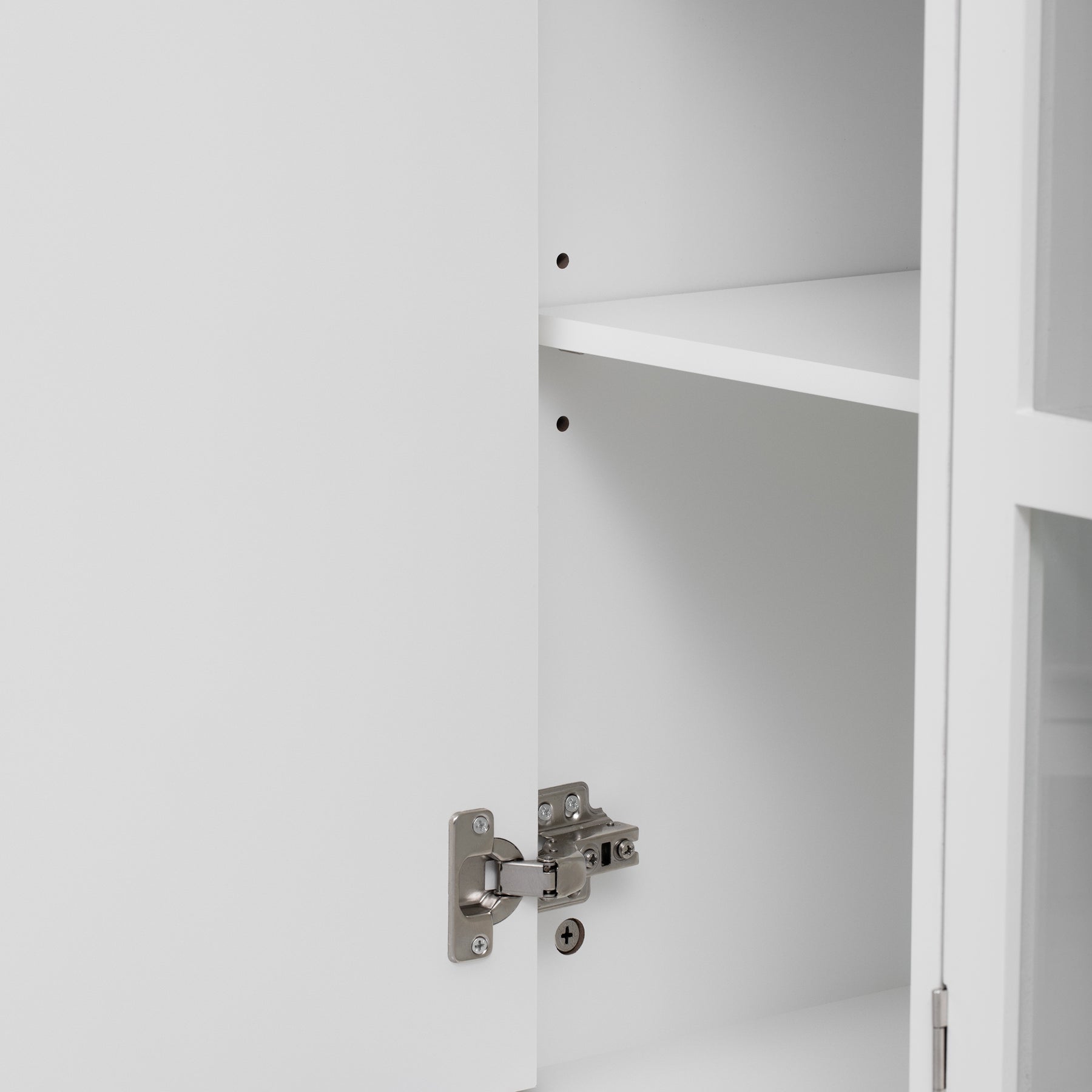 • Including three spacious cabinets, the middle cabinet features a glass door that clearly displays the items inside, making it easy for you to quickly find what you need. It also adds a touch of transparency and an artistic atmosphere to the entire home environment. The cabinet doors on both sides are symmetrically carved with patterns, and each cabinet contains an adjustable shelf that can be moved up and down according to your personal requirements.